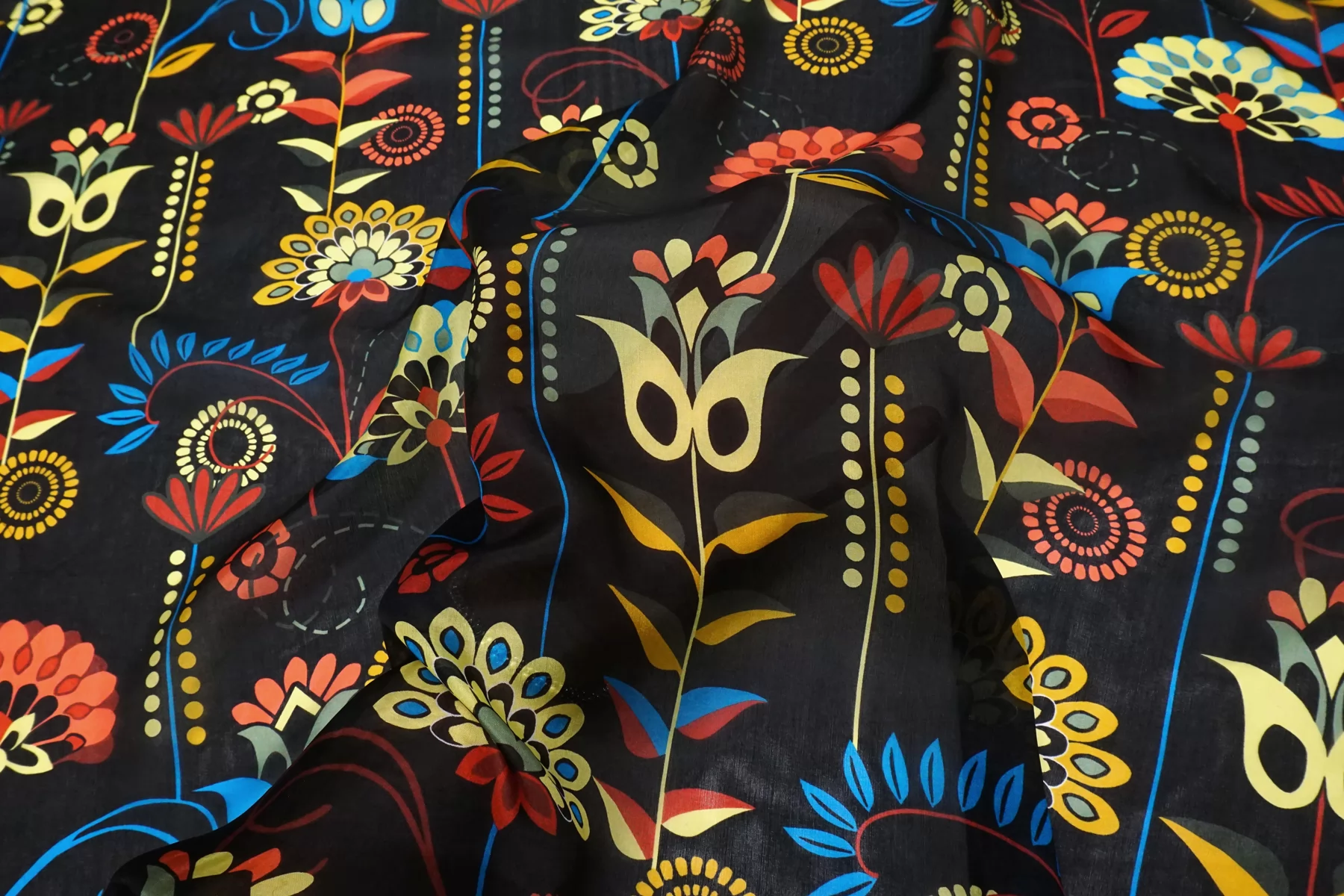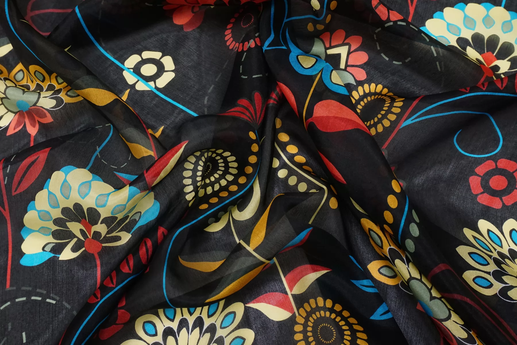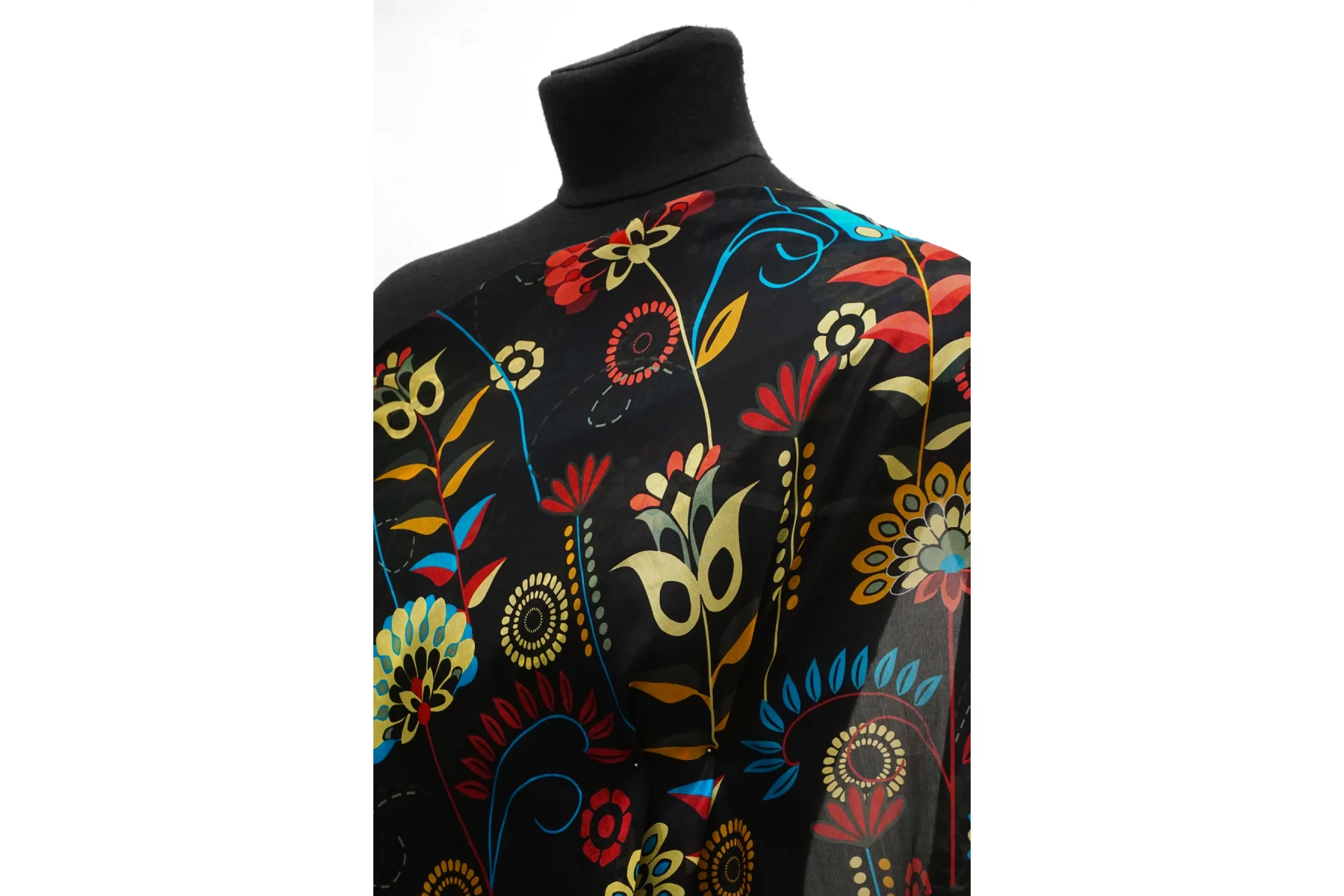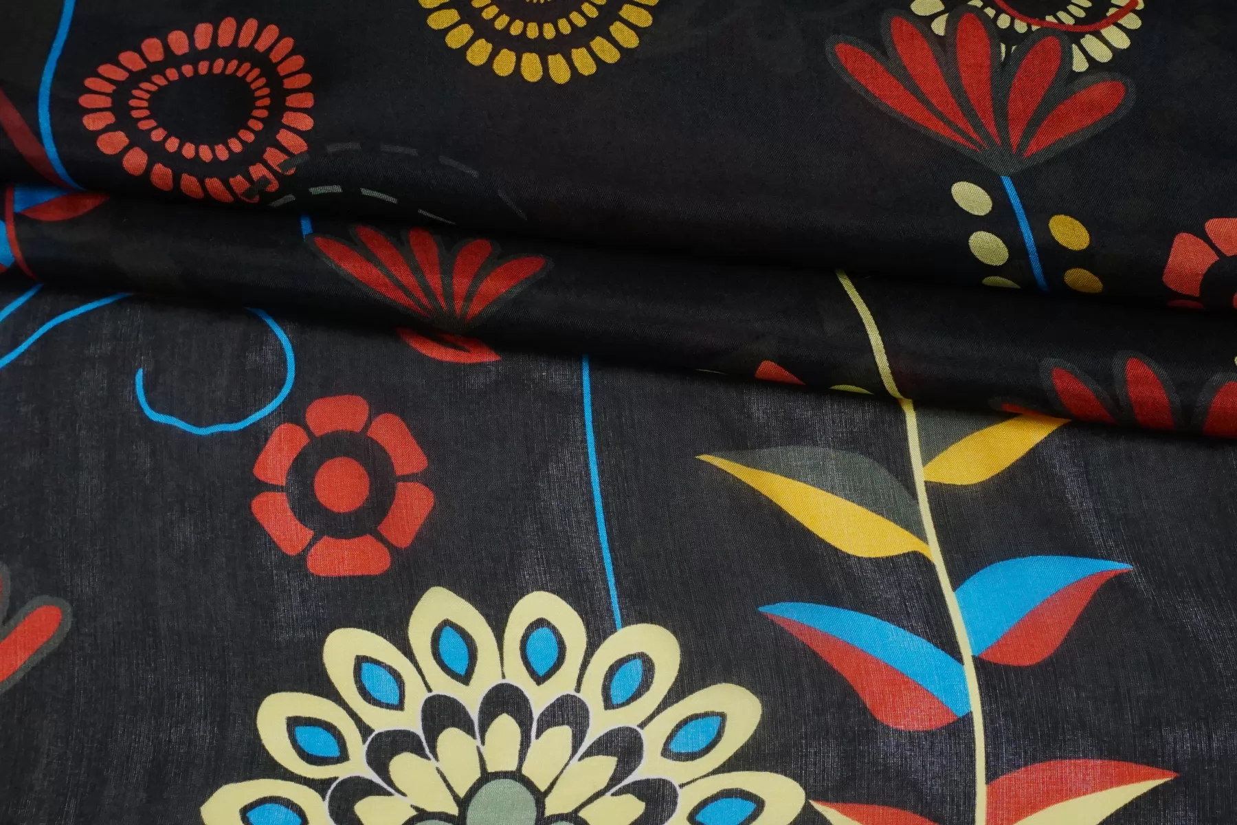 Батист шёлковый Цветы на чёрном BL H28/1 N50 30052514