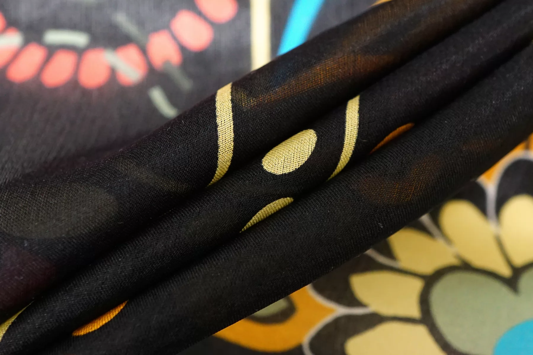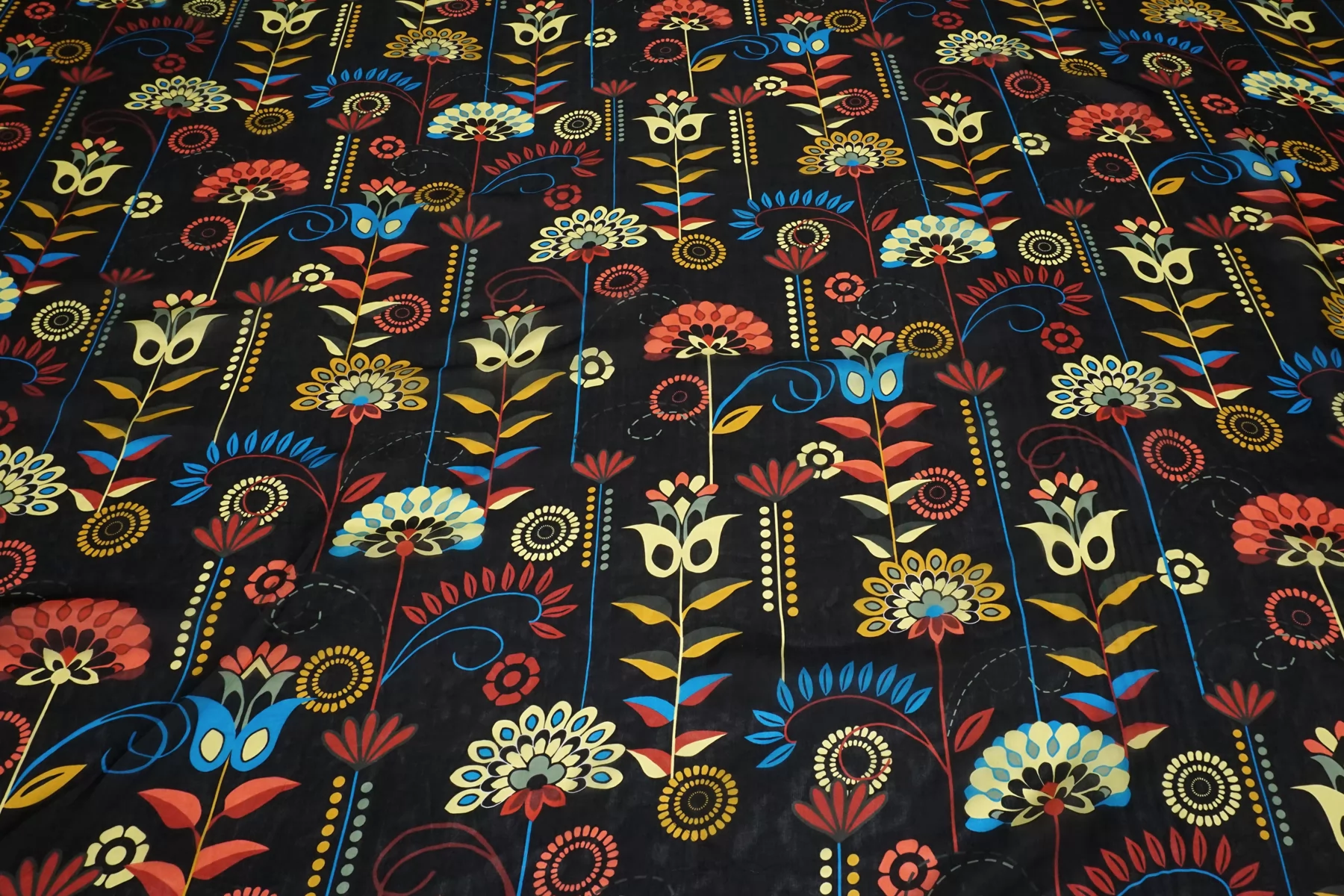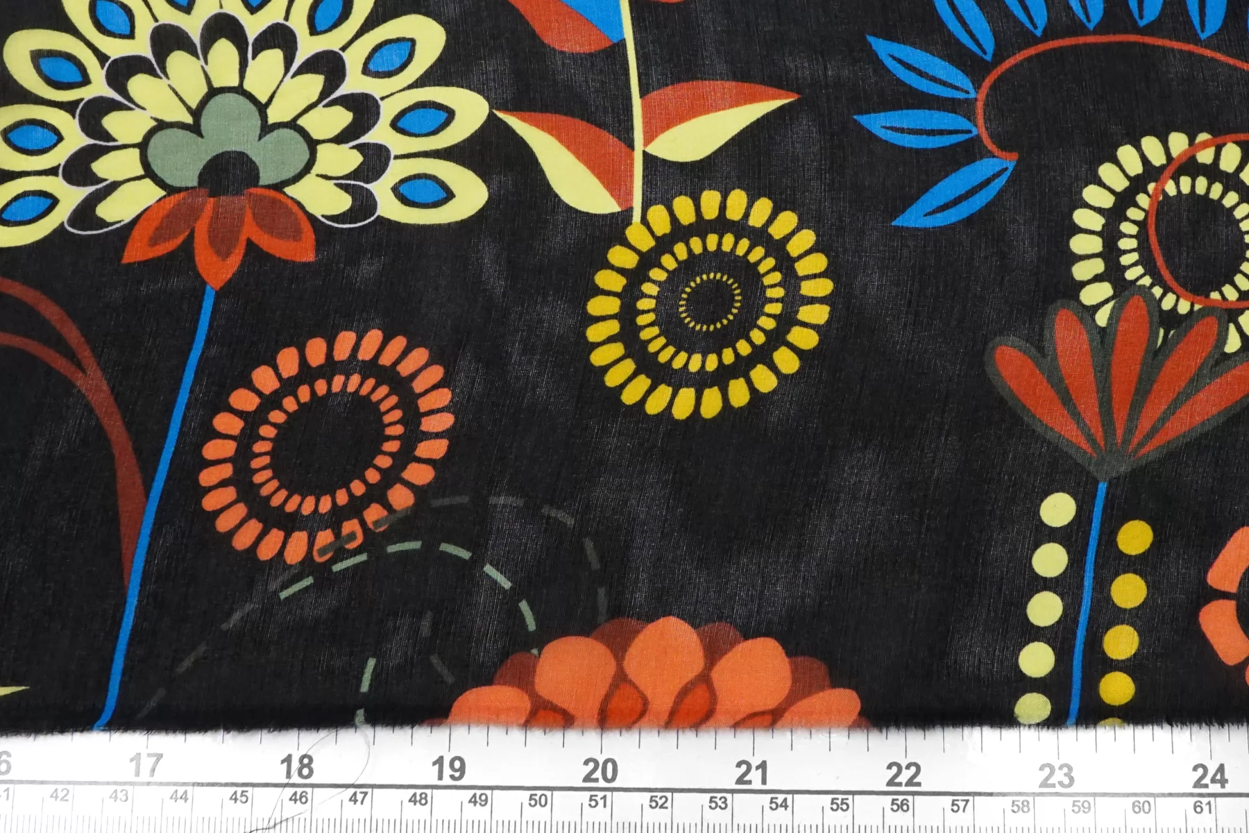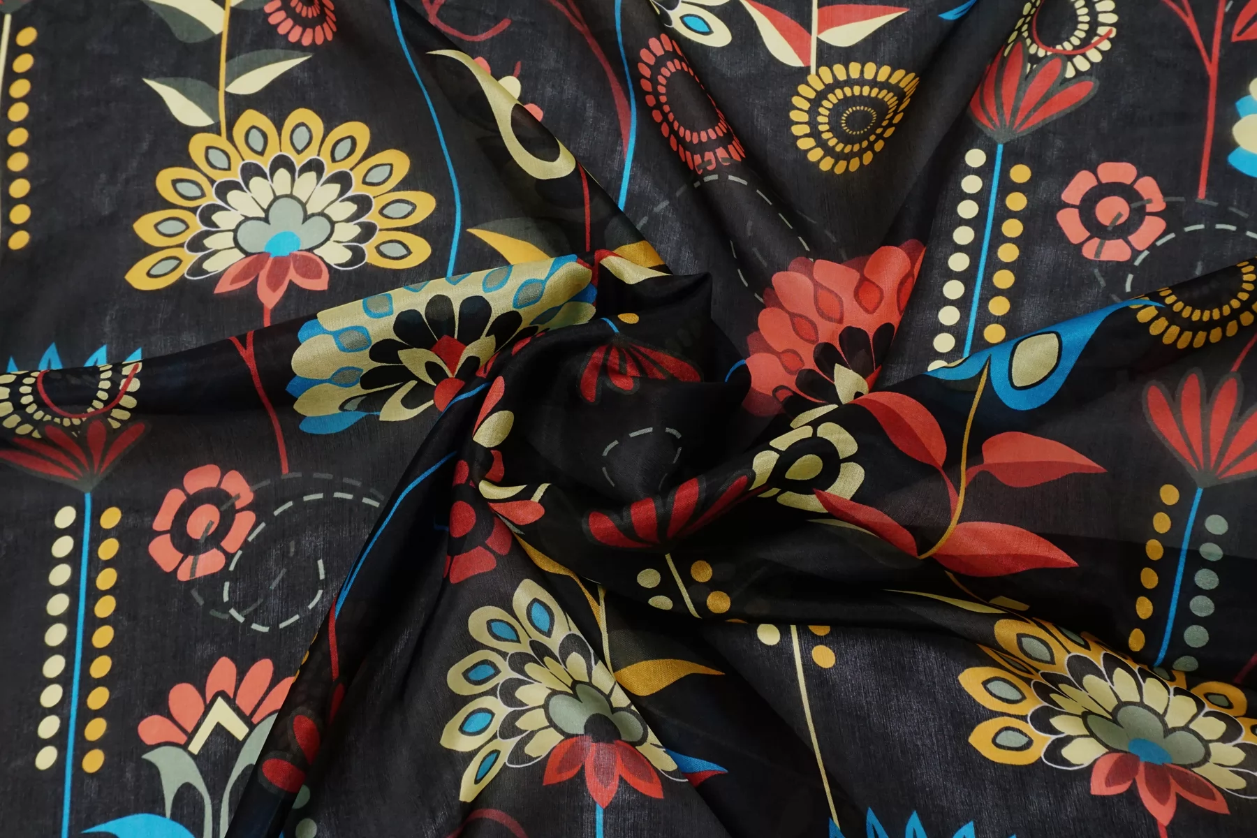 Батист шёлковый Цветы на чёрном BL H28/1 N50 30052514