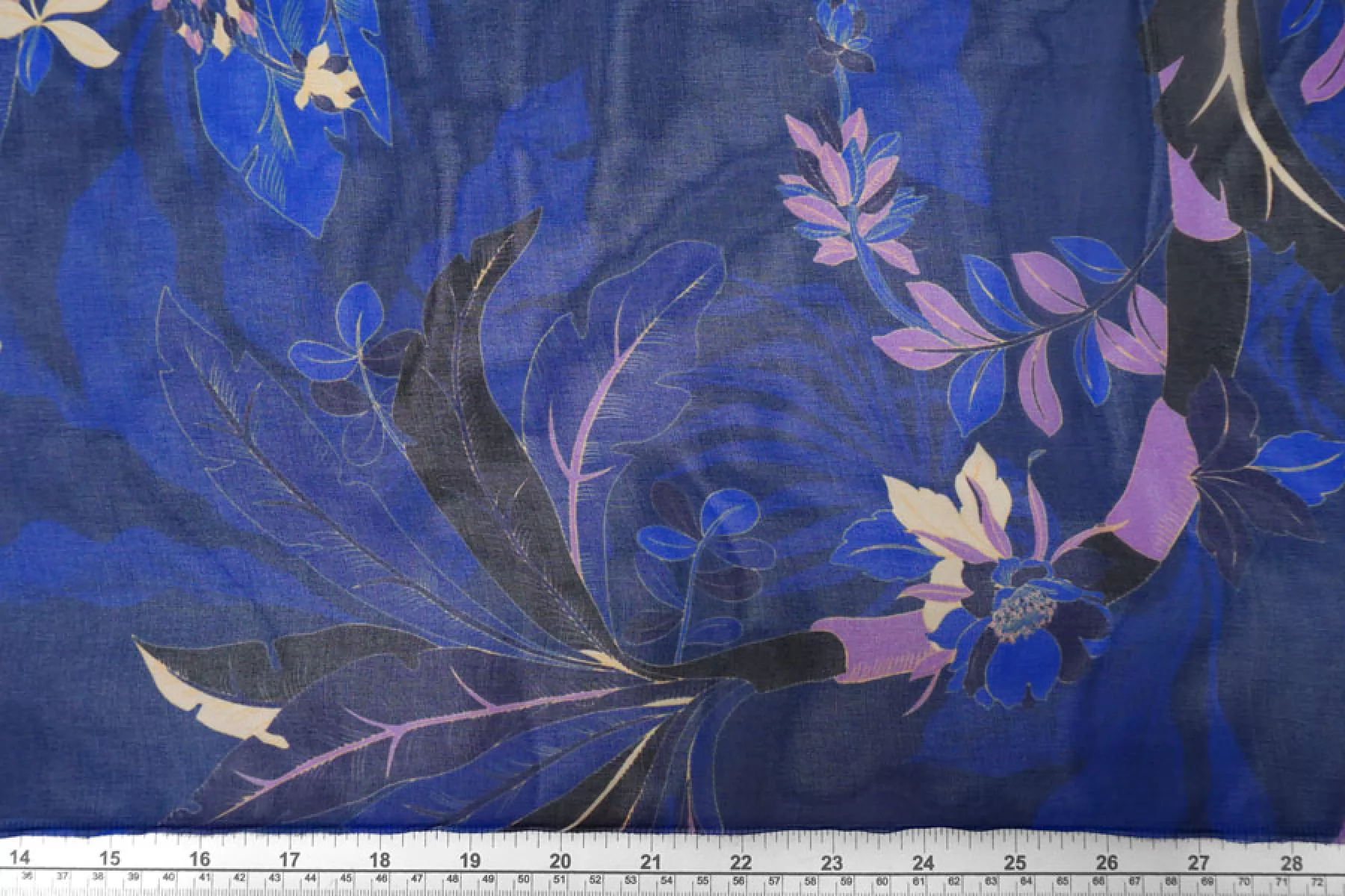 Шикарный итальянский батист из вискозы с шелком, цветочный принт на ярко синем цвете. Тактильно очень мягкий, воздушный, легкий гладкий и приятный, ощущается шелк. С легким лоском. Не тянется, слегка сминается. Просвечивает. Форму не держит. Отлично подойдет на свободные рубашки, блузки, многослойные платья или юбки. Уход деликатный, шьем тонкими иглами.