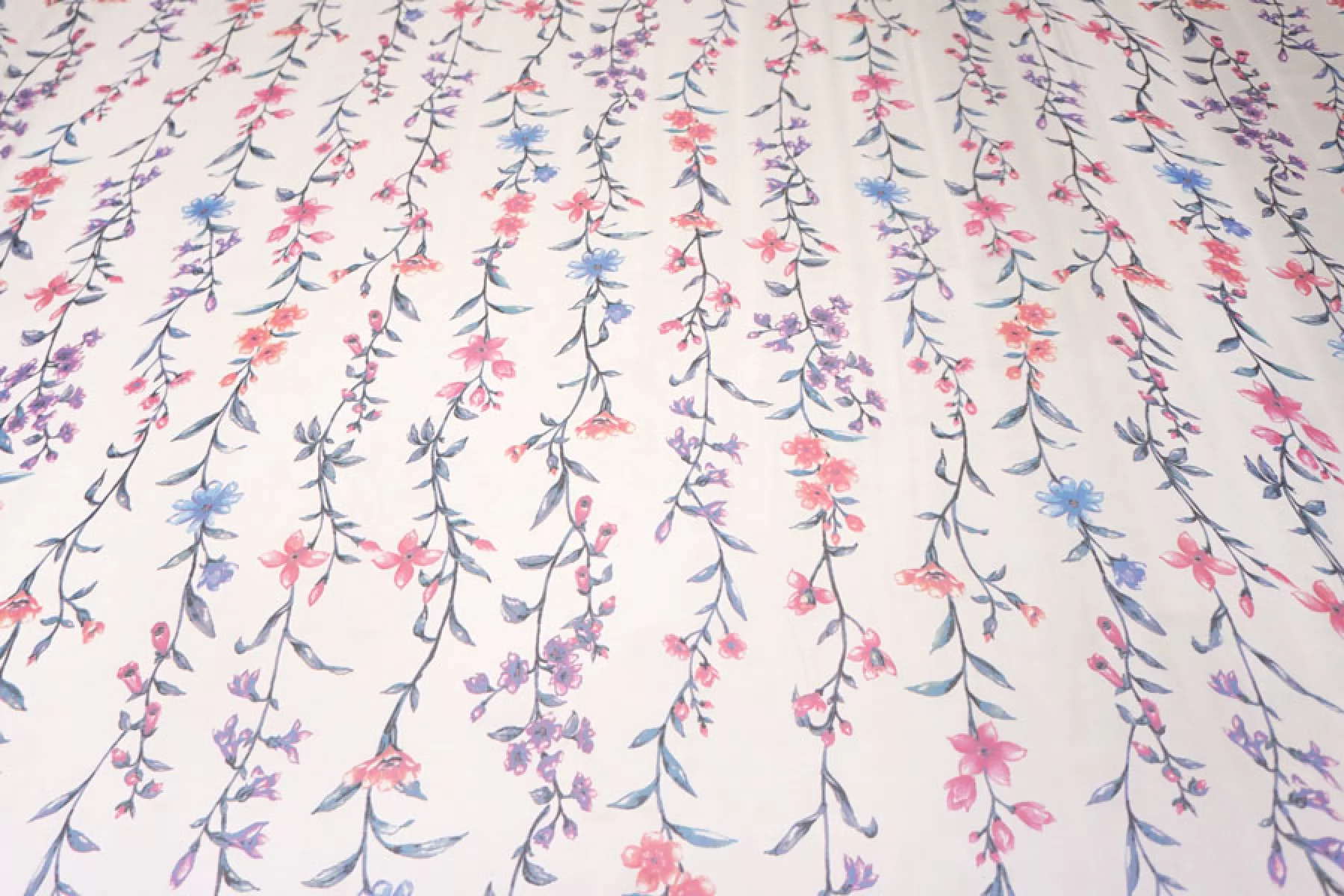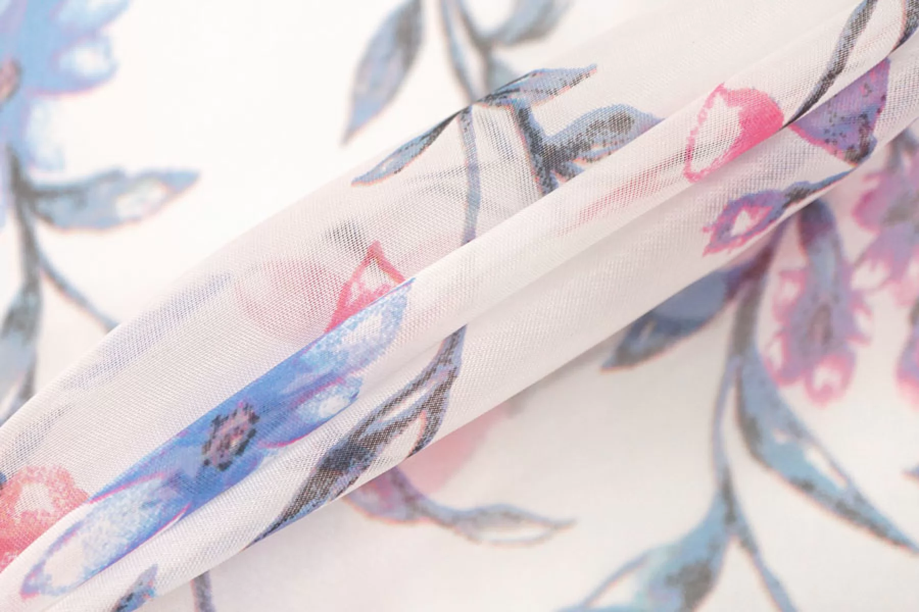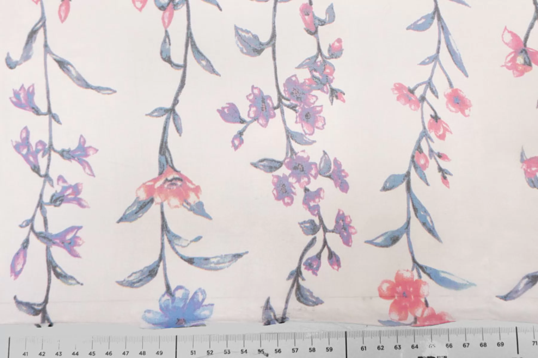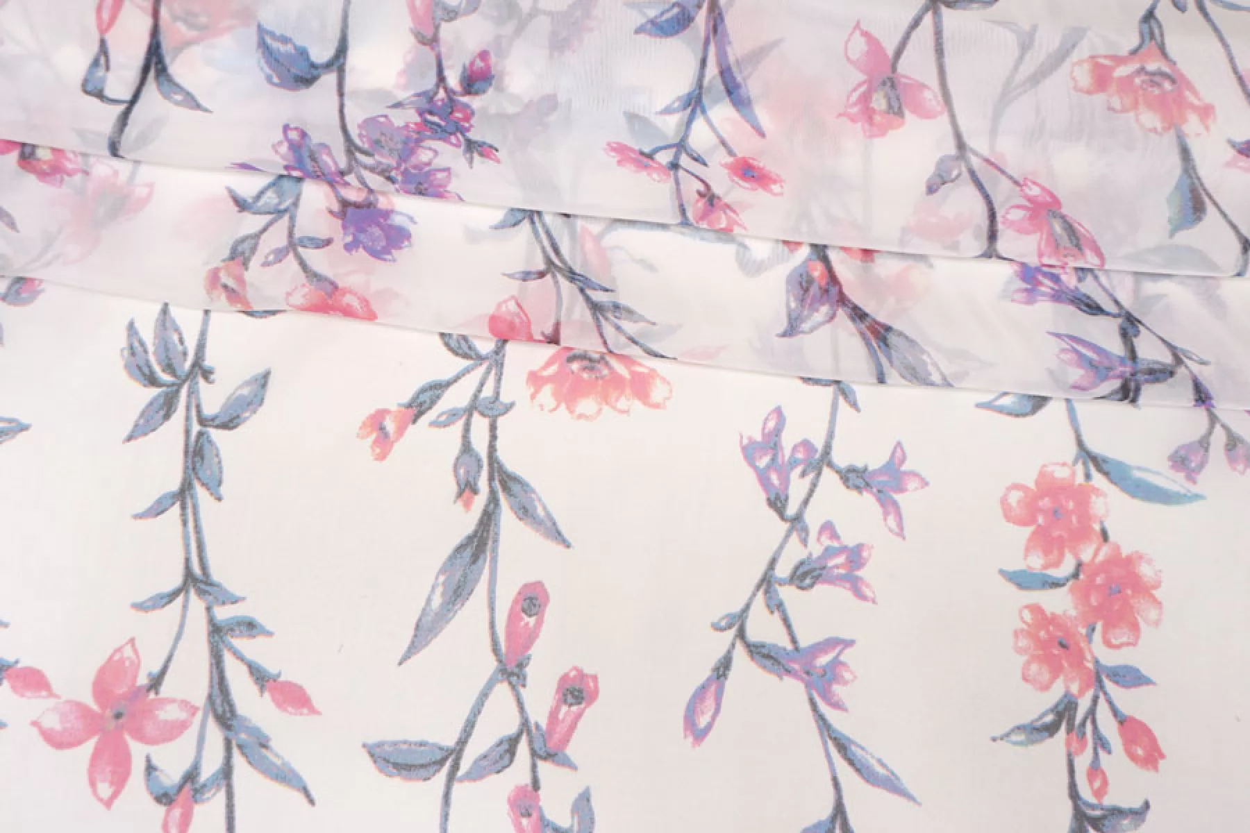ВНИМАНИЕ!! Встречаются очень мелкие желтые точки по центру на расстояние 60 см. и пятна 30 см. от кромки на фото. Шикарный итальянский батист из вискозы с шелком, принт цветочный на белом фоне. Тактильно очень мягкий, воздушный, легкий гладкий и приятный, ощущается шелк. С легким лоском. Не тянется, слегка сминается. Просвечивает. Форму не держит. Отлично подойдет на свободные рубашки, блузки, многослойные платья или юбки. Уход деликатный, шьем тонкими иглами.
