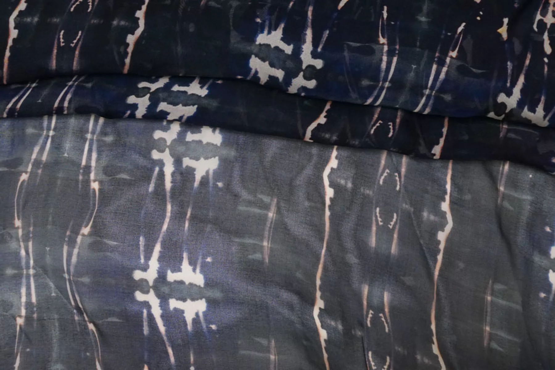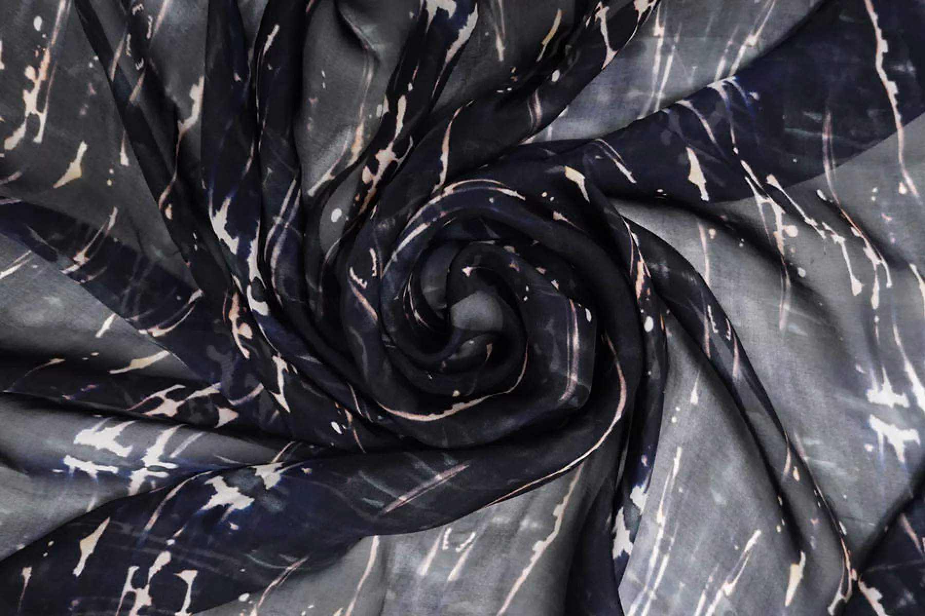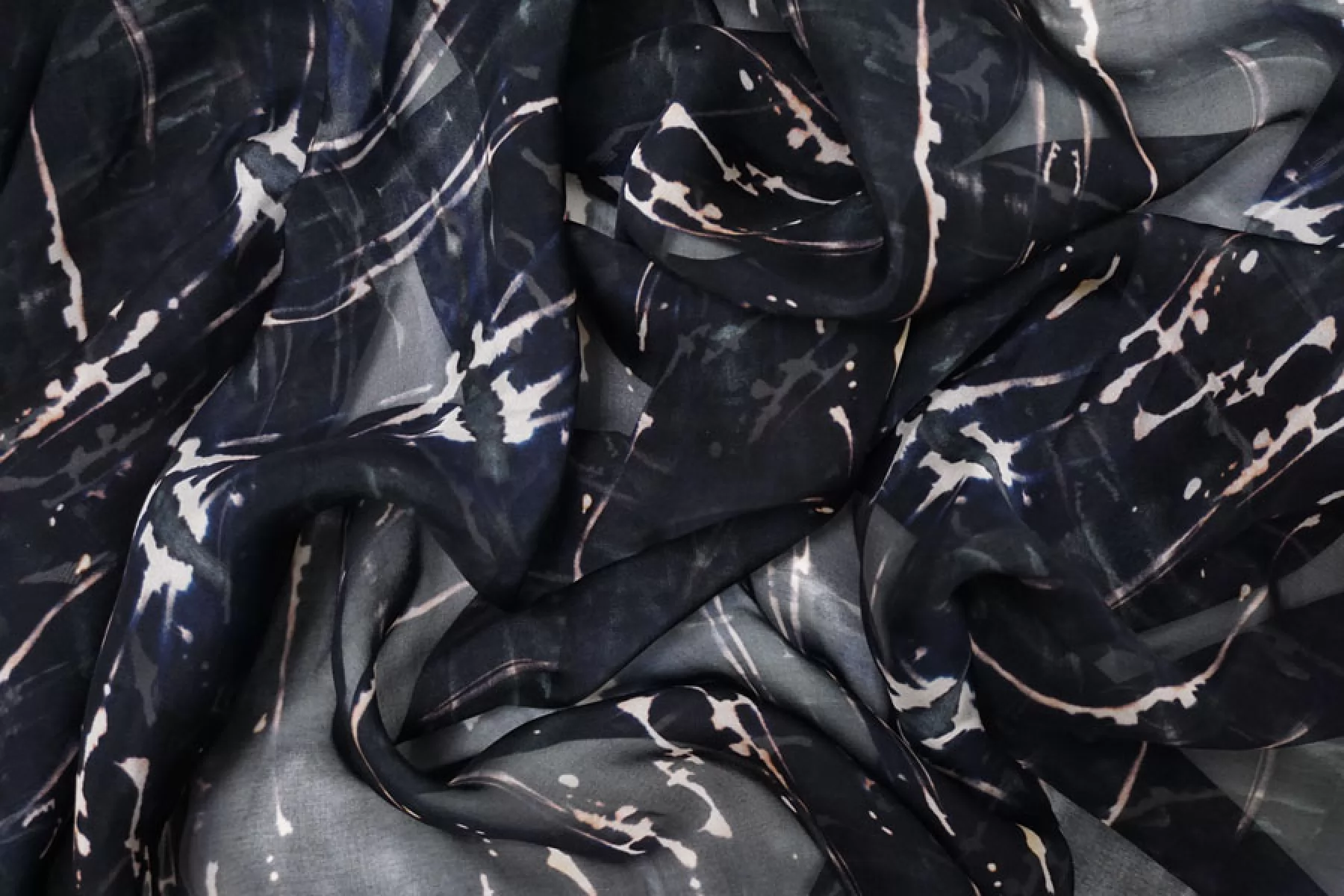 Шикарный итальянский батист из вискозы с шелком черно-синего цвета с абстрактным принтом. Тактильно очень мягкий, воздушный, легкий гладкий и приятный, ощущается шелк. С легким лоском. Не тянется, слегка сминается. Просвечивает. Форму не держит. Отлично подойдет на свободные рубашки, блузки, многослойные платья или юбки. Уход деликатный, шьем тонкими иглами.