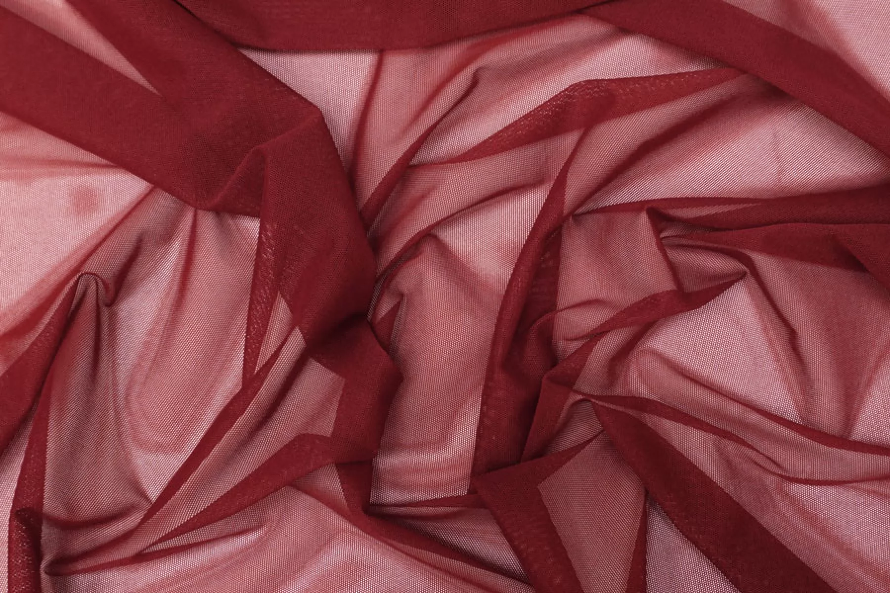 Мягкая итальянская сетка сложного красного цвета. Тонкая, пластичная, мягкая, легкая, хорошо тянется, приятная тактильно. Форму держит слабо. Прозрачная. Хорошо подойдет для пошива как самостоятельных изделий, так и декора белья или отдельных элементов изделий, так же можно использовать для пошива нарядной одежды.