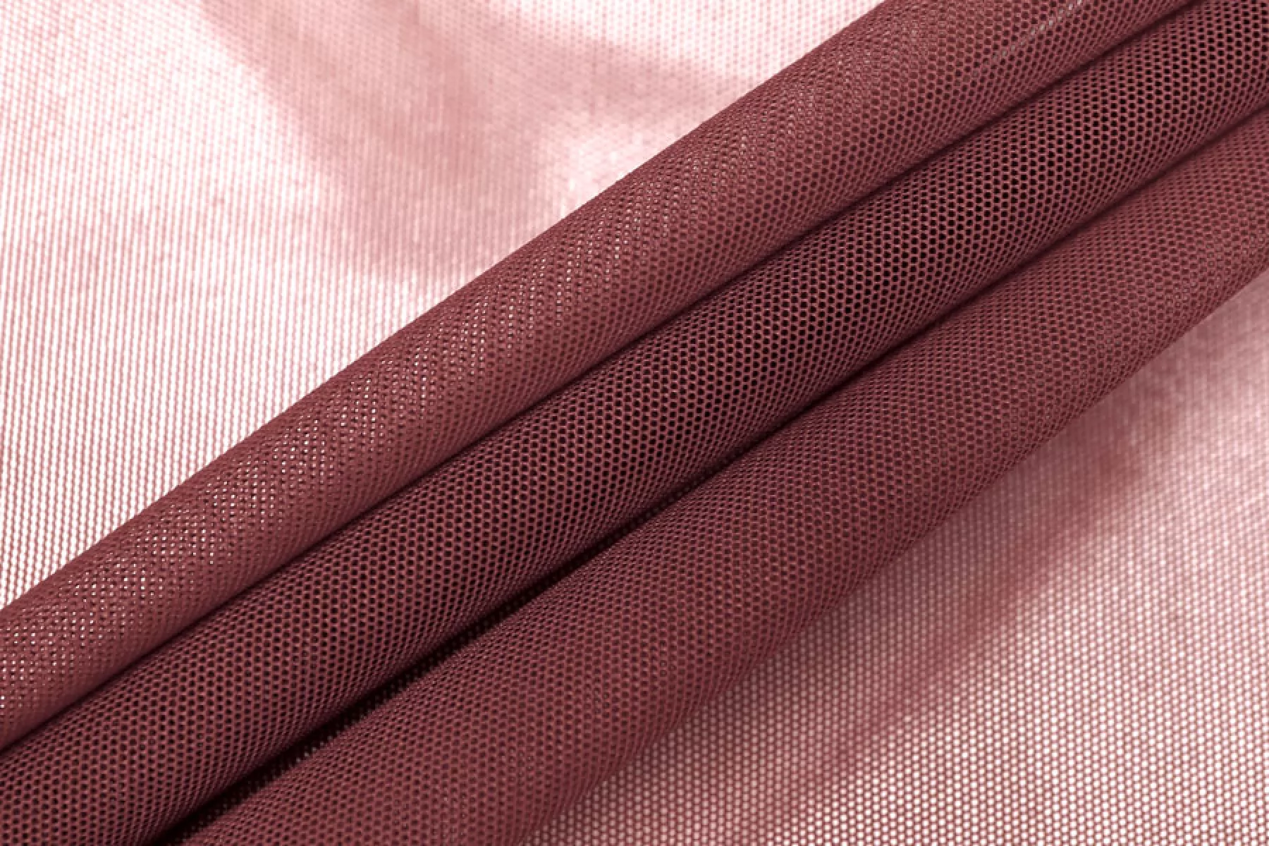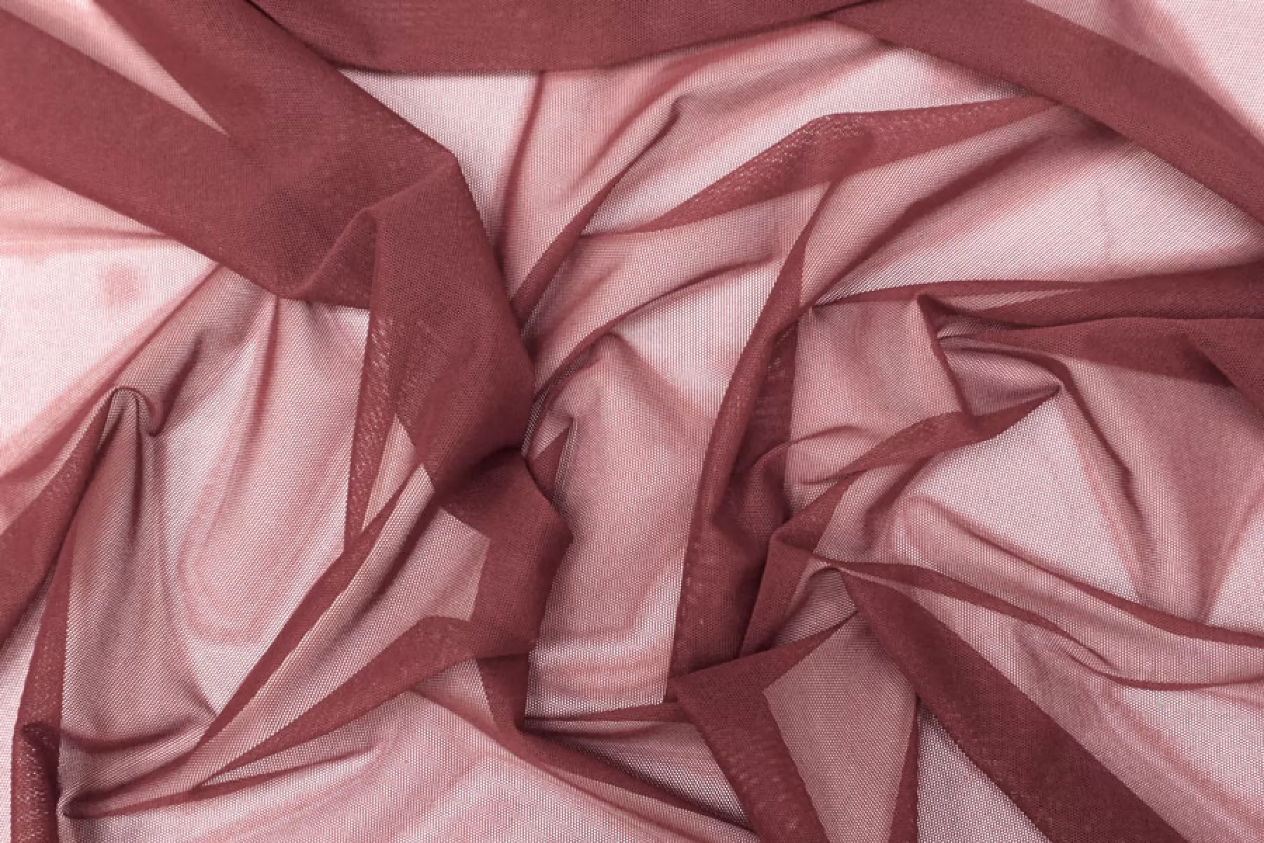 Мягкая итальянская сетка бордового оттенка. Тонкая, пластичная, мягкая, легкая, хорошо тянется, приятная тактильно. Форму держит слабо. Прозрачная. Хорошо подойдет для пошива как самостоятельных изделий, так и декора белья или отдельных элементов изделий, так же можно использовать для пошива нарядной одежды.