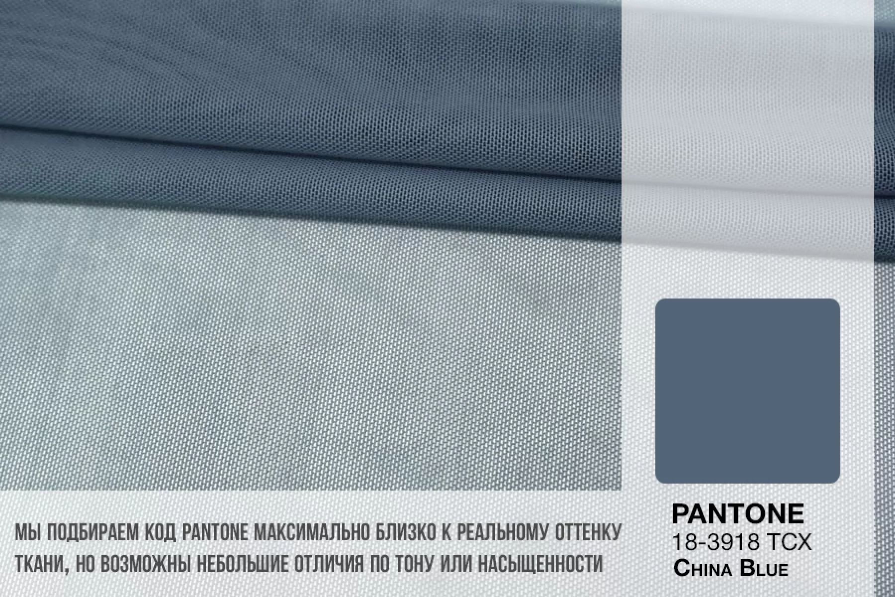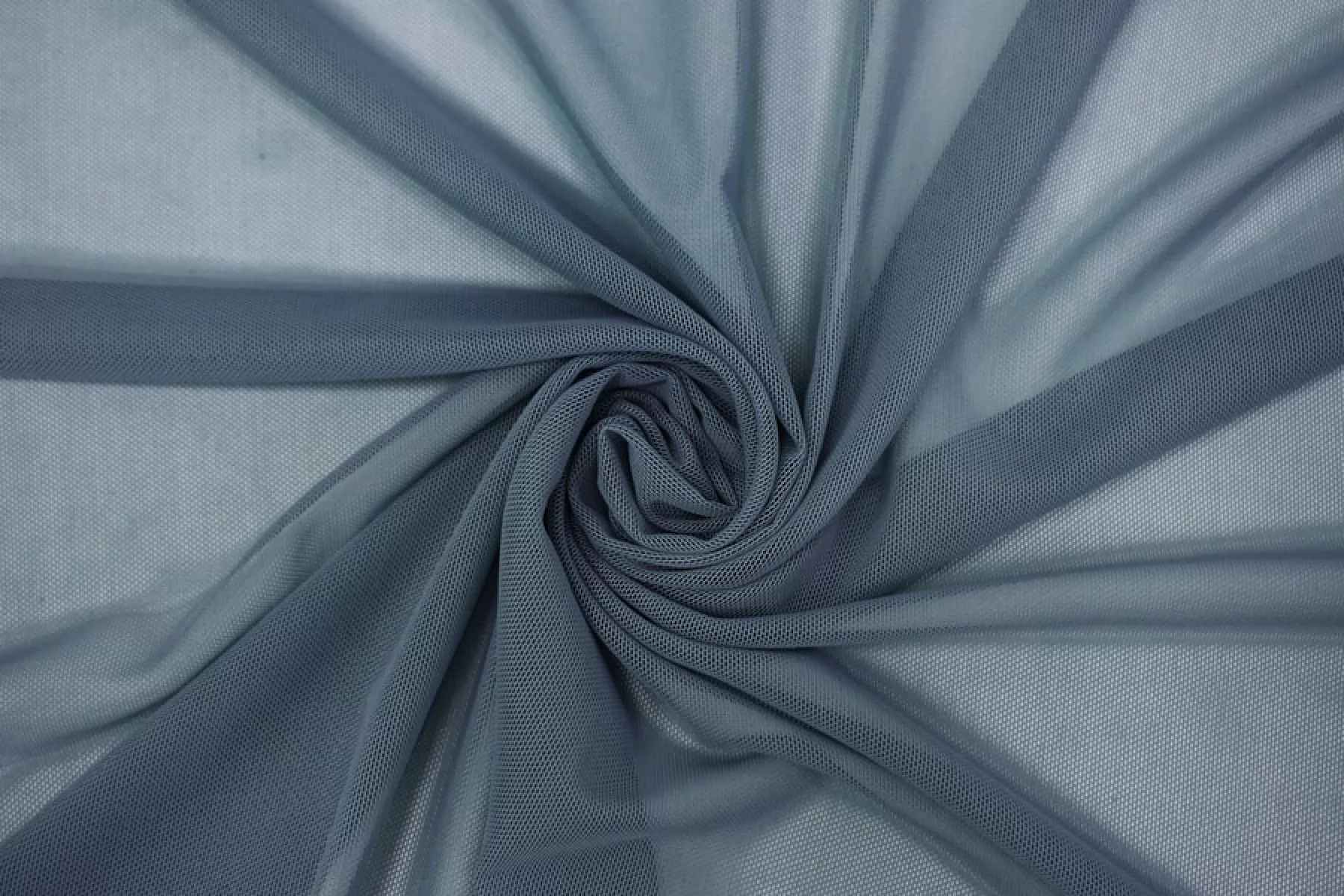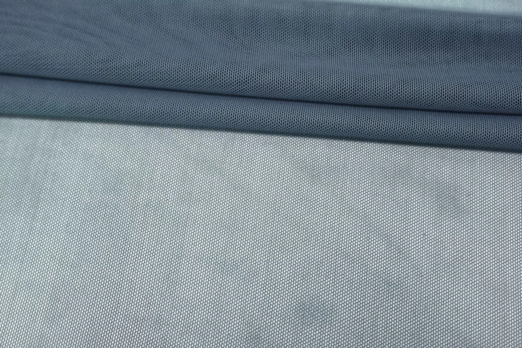 Мягкая итальянская сетка интересного дымчато-синего оттенка. Тонкая, пластичная, мягкая, легкая, хорошо тянется, приятная тактильно. Форму держит слабо. Прозрачная. Хорошо подойдет для пошива как самостоятельных изделий, так и декора белья или отдельных элементов изделий, так же можно использовать для пошива нарядной одежды.
