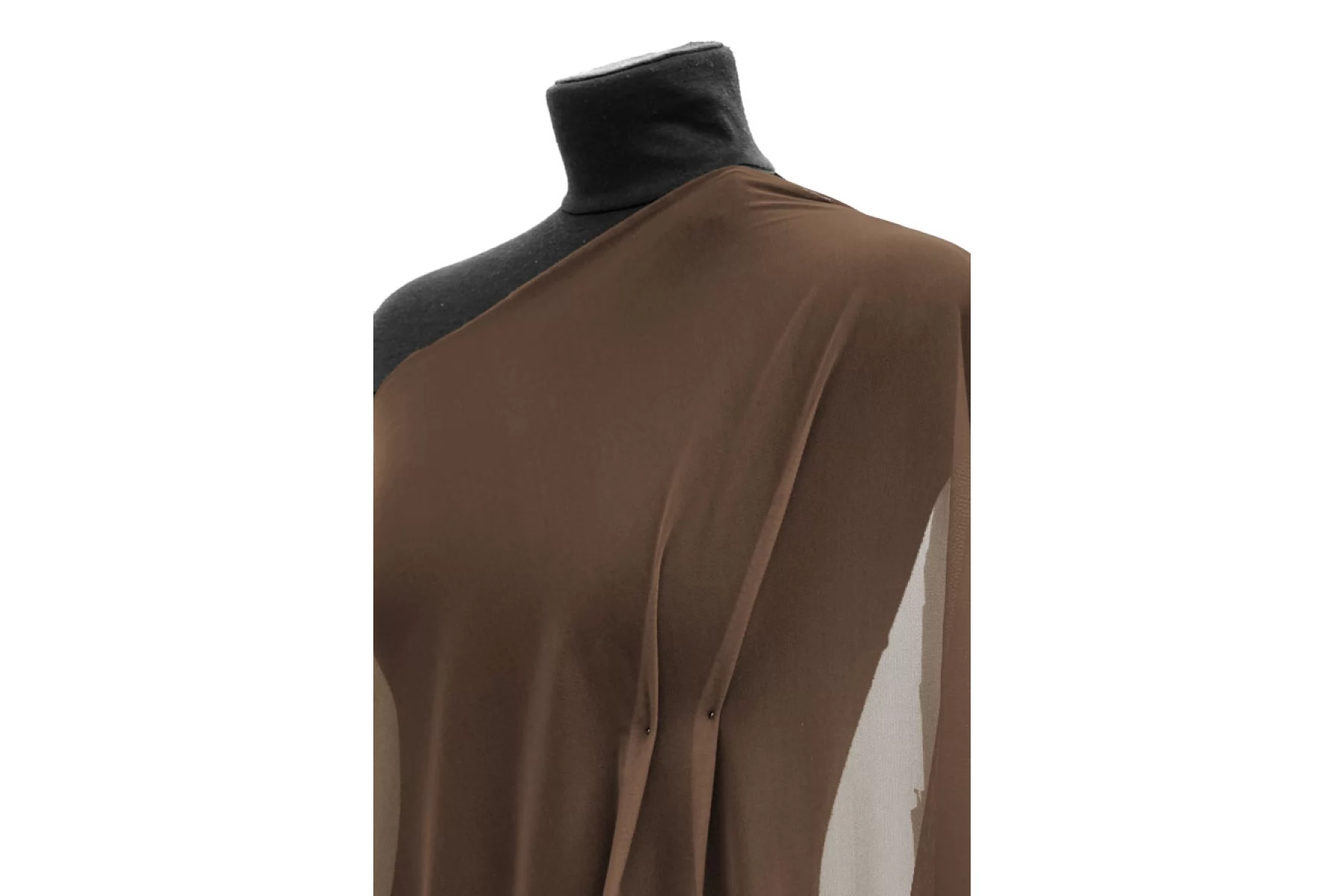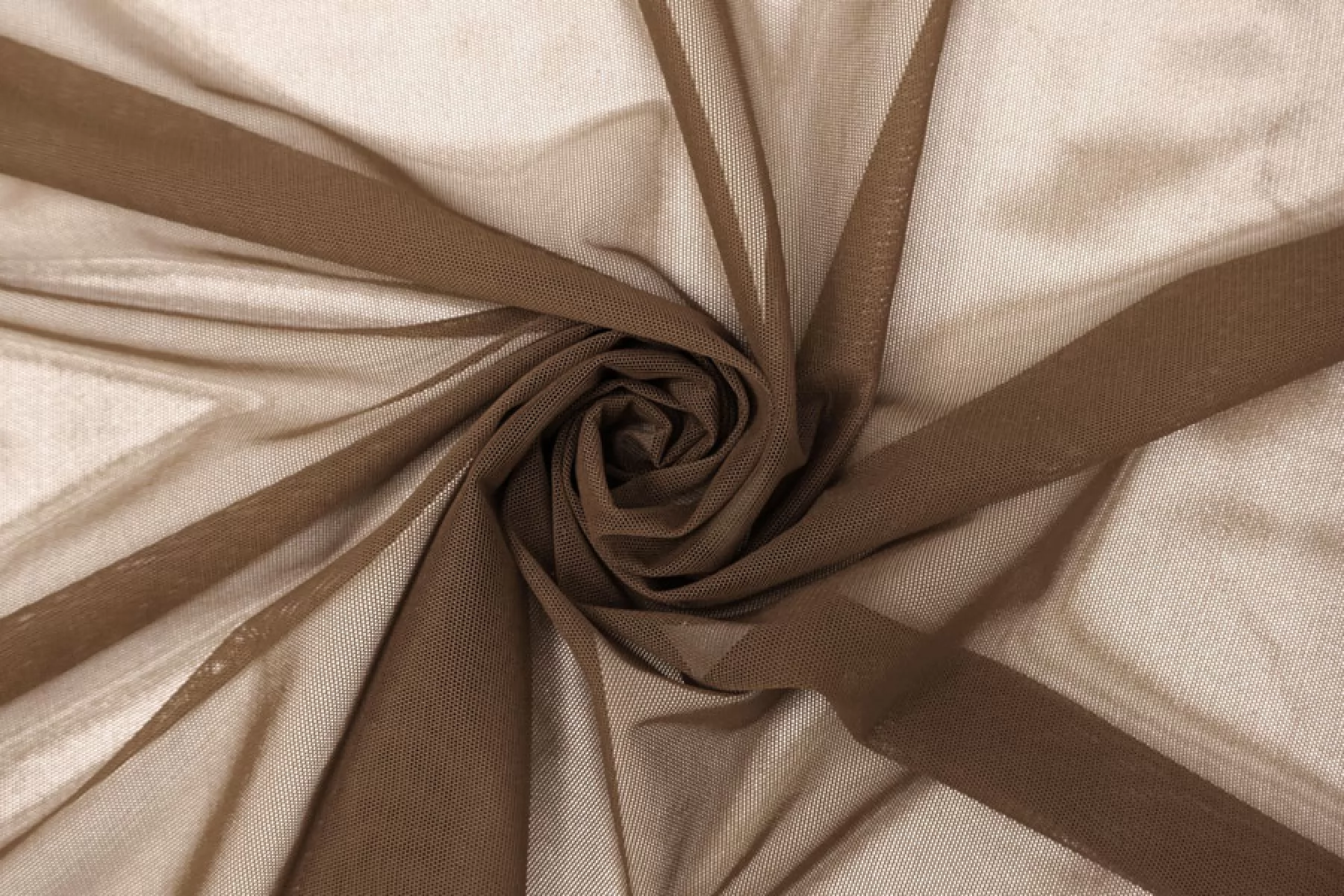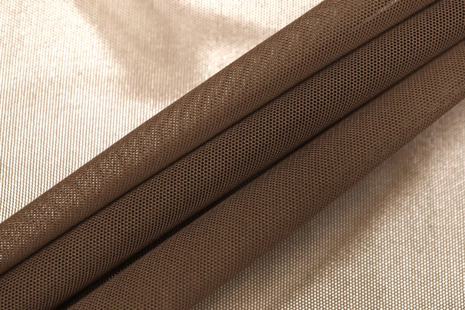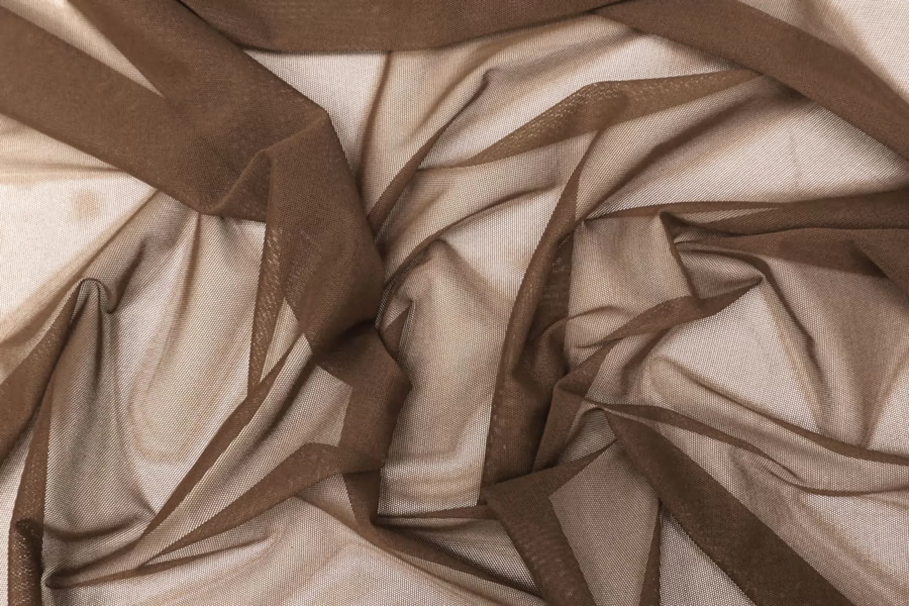 Мягкая итальянская сетка коричневого цвета. Тонкая, пластичная, мягкая, легкая, хорошо тянется, приятная тактильно. Форму держит слабо. Прозрачная. Хорошо подойдет для пошива как самостоятельных изделий, так и декора белья или отдельных элементов изделий, так же можно использовать для пошива нарядной одежды.