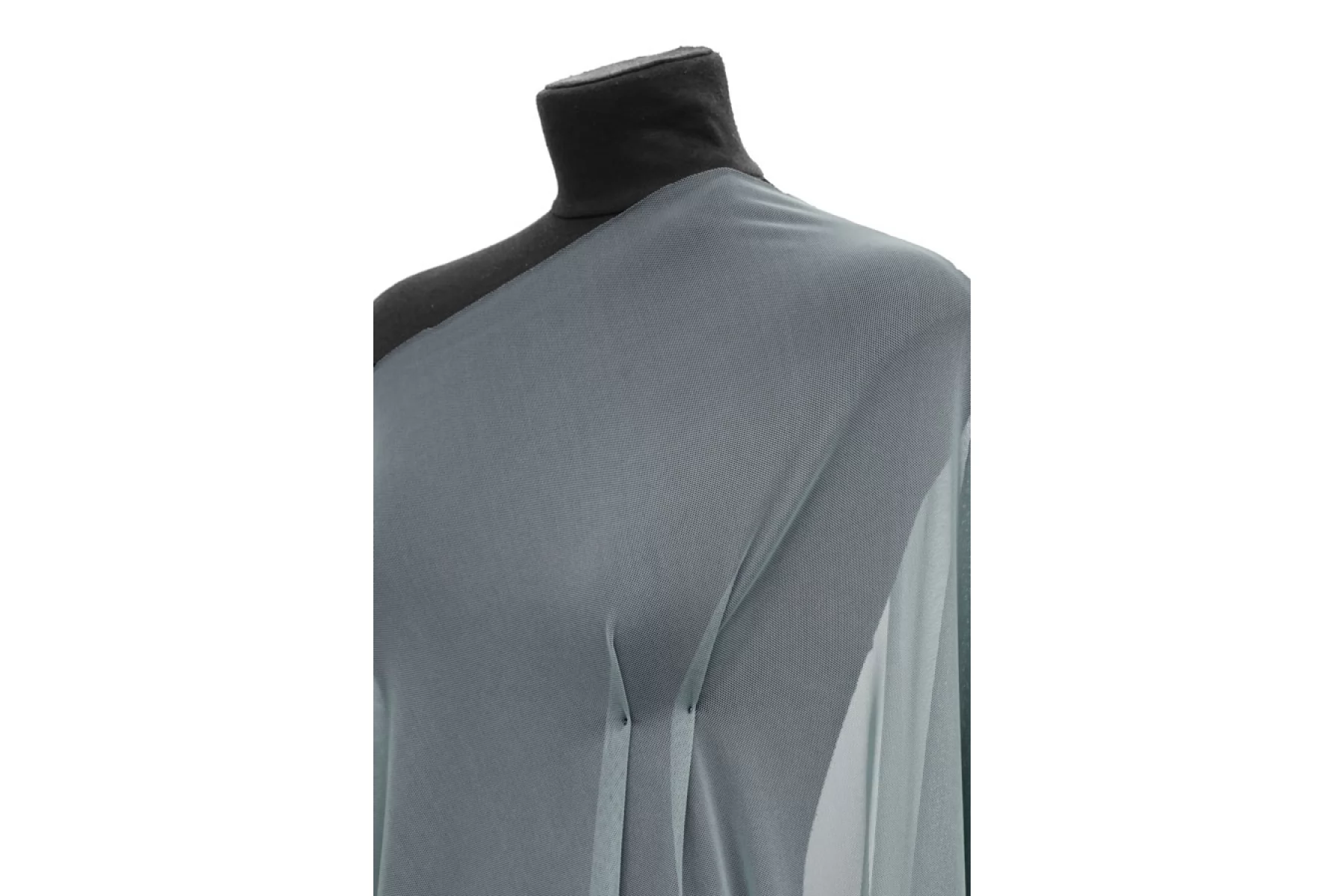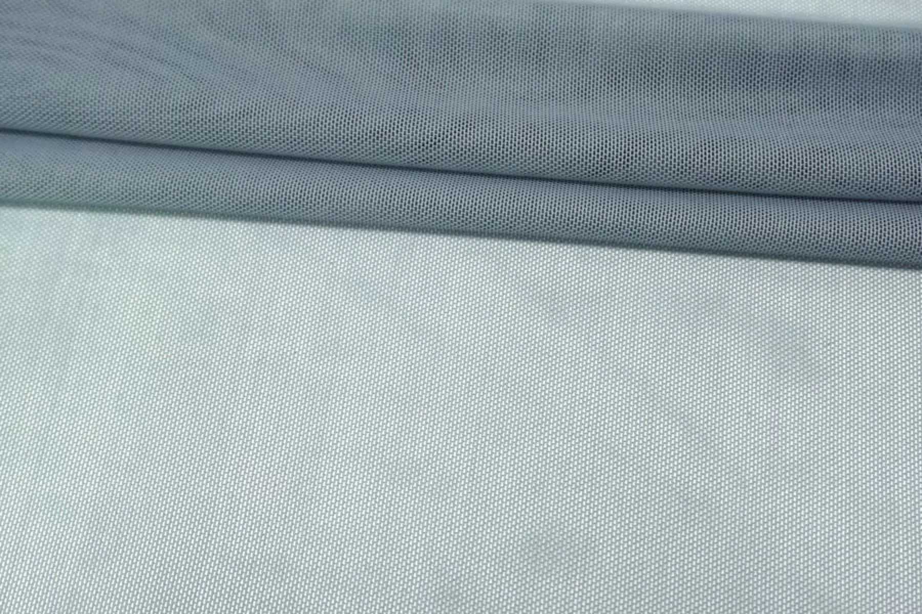 Мягкая мелкая итальянская сетка красивого серо-голубого оттенка. Тонкая, пластичная, мягкая, легкая, хорошо тянется, приятная тактильно. Форму держит слабо. Прозрачная. Хорошо подойдет для пошива как самостоятельных изделий, так и декора белья или отдельных элементов изделий, так же можно использовать для пошива нарядной одежды.