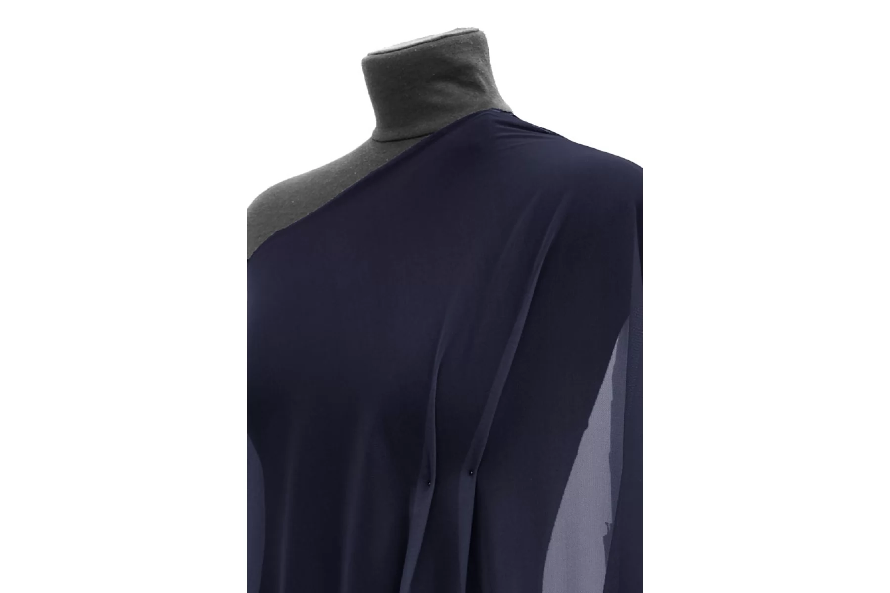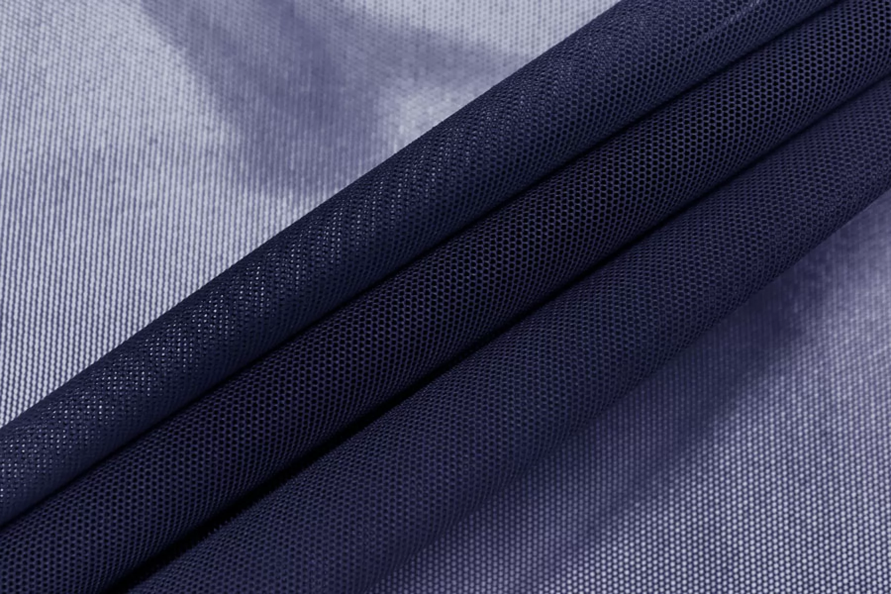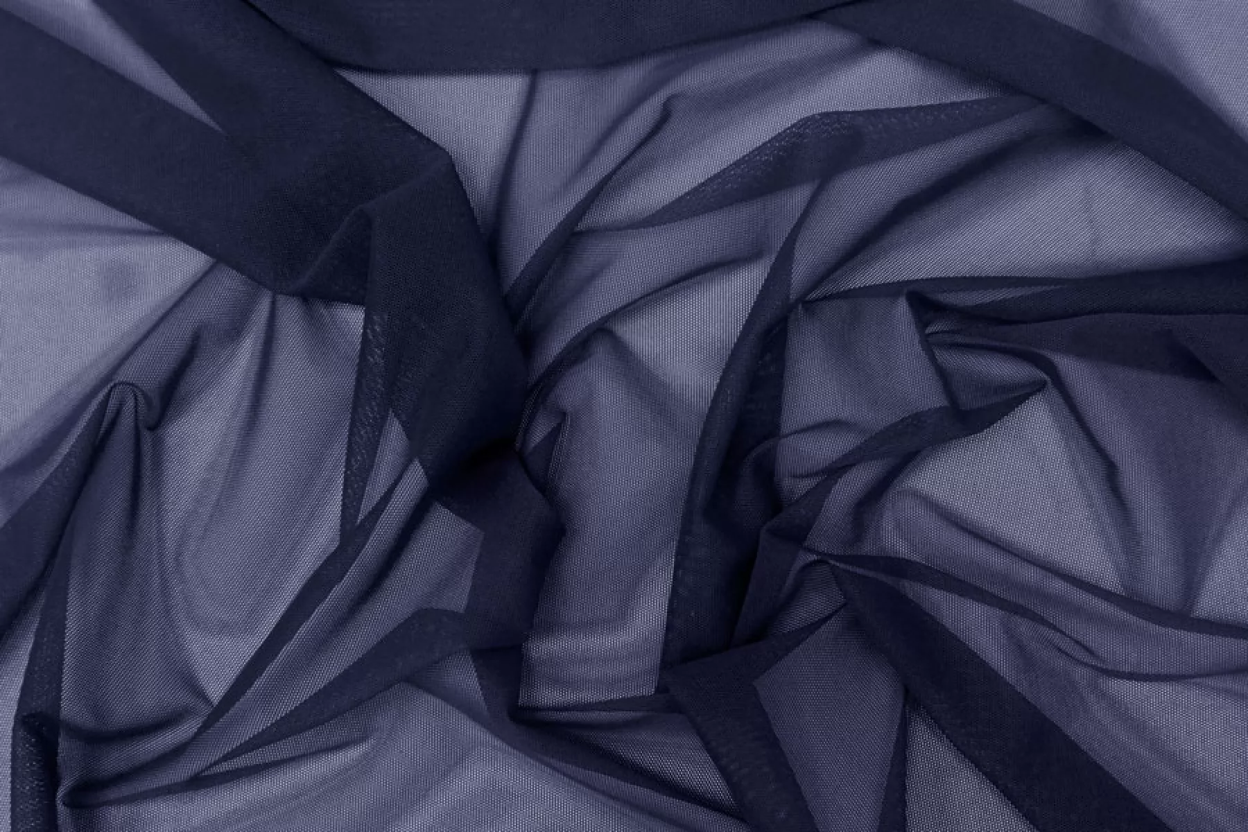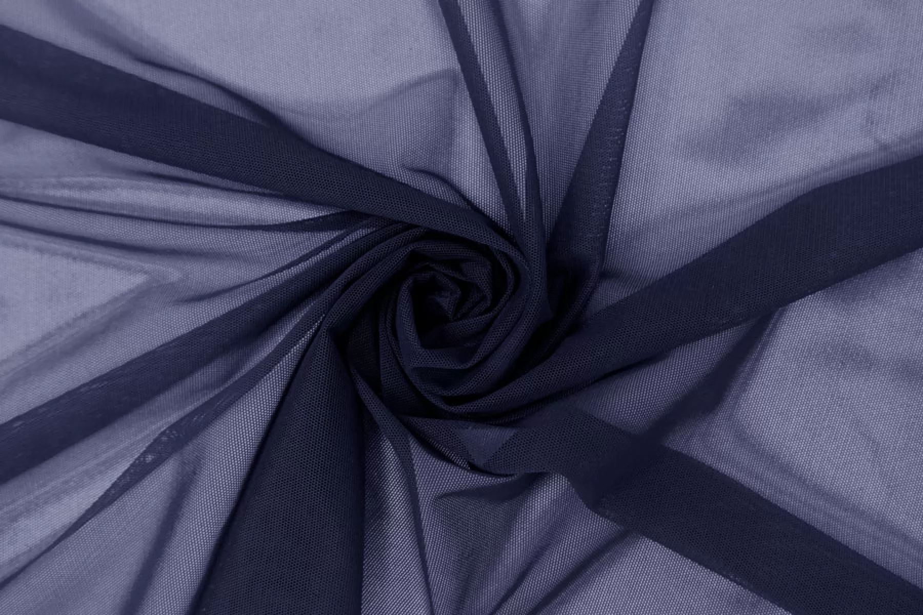 Мягкая итальянская сетка синего цвета. Тонкая, пластичная, мягкая, легкая, хорошо тянется, приятная тактильно. Форму держит слабо. Прозрачная. Хорошо подойдет для пошива как самостоятельных изделий, так и декора белья или отдельных элементов изделий, так же можно использовать для пошива нарядной одежды.