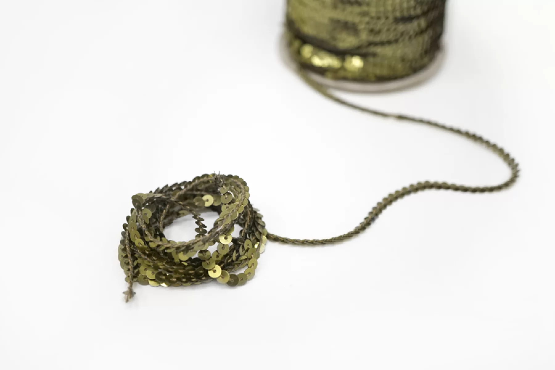 Декоративная тесьма с пайетками 4 мм Золотисто-зеленая SHA20 20032317