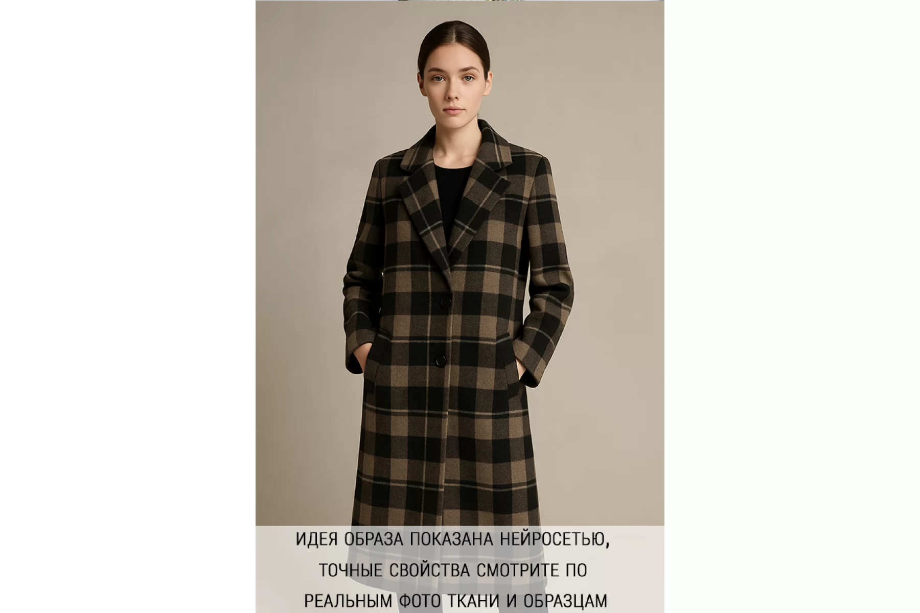 Драп пальтовый шерстяной дабл в клетку Коричневый NST H57 EE70 3102405