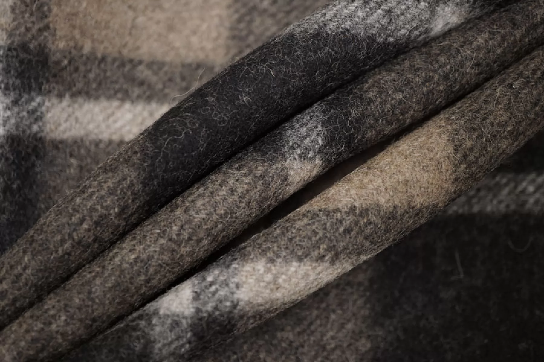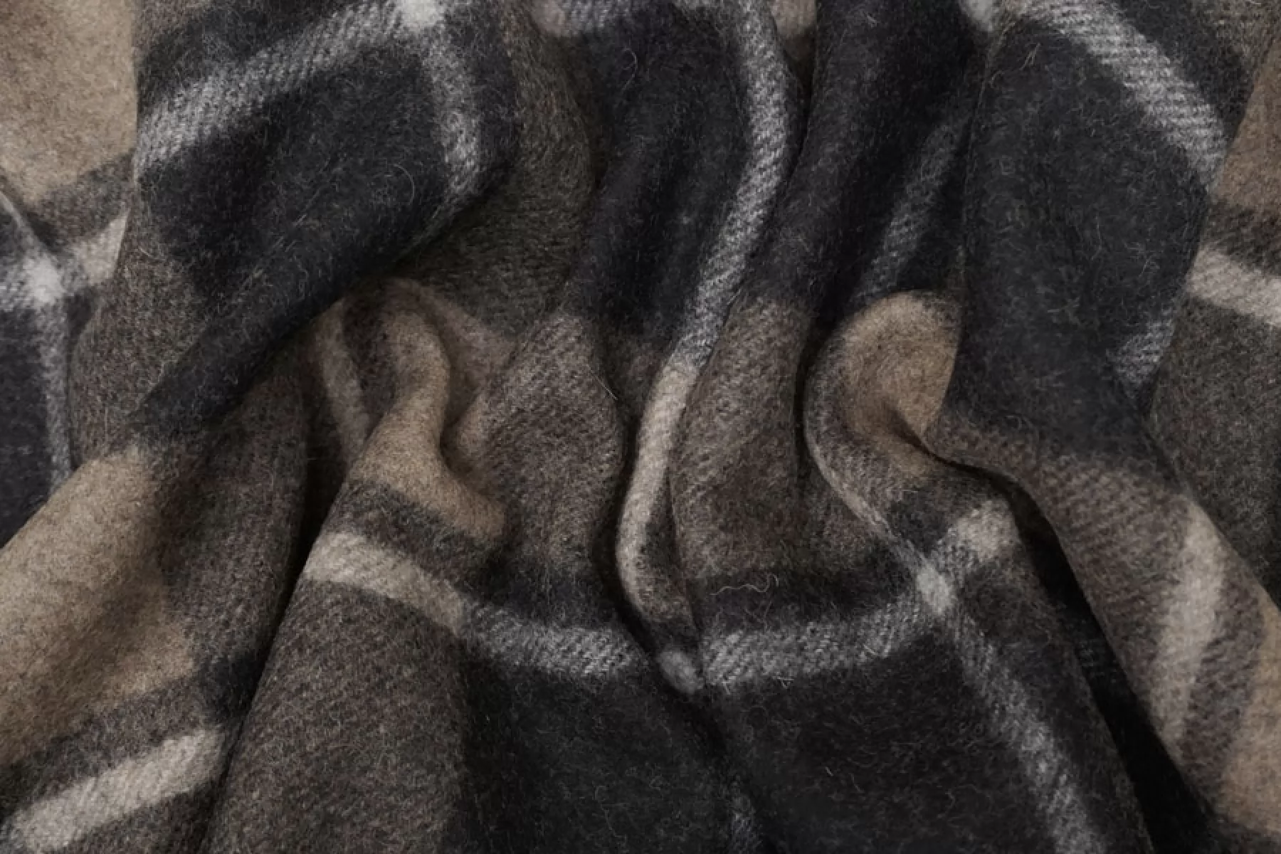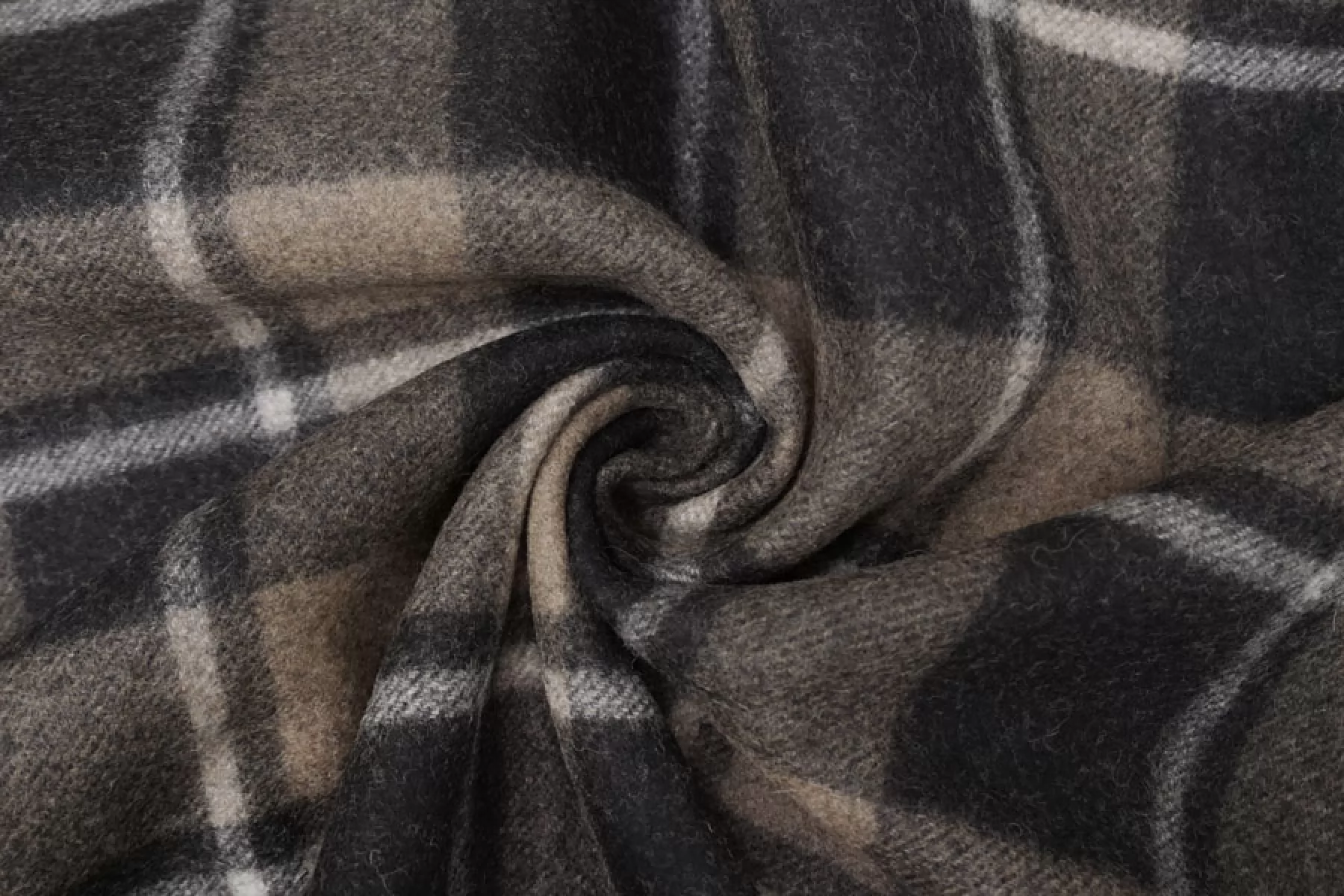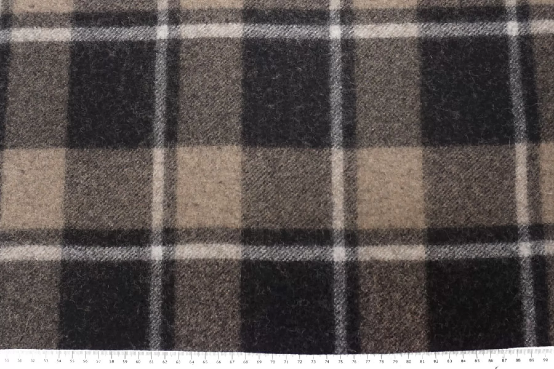Прекрасный пальтовый шерсятной драп из двух слоев, которые не разделяются. Принт с обеих сторон - крупная коричнево-черная клетка. Драп - сукно из двойной шерстяной нити, не просвечивает, хорошо держит форму. Сухая, шероховатая наощупь. Ворс коротки прижатый. Не тянется. Не осыпается. Отличный вариант на пальто. Уход деликатный.