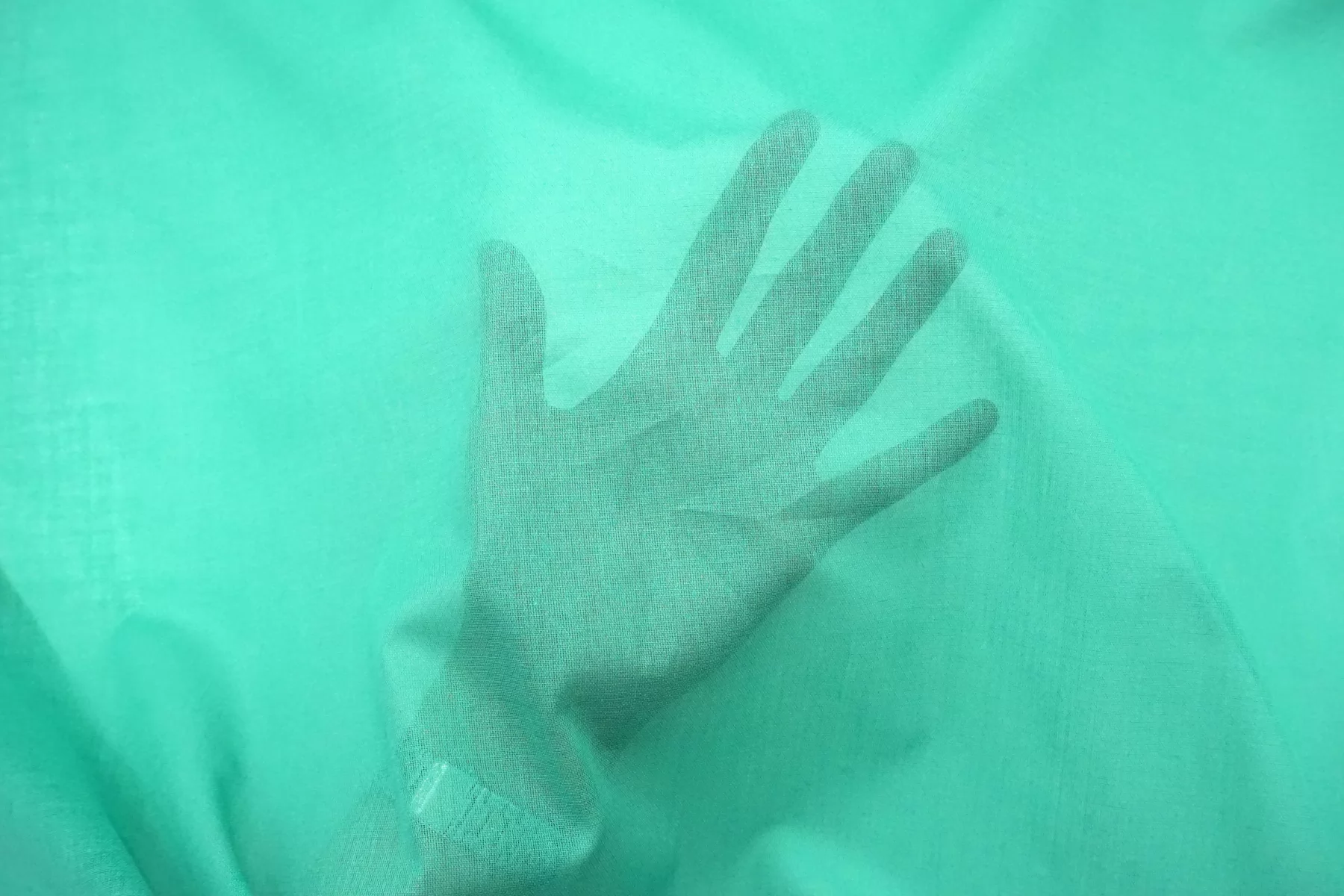 Дублерин – вид вспомогательного материала, имеющий на изнаночной стороне специальное клеевое покрытие. Дублерин позволяет усилить жёсткость или уплотнить ткань воротников или манжетов, а также помогает аккуратно провести декоративно-отделочные, вышивальные работы. Цвет бирюзовый. Подойдет для тканей плательной группы.