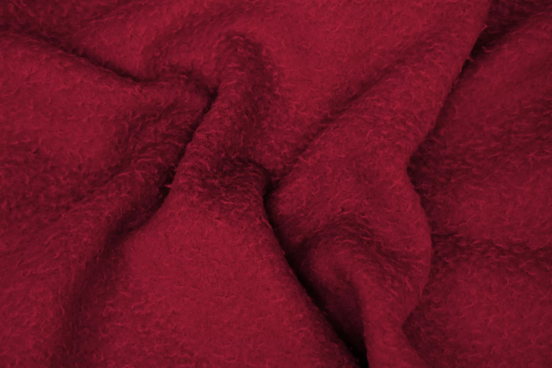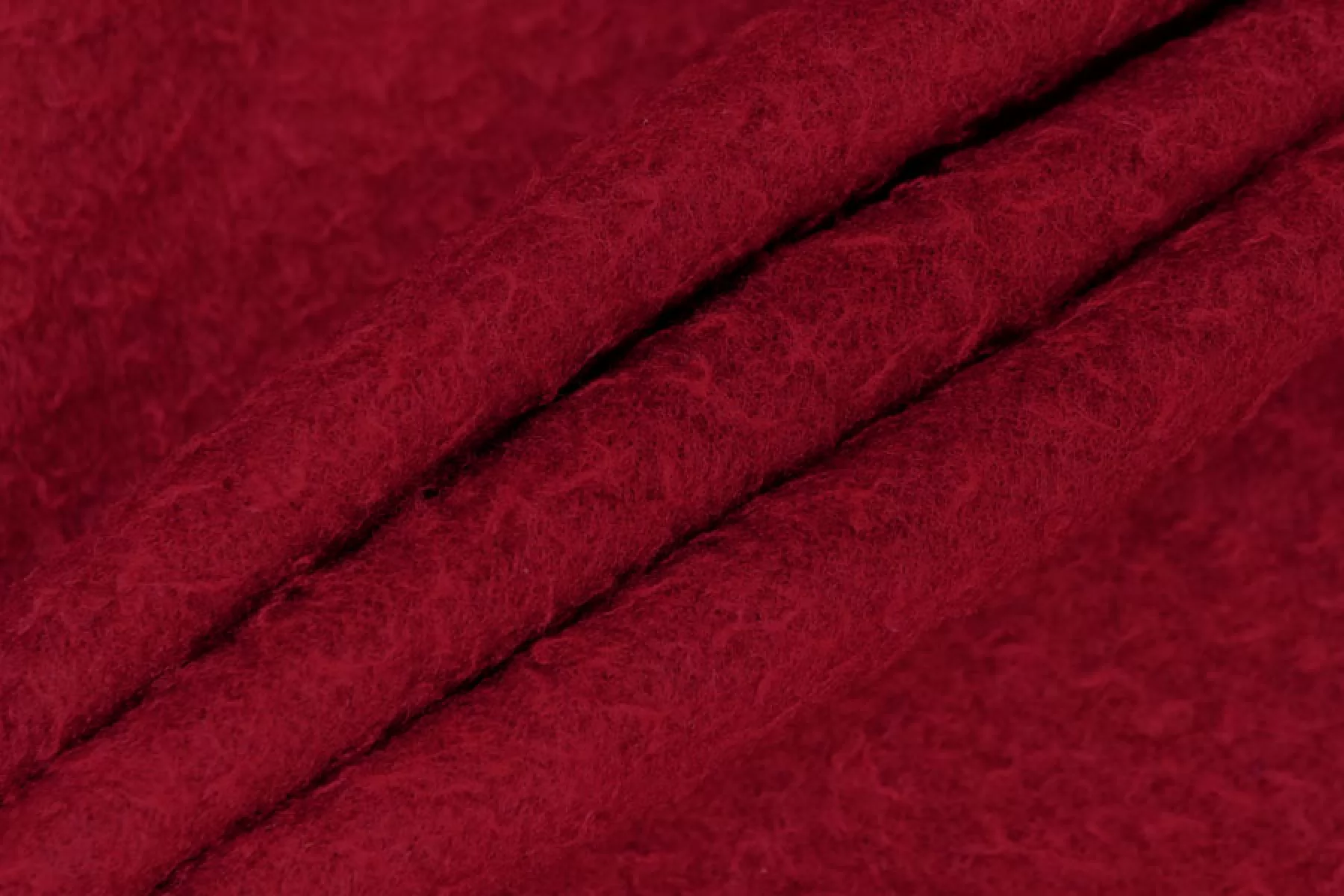 ! Внимание! По всему рулоны проходят полосы от хранения, исчезают после отпаривания! Пальтовая двухслойная шерсть красивого красного оттенка, состоит из двух слоев, которые очень легко разделяются. Один слой ворсовый, кучерявый, мягкий примерно 3 мм толщиной, другой слой с легким ворсов и виднеющимся плетением, примерно 1,5 мм. Материал тактильно приятный и мягкий, суховатый. Чувствуется, что шерсть, но не колется. Не просвечивает - сам плотненький и толстенький. Не тянется. Неплохо держит форму. Подойдет для пошива пальто. Уход деликатный.