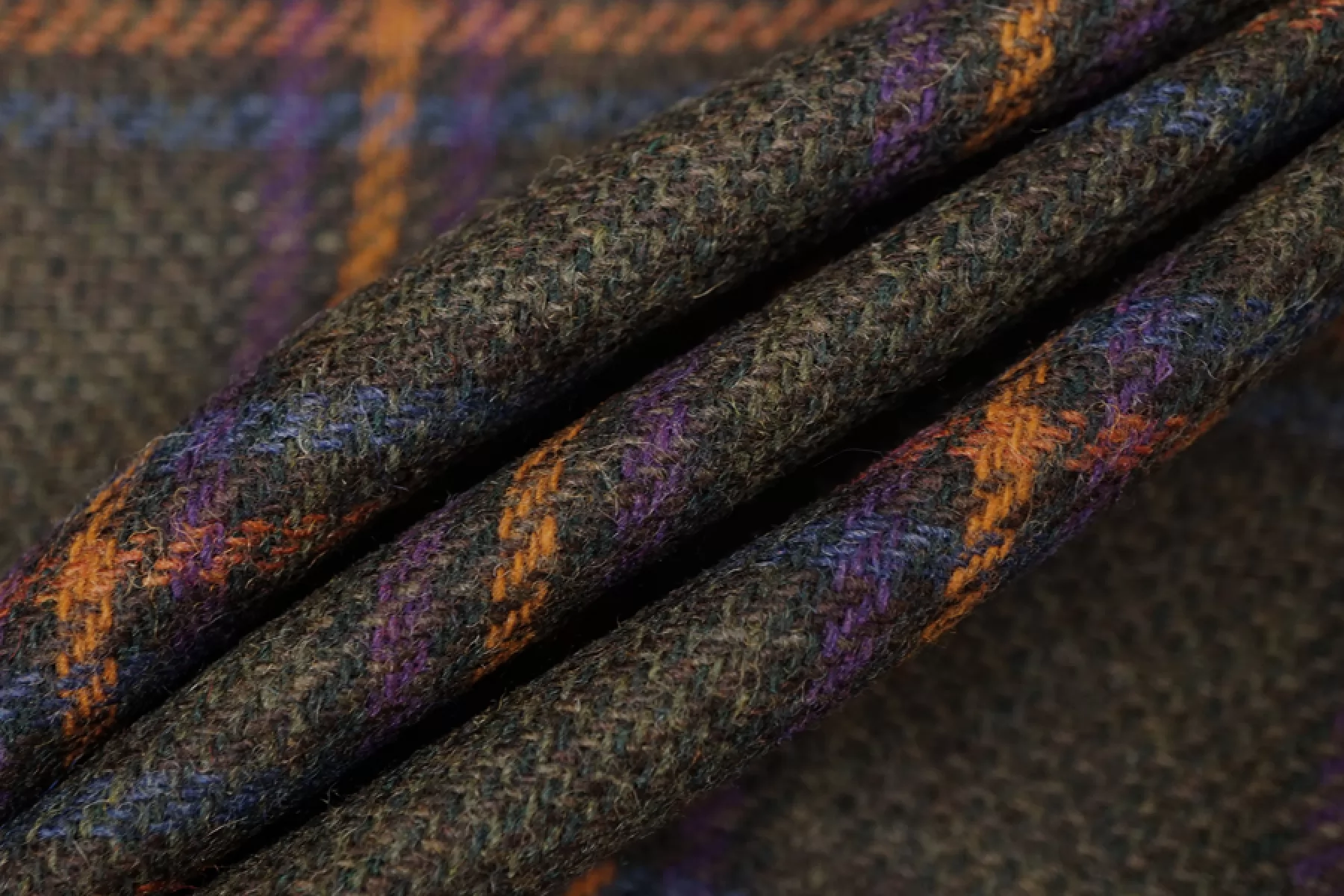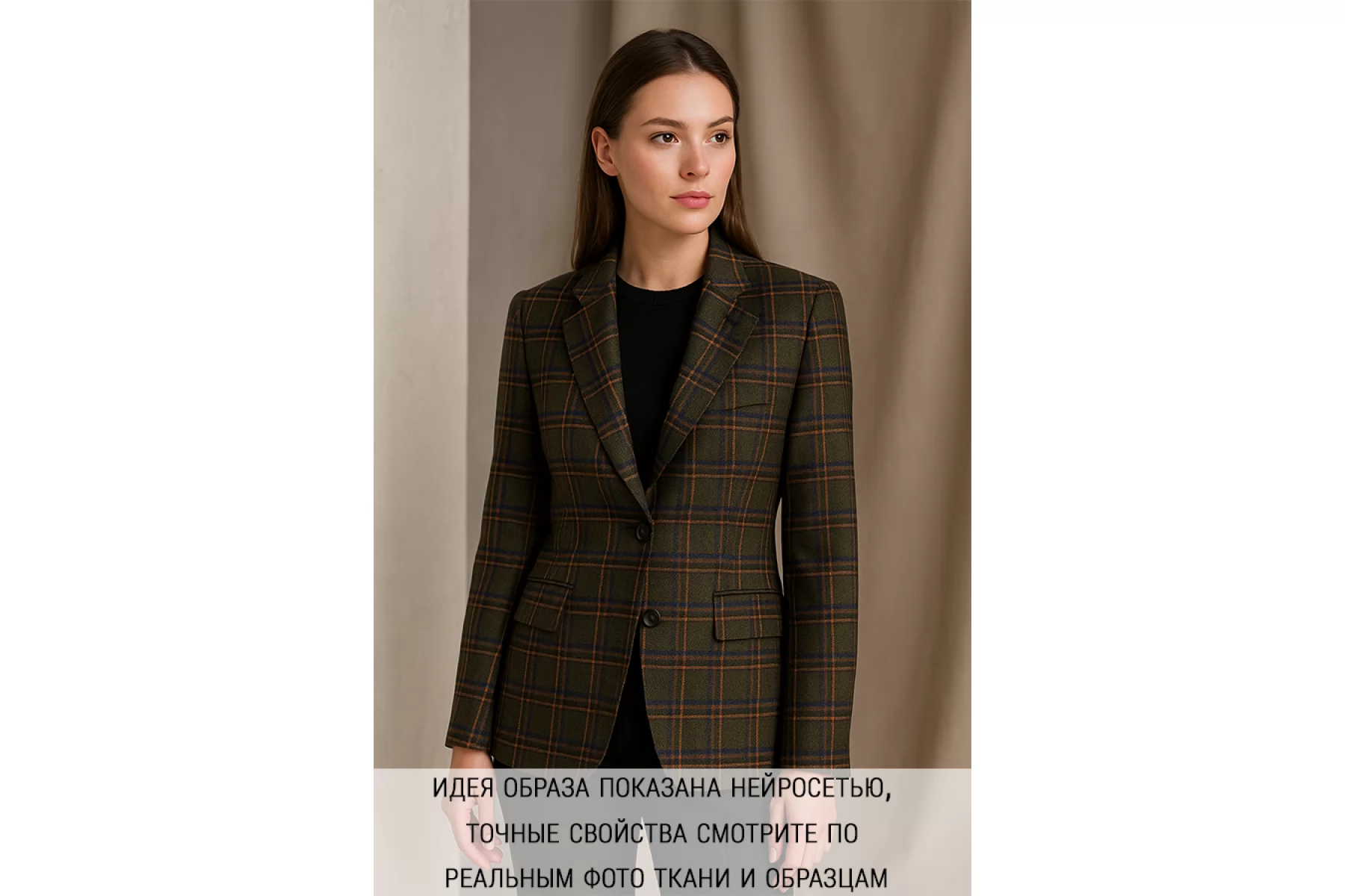 Шикарная костюмная двухслойная (слои сшиты между собой и разделяются) шерсть цвета хаки, двустороння, одна сторона в крупную клетку, другая однотонная потемнее, в диагональ. Материал очень мягкий и сухой наощупь. Толстенький , примерно 1 мм толщиной. Слои легко разделяются. Немного колется Не тянется. Форму держит . Не мнется. Пластичный, не просвечивает. Отличный костюмный вариант.. Уход деликатный.