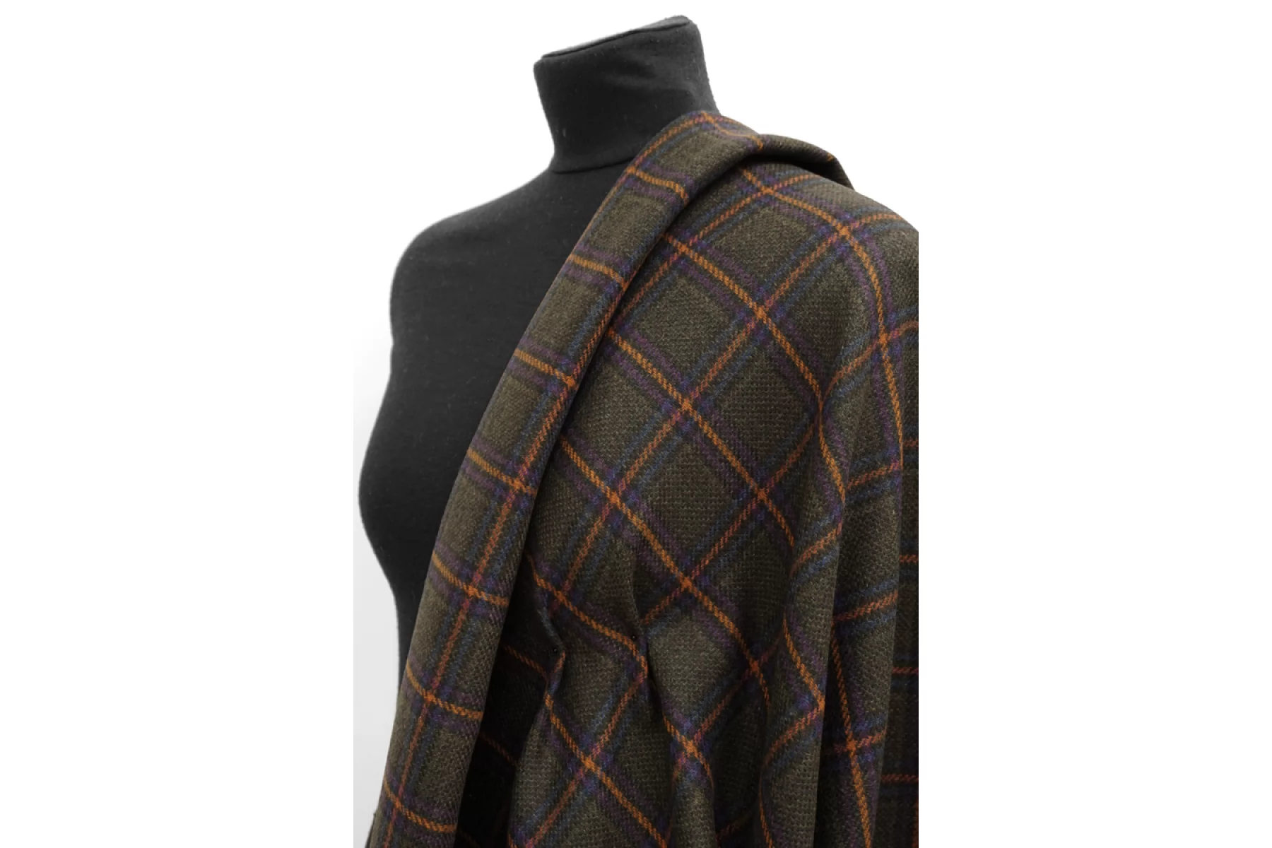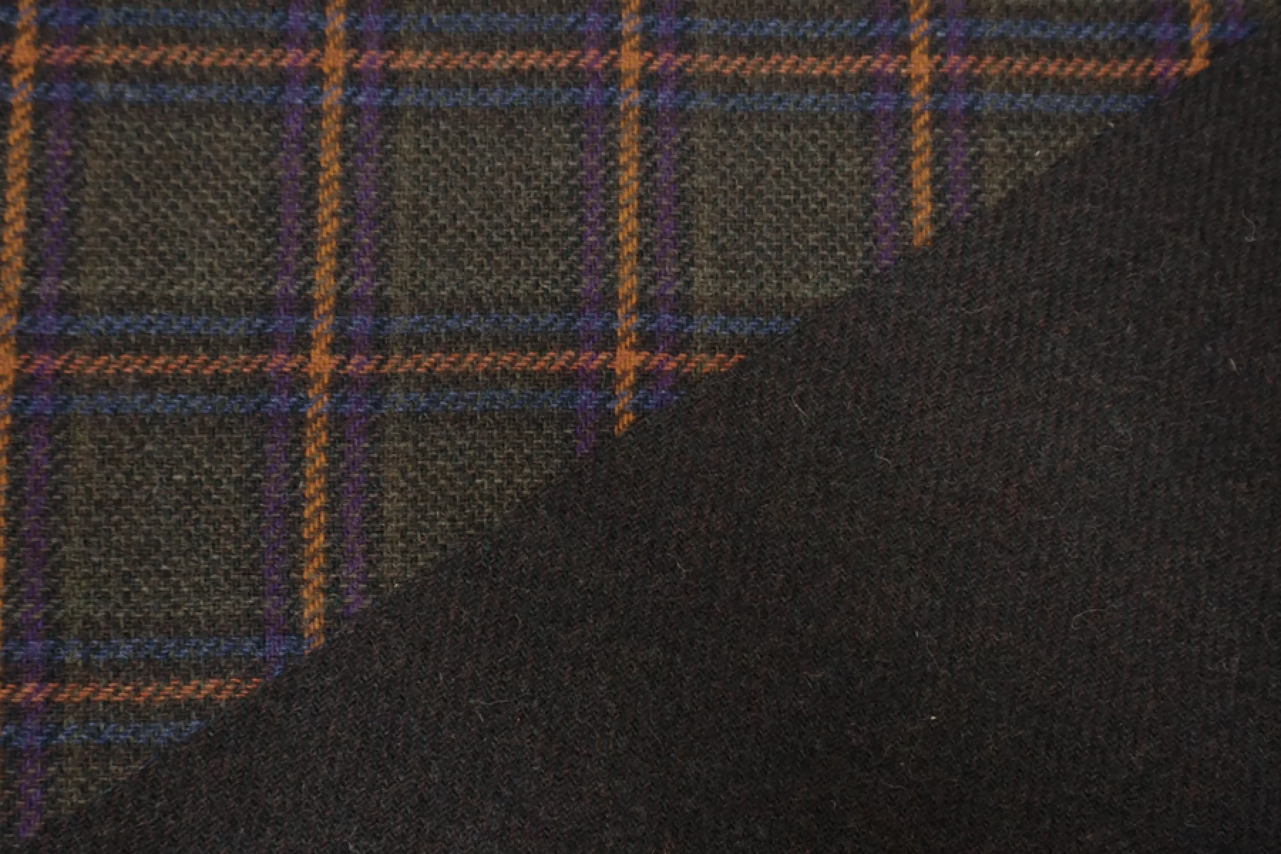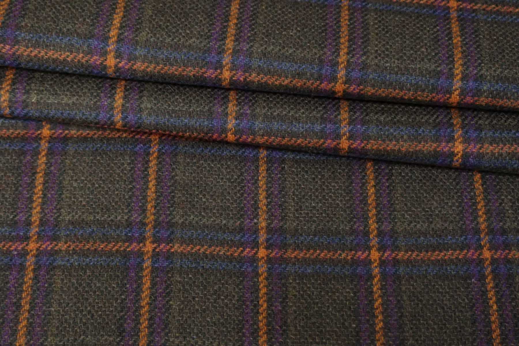 Двухслойная шерсть костюмная двусторонняя дабл Клетка Хаки NST H57 EE50 3102453