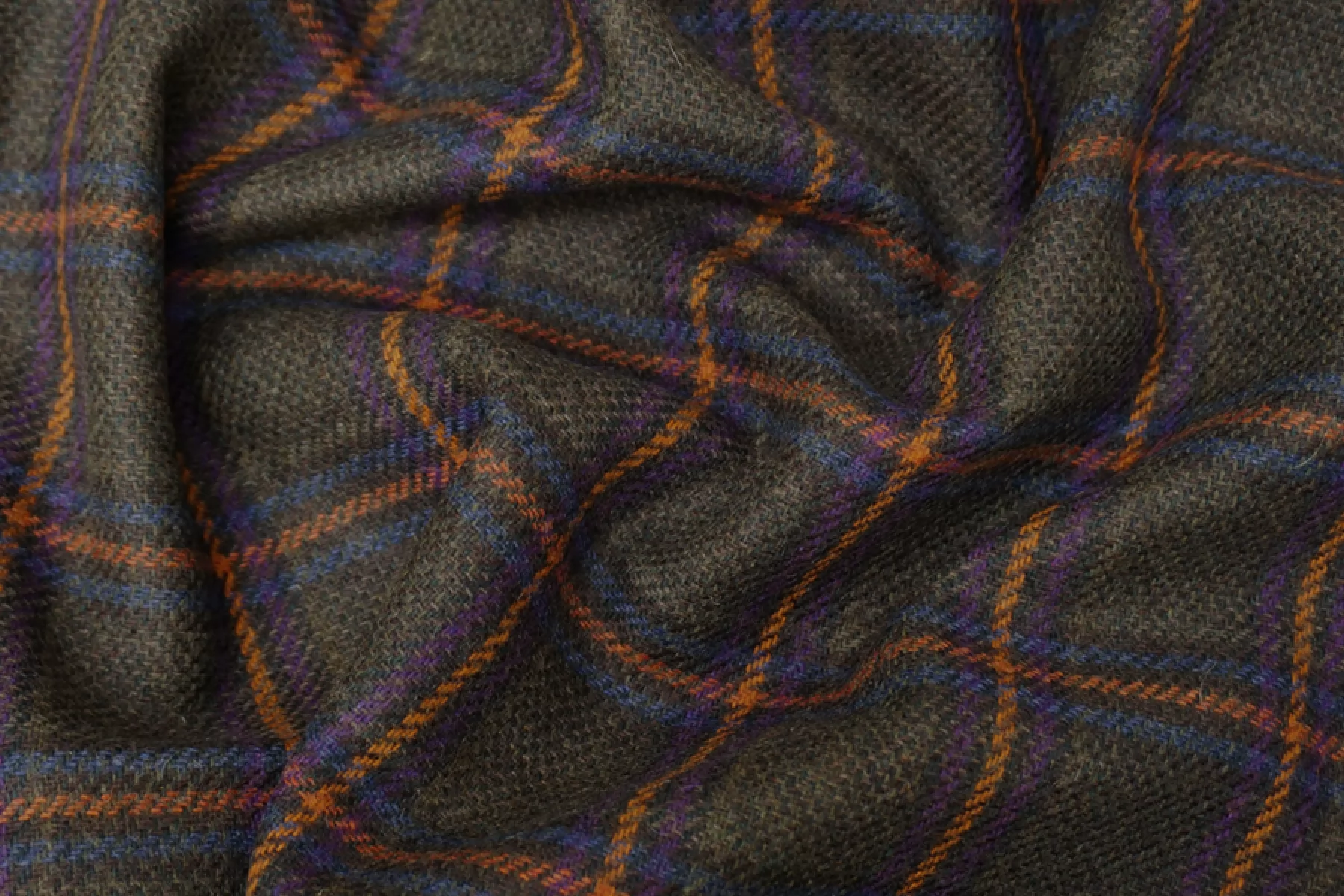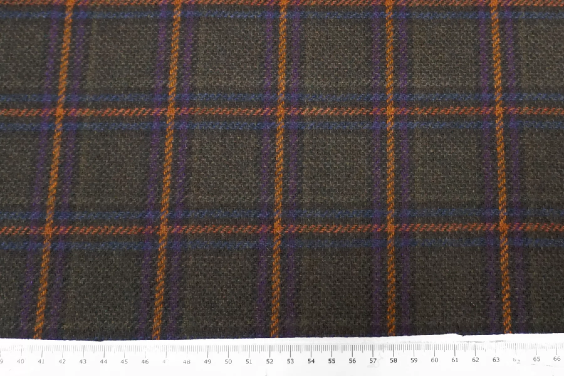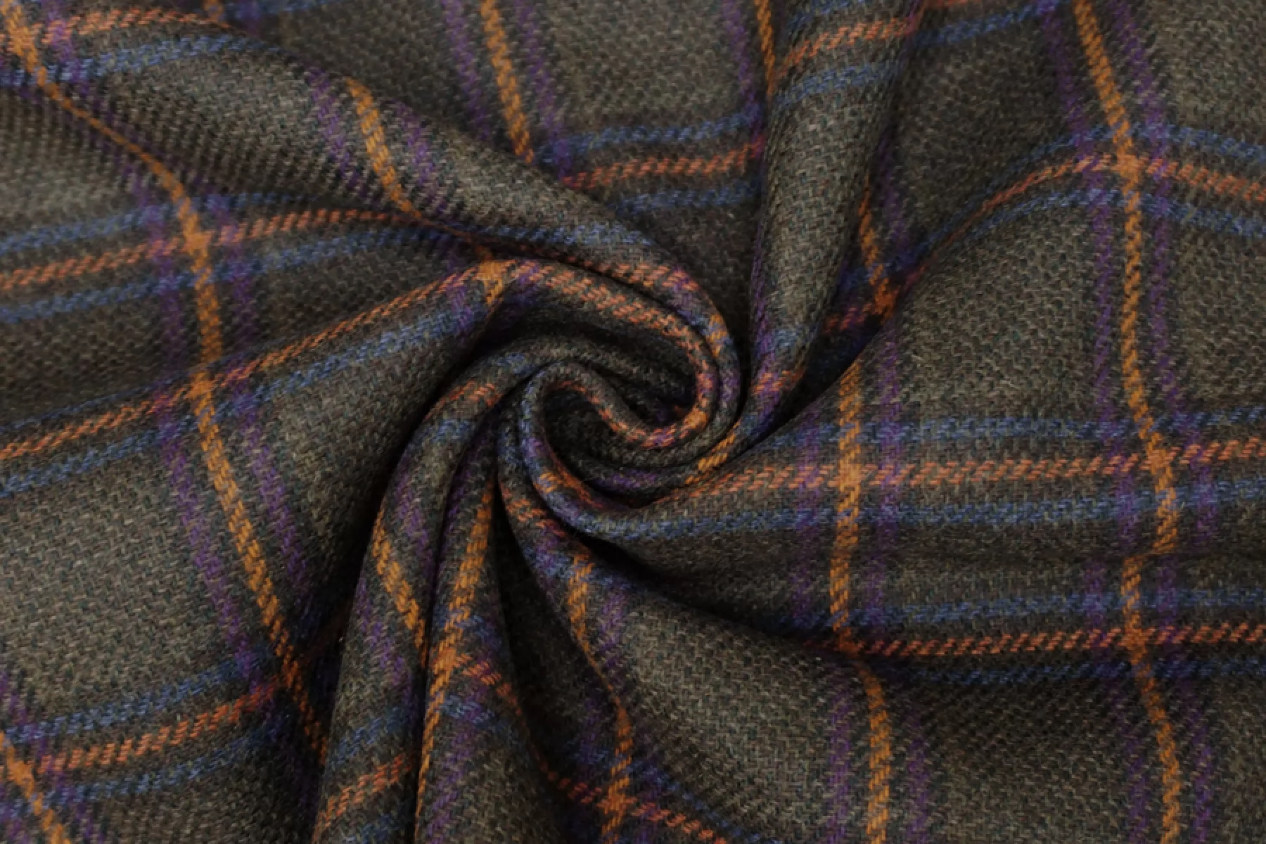 Двухслойная шерсть костюмная двусторонняя дабл Клетка Хаки NST H57 EE50 3102453