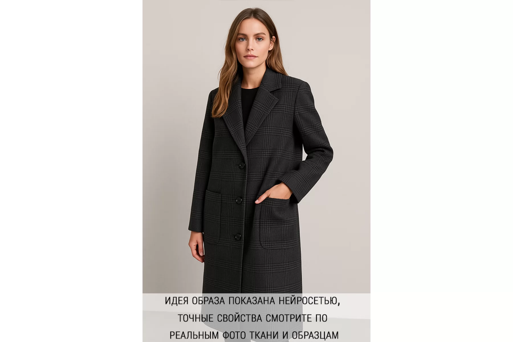 Двухсторонняя пальтовая шерсть Темно-серая клетка NST H57 EE60 3102439