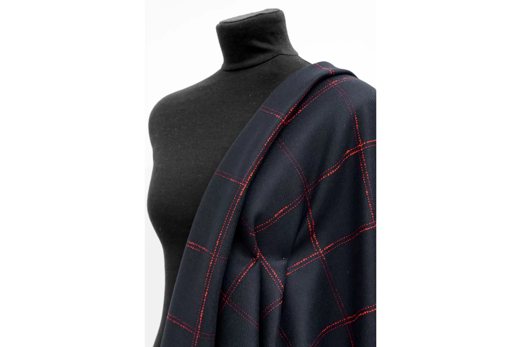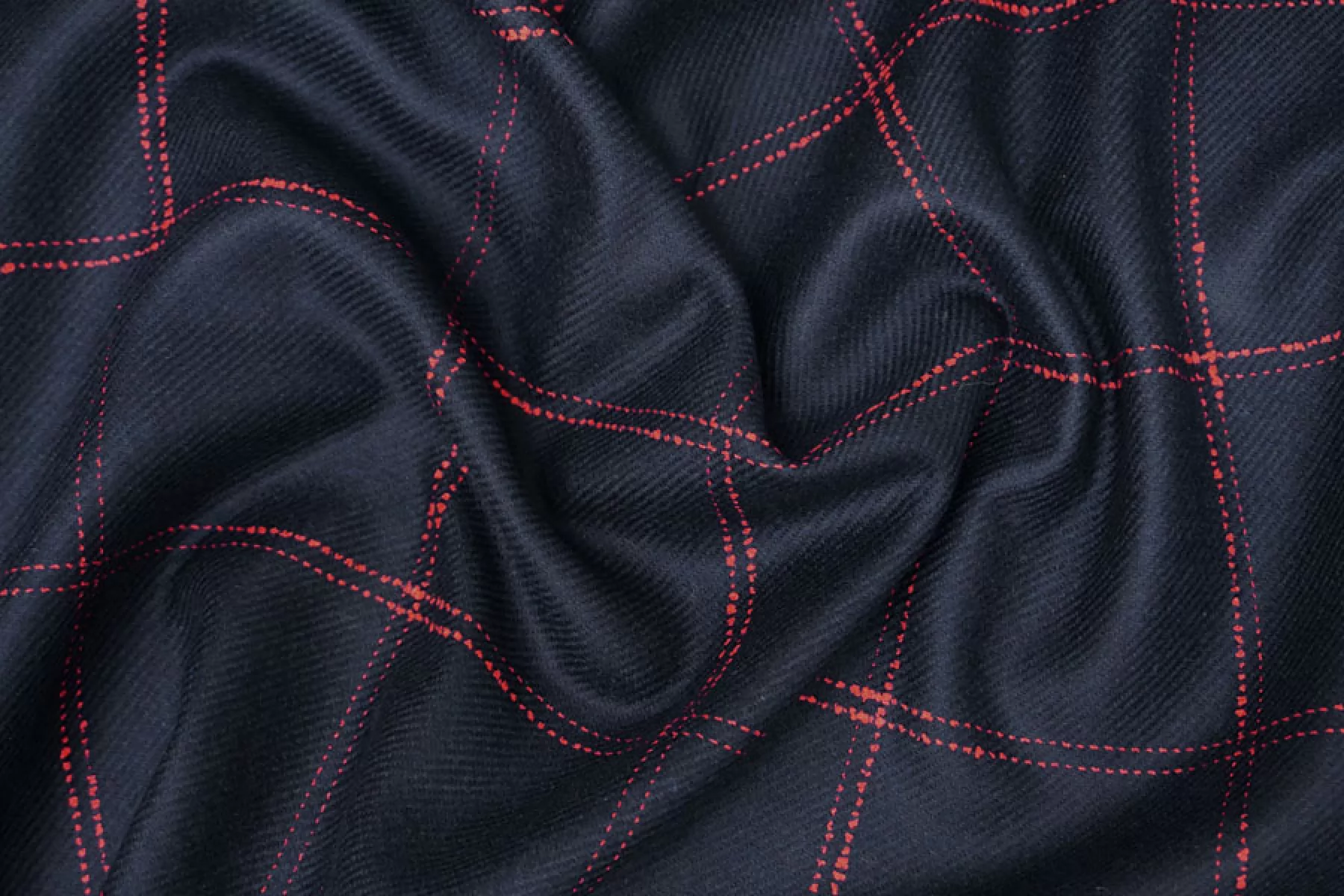 Пальтовая двуслойная шерсть темно-синего цвета в крупную красную клетку. Материал тактильно очень мягкий, приятный и гладкий. Состоит из двух слоев, которые между собой сшиты и легко разделяются. Каждый из слоев довольно плотный и не просвечивает, не тянется. Неплохо держит форму. Плотненький, толщиной примерно 2 мм. Красивый вариант для пошива пальто любого кроя - от классического до пальто-рубашки.