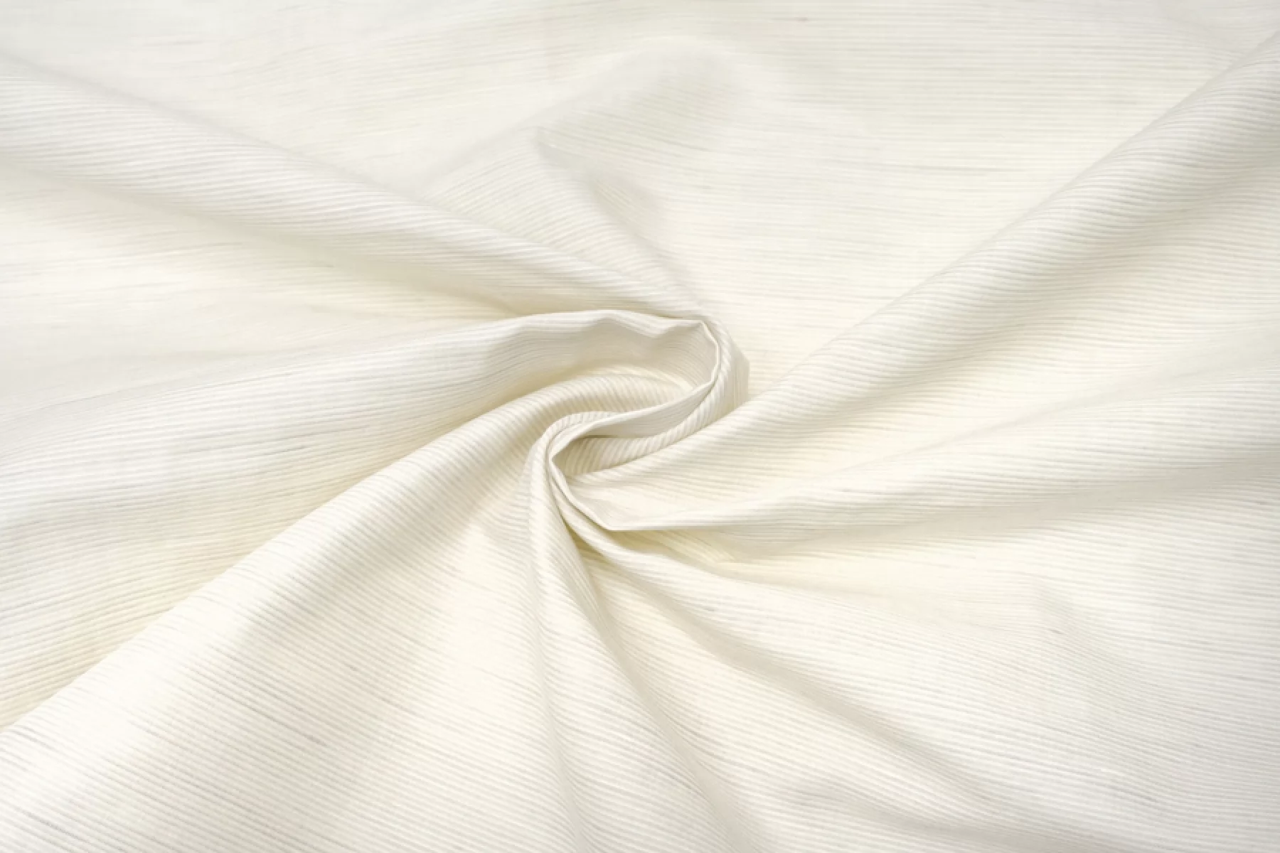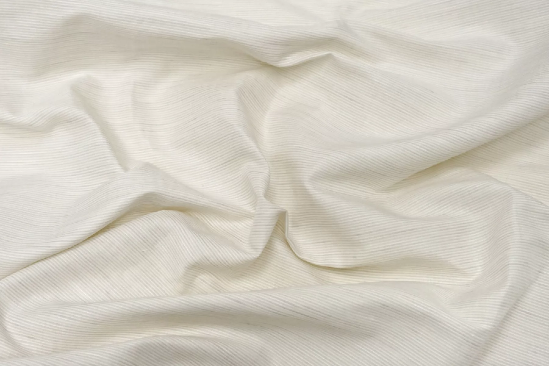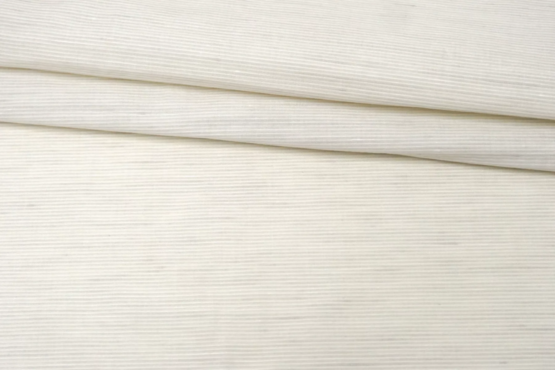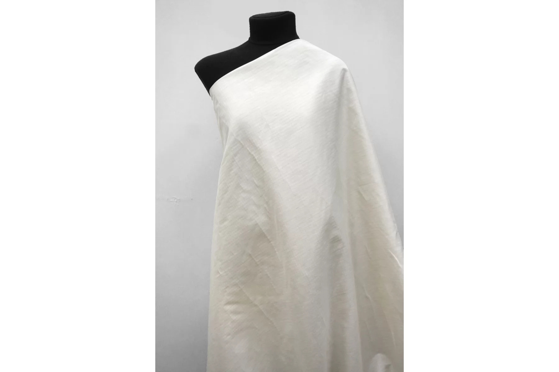 Интересный итальянский хлопок со льном от бренда Etro, двухслойный, слои разделяются. С одной стороны это хлопковый молочный батист. с другой хлопок со льном, переплетение молочных, белых и натурально-бежеватых нитей создает легкий полосатый рисунок. Присутствуют характерные утолщения нити. Тактильно слегка суховатый. Не тянется, мнется. Просвечивает. Пластичный но при этом держит форму. Отличный вариант на летние изделия, платья, юбки, жакеты. Уход деликатный.