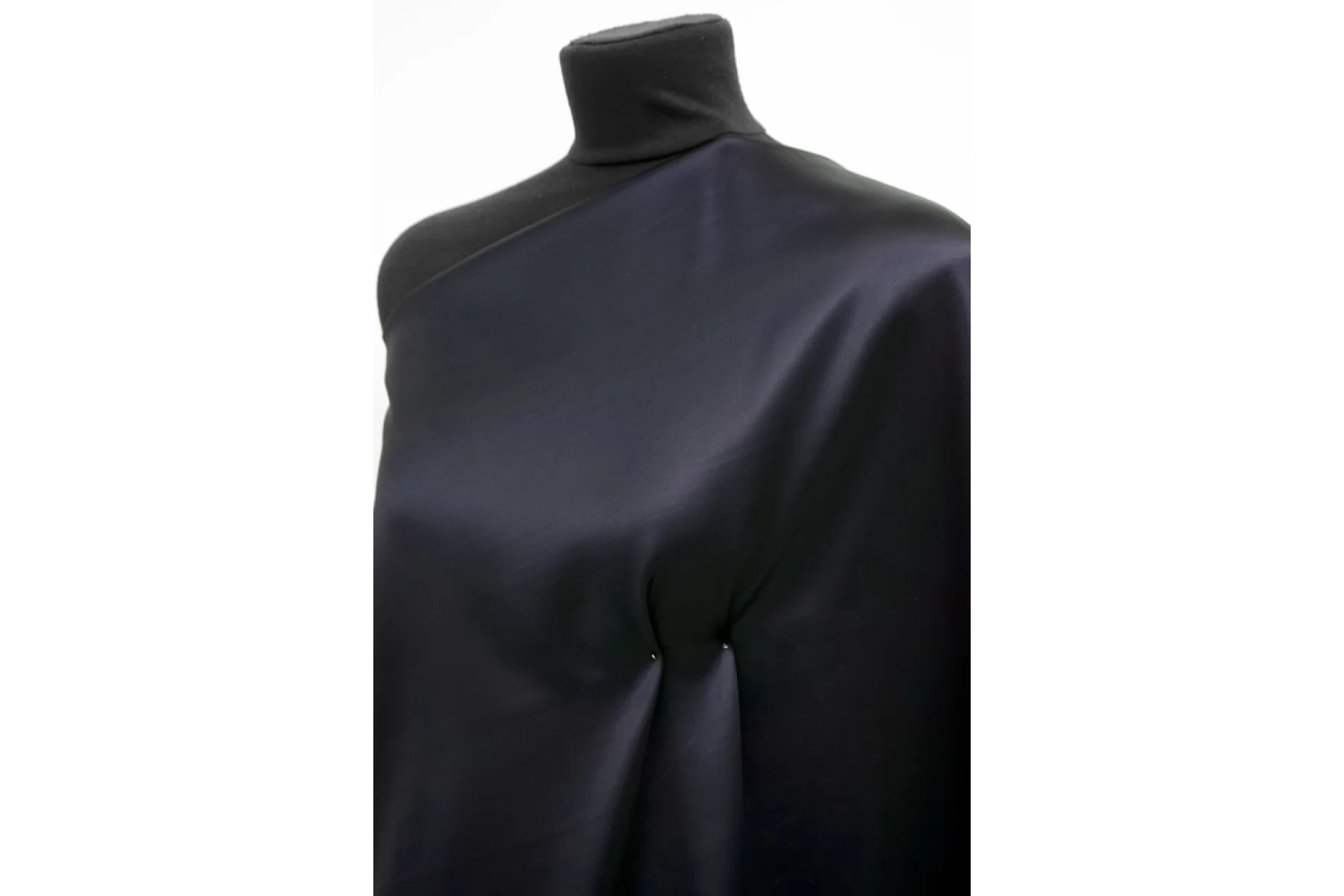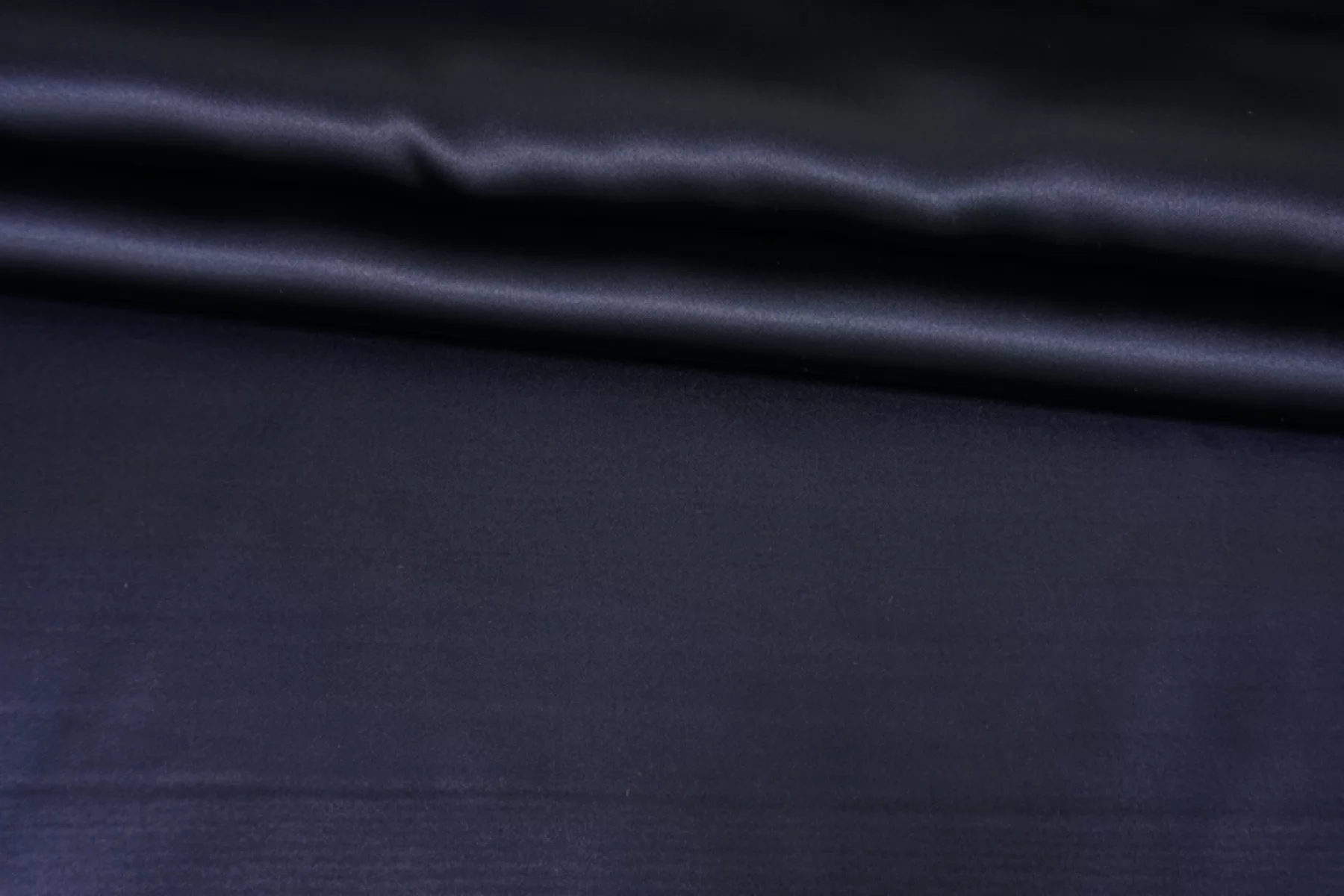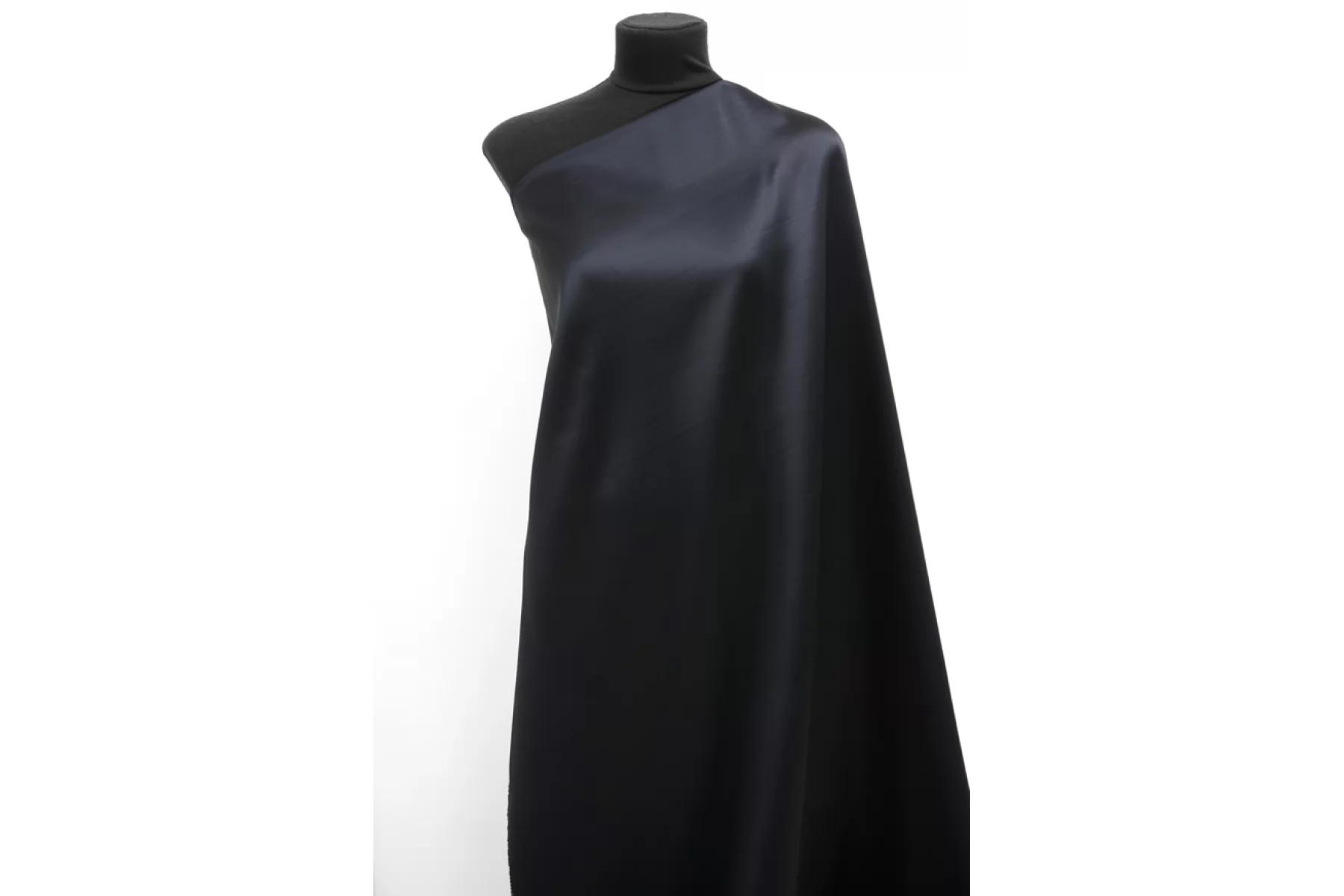 Прекрасный темно-синий смесовой двусторонний атлас от VERSACE. Гладкий, плотный. Немного держит форму. Не просвечивает. Красиво драпируется. Отличный вариант на костюмы. Обратите внимание на ширину материала.