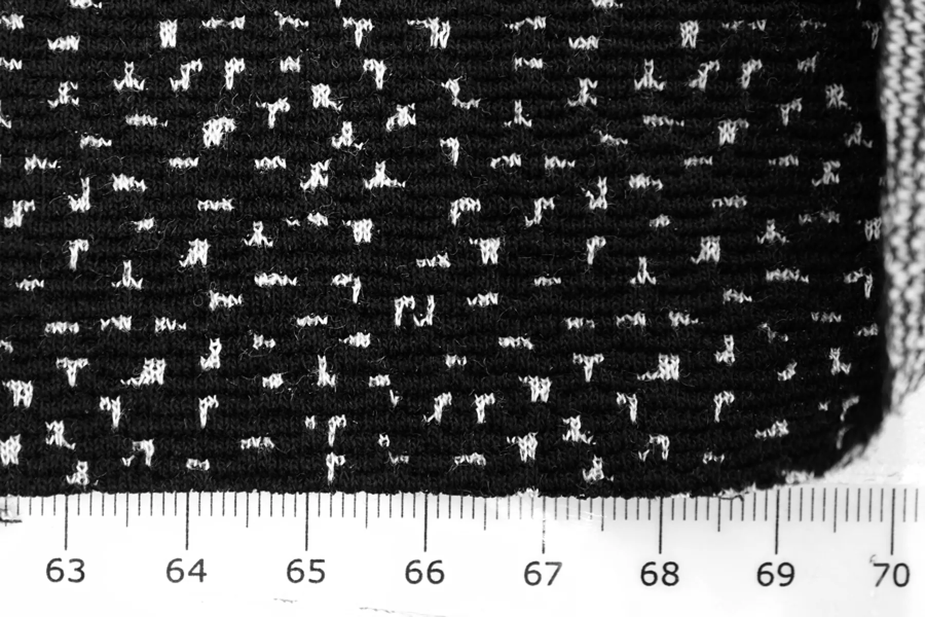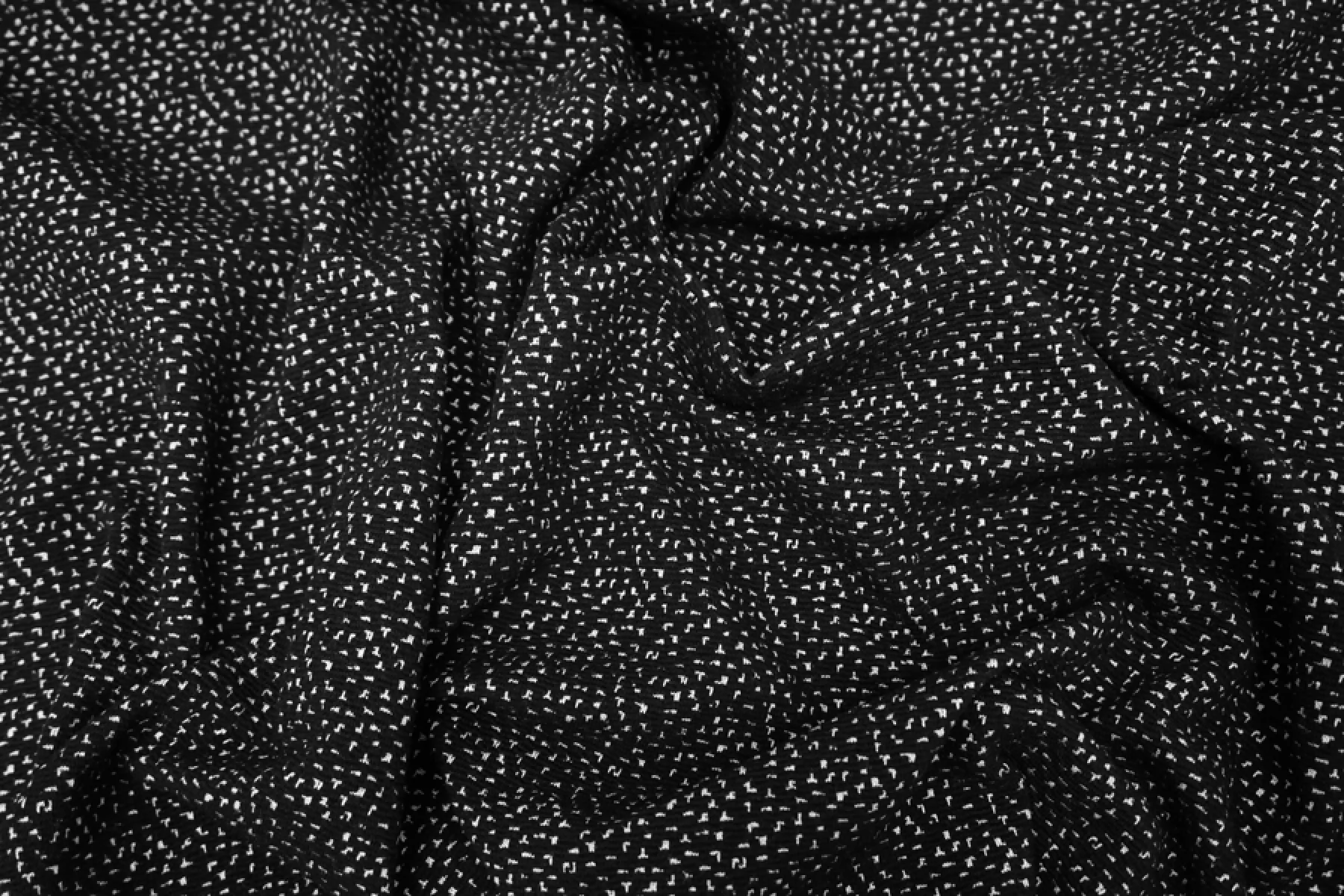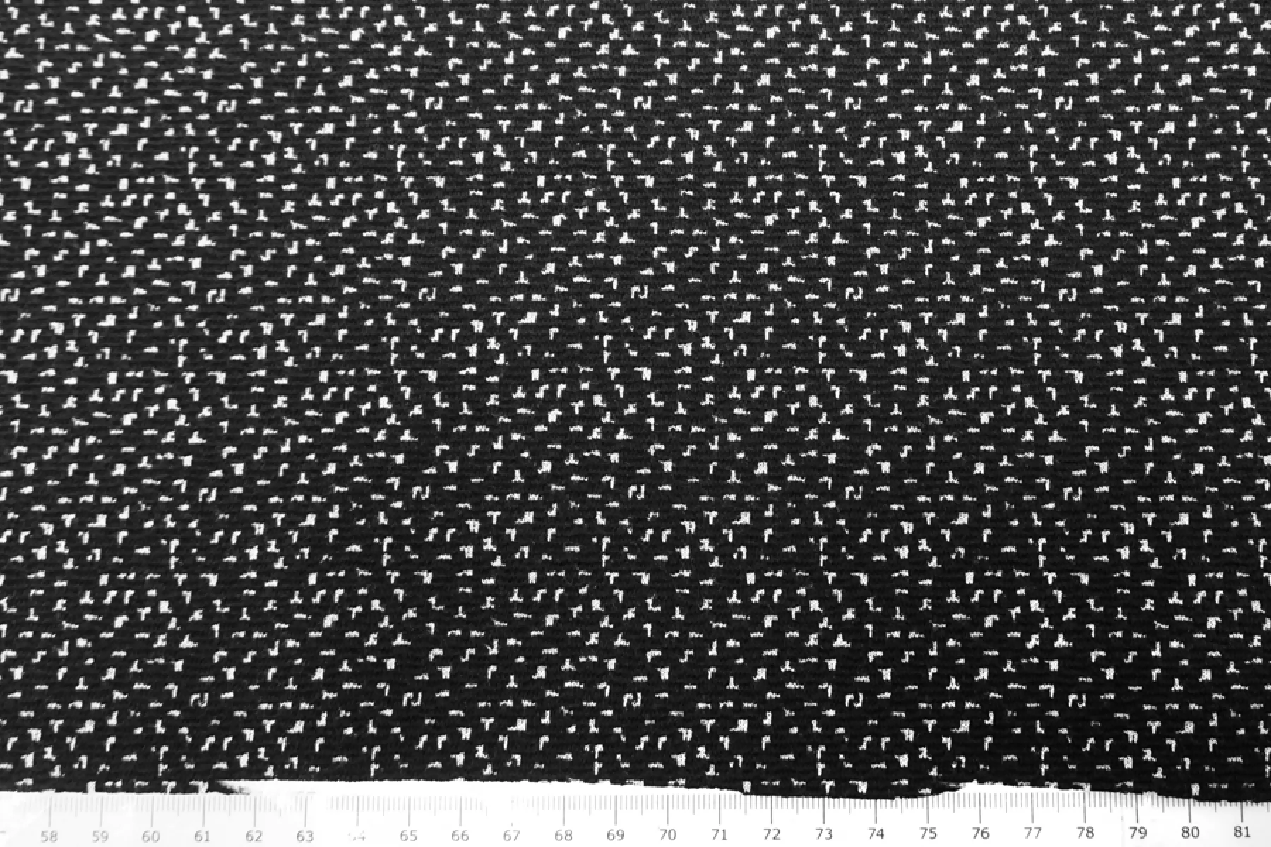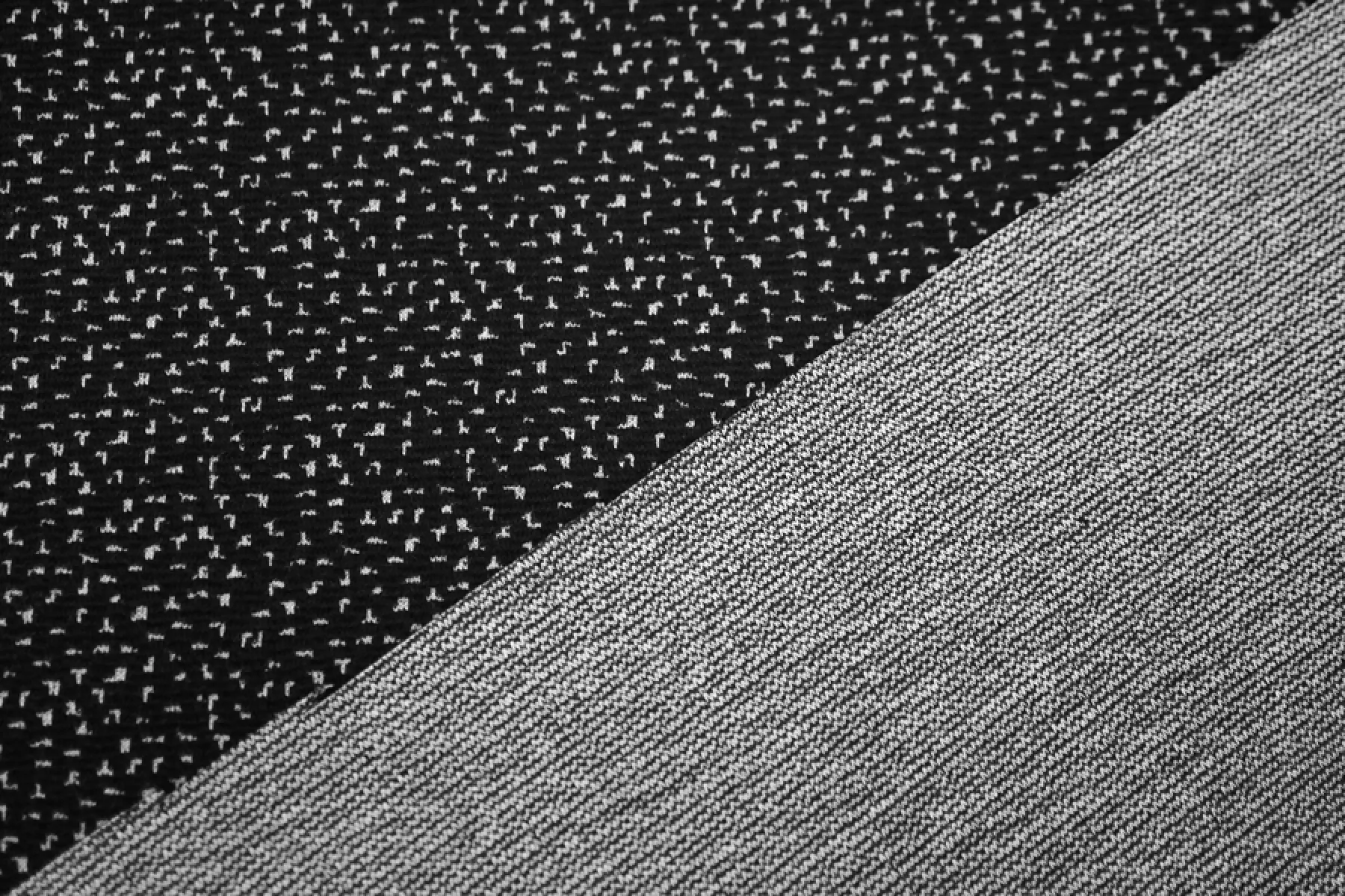 Хлопковый фактурный трикотаж джерси в черно-белом цвете. Материал тактильно слегка жестковатый, изнаночная сторона - гладка и блестящая. Не просвечивает. Не мнется. Не просвечивает. Хорошо тянется. Хорошо драпируется и держит форму. Отлично подойдет на любые трикотажные изделия, юбки, кардиганы, кофты, костюмные варианты и не только. Уход деликатный.