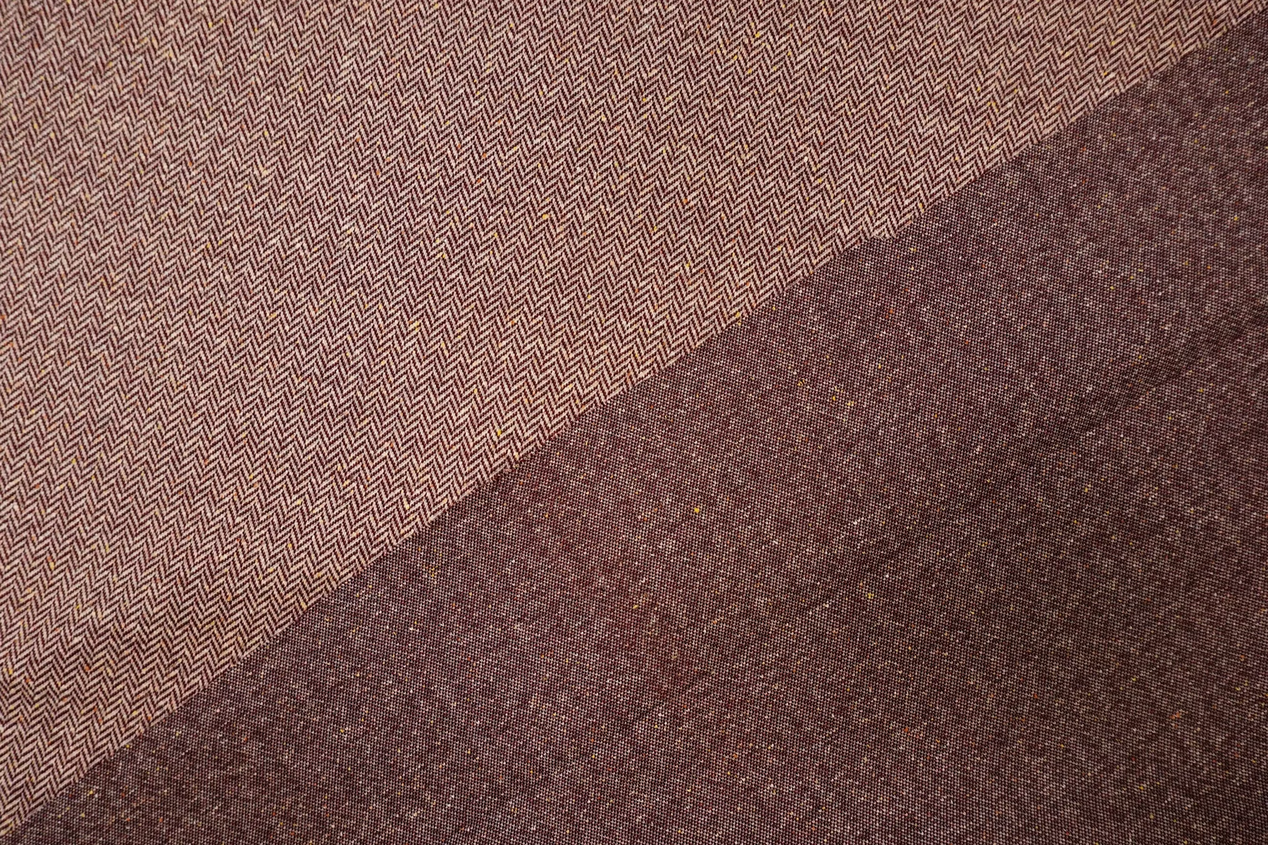 Прекрасный джерси из хлопка с небольшой добавкой шерсти, узор-ёлочка, нити бордового и приглушённо-белого цвета, плюс вкрапления жёлтых и оранжевых нитей под твид. Тактильно мягкий, не колется. Вязка тянется. Не просвечивает. Плотненький. Пластичный, немного держит форму. Подойдет для пошива платья, брюк, юбки, блейзера. Учитывайте возможную усадку. Уход деликатный.