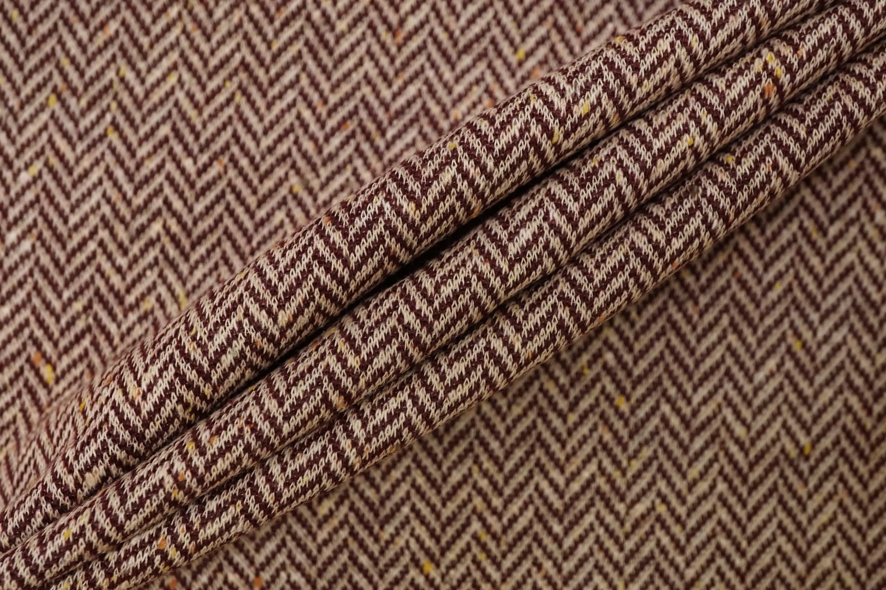 Джерси хлопковый с шерстью под твид в ёлочку Бордово-белый TRC H47/6 X30 11122563