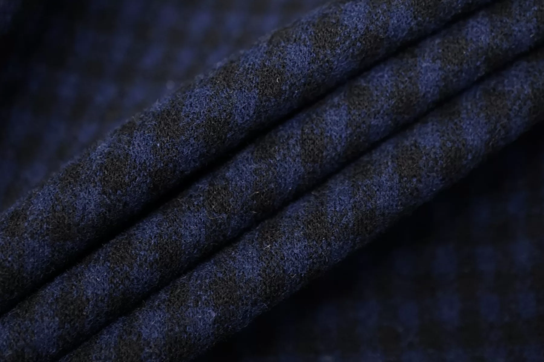 Очень интересный хлопковый джерси в темно-синюю мелкую клетку, под фланель, одна сторона - ворсовая. Очень мягкий и приятный наощупь, одна сторона ворсовая, велюровая наощупь, другая - без ворса, шероховатая. Хорошо тянется. Не просвечивает. Плотненький. Форму держит. Пластичный. Подойдет для пошива платья, юбки, топа, кофты или кардигана. Учитывайте возможную усадку.