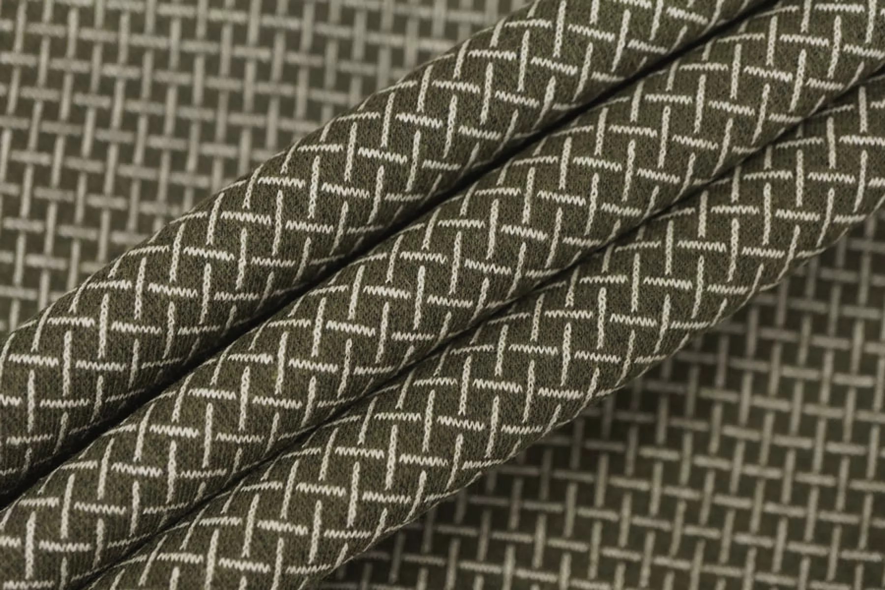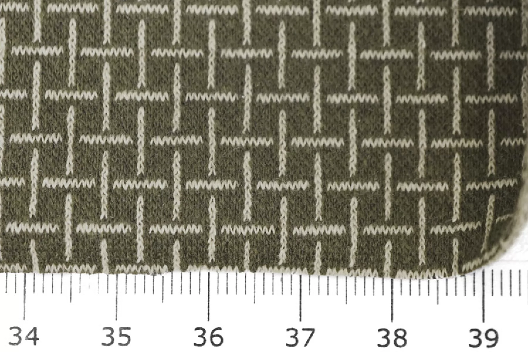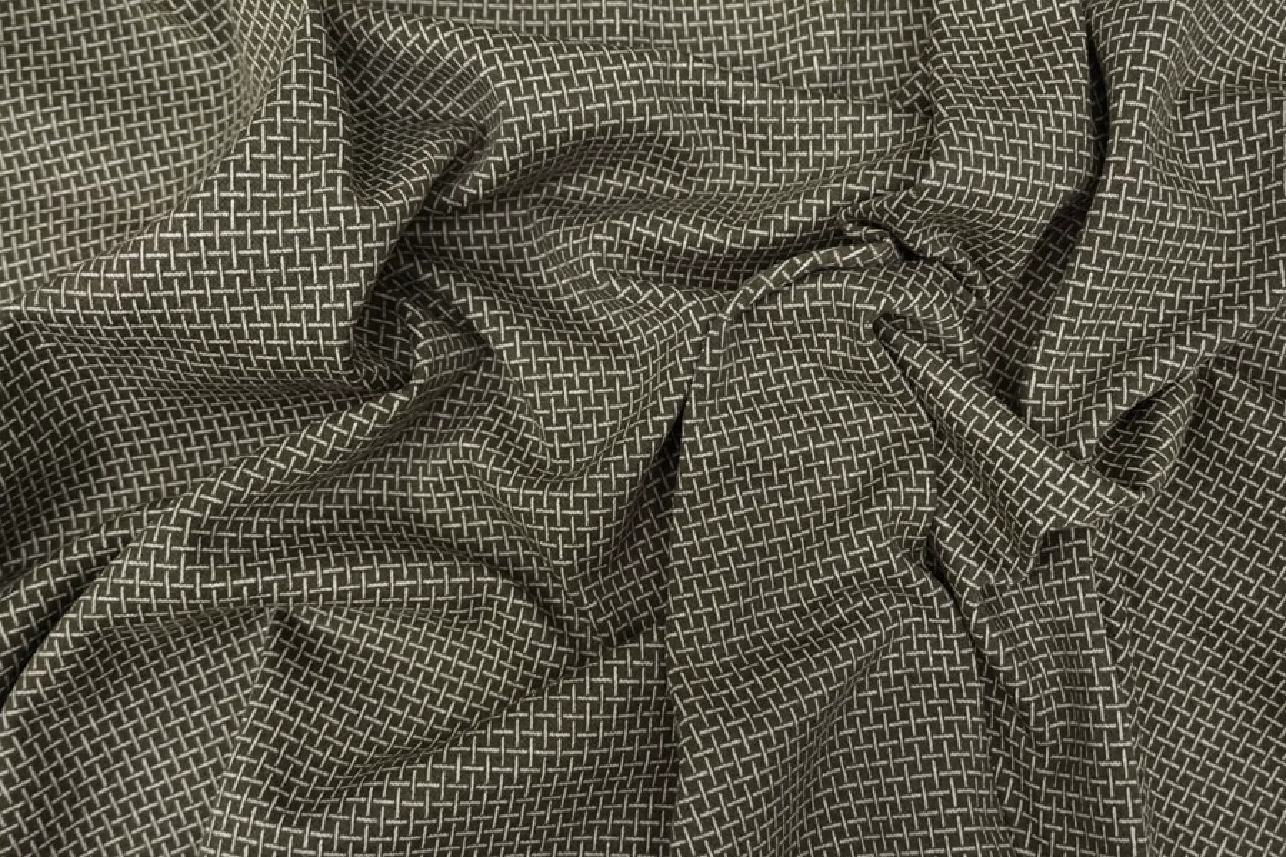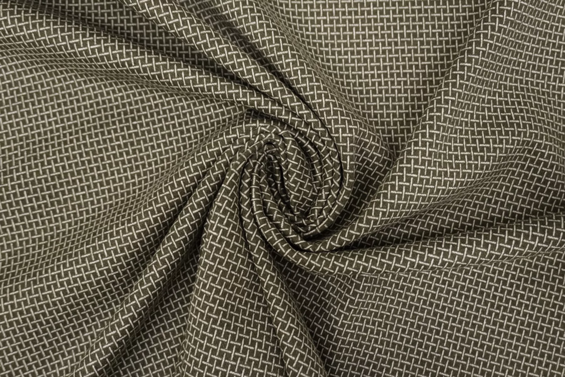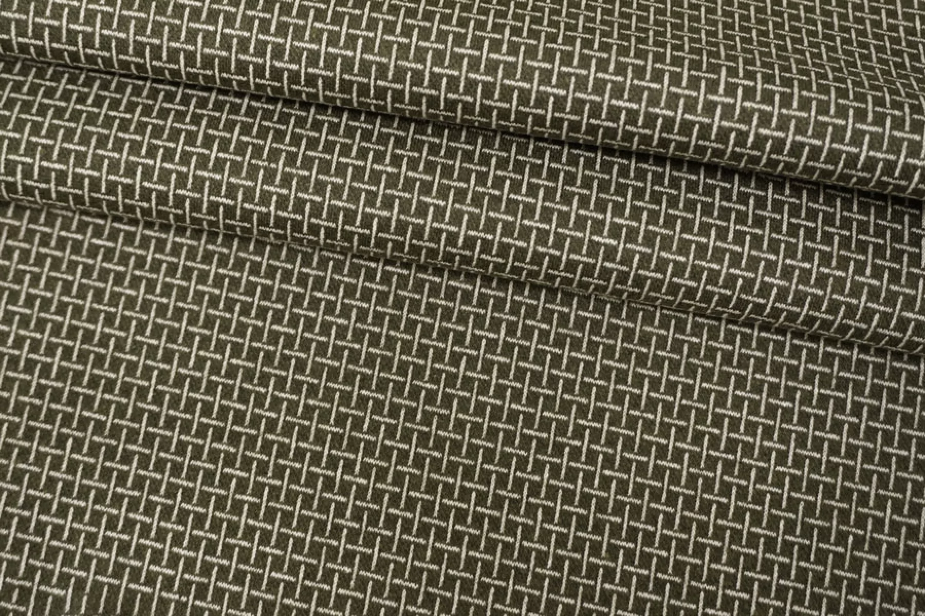 Шикарный хлопковый джерси зеленого цвета с бледно-желтым мелким геометрическим орнаментом. Мягкий и слегка шероховатый наощупь. Хорошо тянется. Не просвечивает. Плотненький. Форму держит. Пластичный. Сминается. Подойдет для пошива костюма ,платья, мягкого жакета. Учитывайте возможную усадку. Уход деликатный.