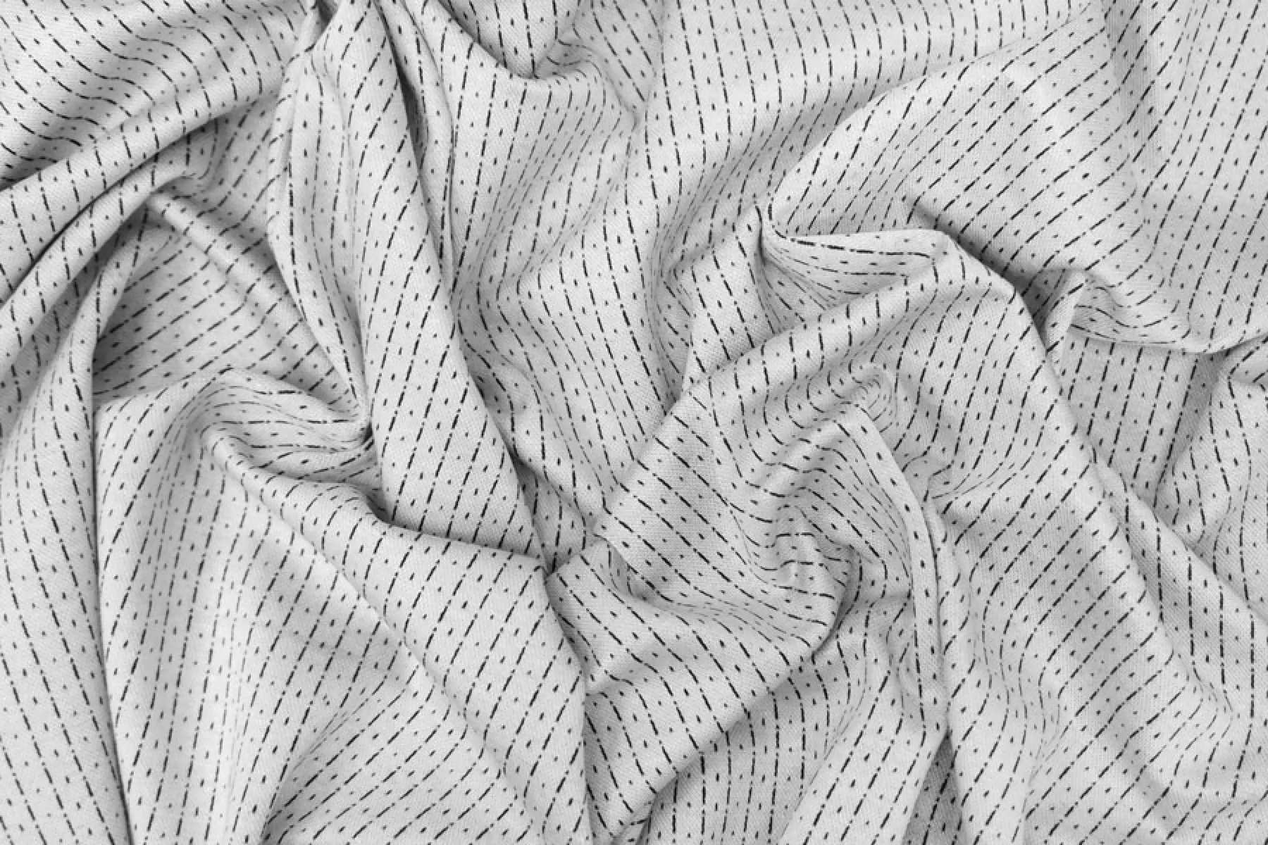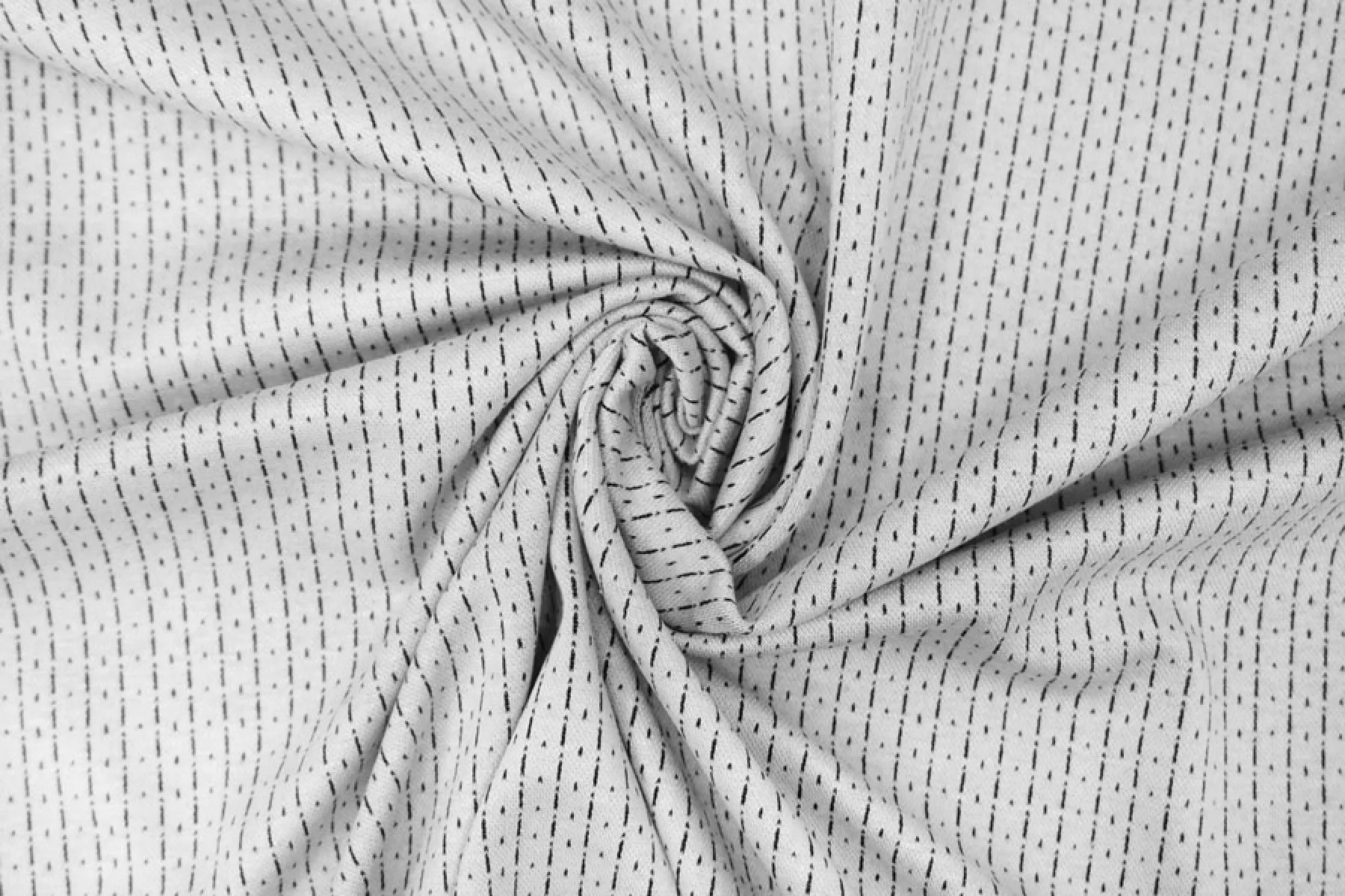 Классный трикотаж джерси из лиоцела светло-серого цвета в полоску. Приятный и мягкий. Пластичный Хорошо тянется, не мнется. Форму держит. Подойдет для пошива платья, лонгслива, юбки. Учитывайте возможную усадку.