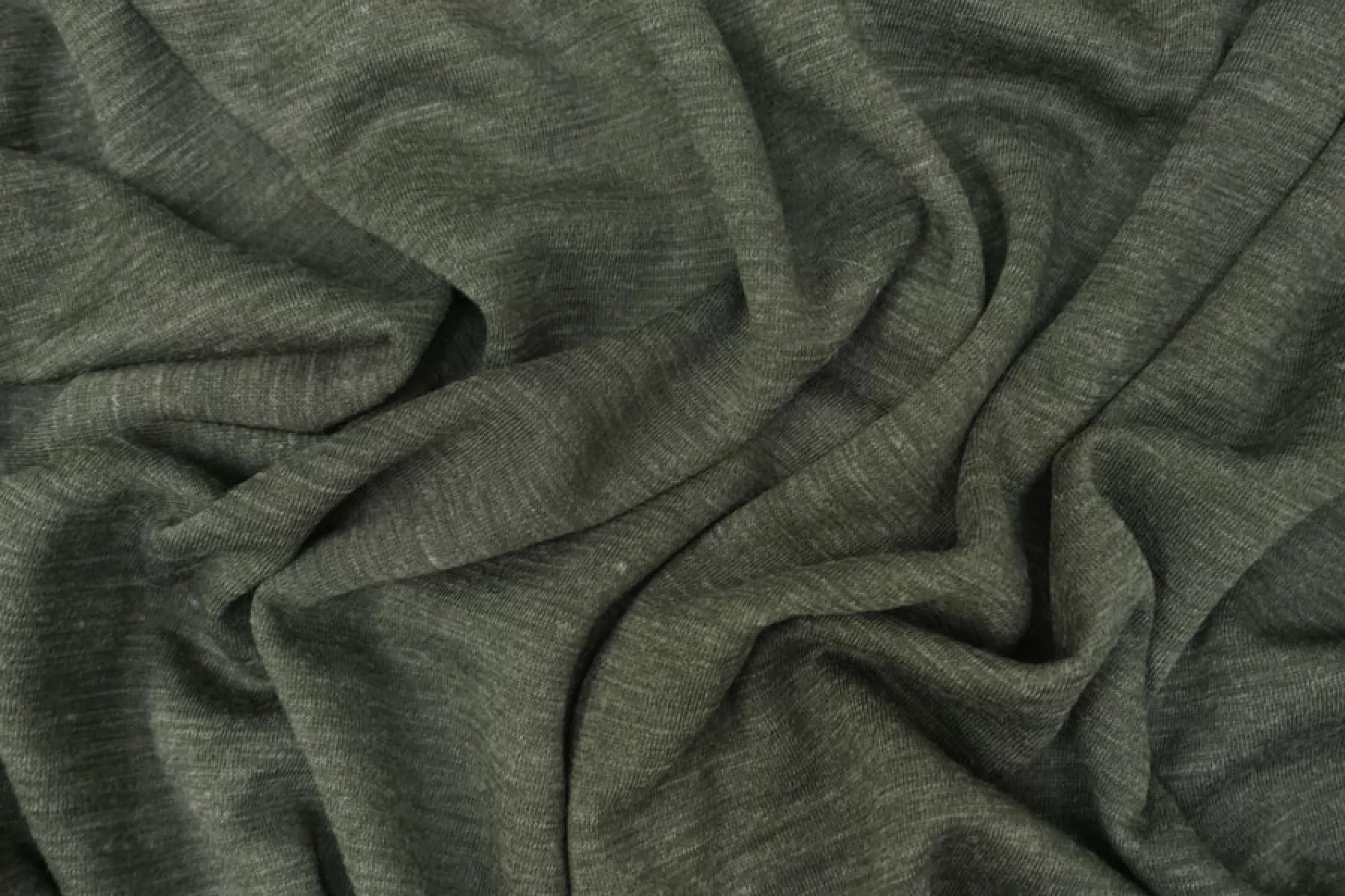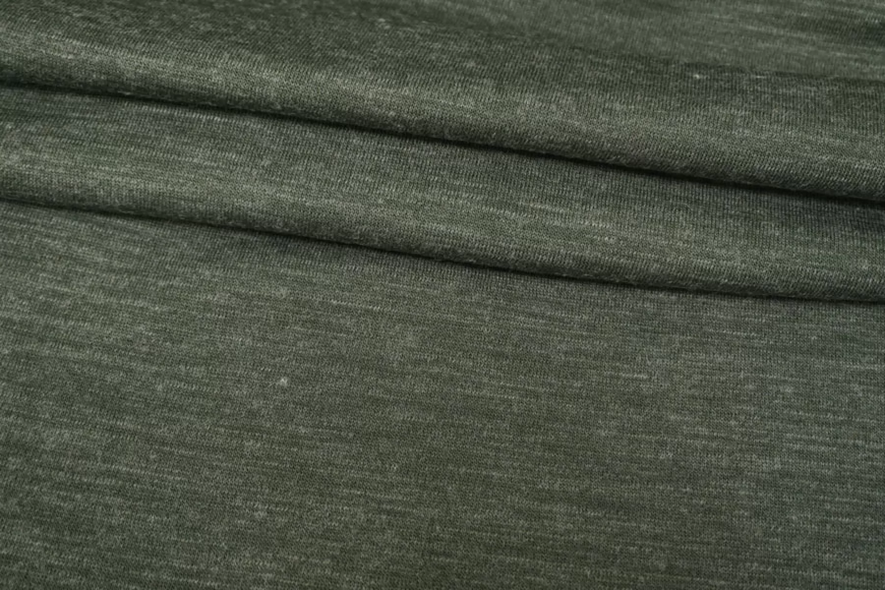 Прекрасный трикотаж джерси с добавлением шерсти приятного зеленого оттенка меланж. Мягкий и приятный наощупь. Не колется. Тянется. Виднеется силуэт на просвет. Форму держит. Пластичный. Подойдет для пошива костюма ,платья, мягкого жакета. Учитывайте возможную усадку. Уход деликатный.