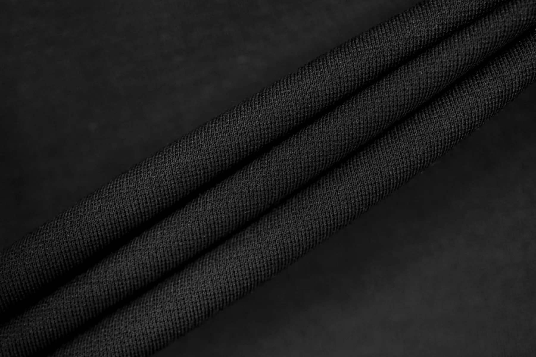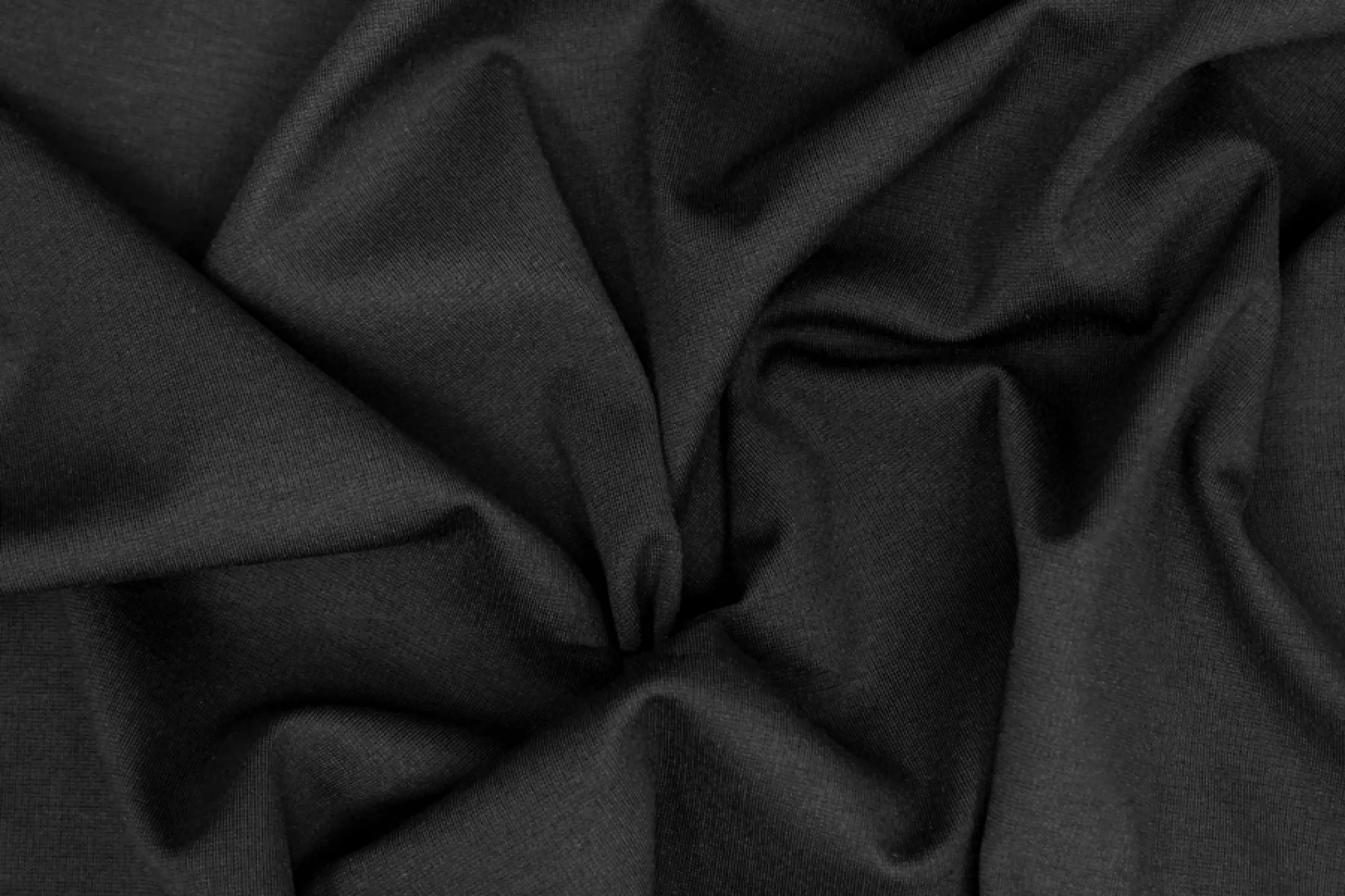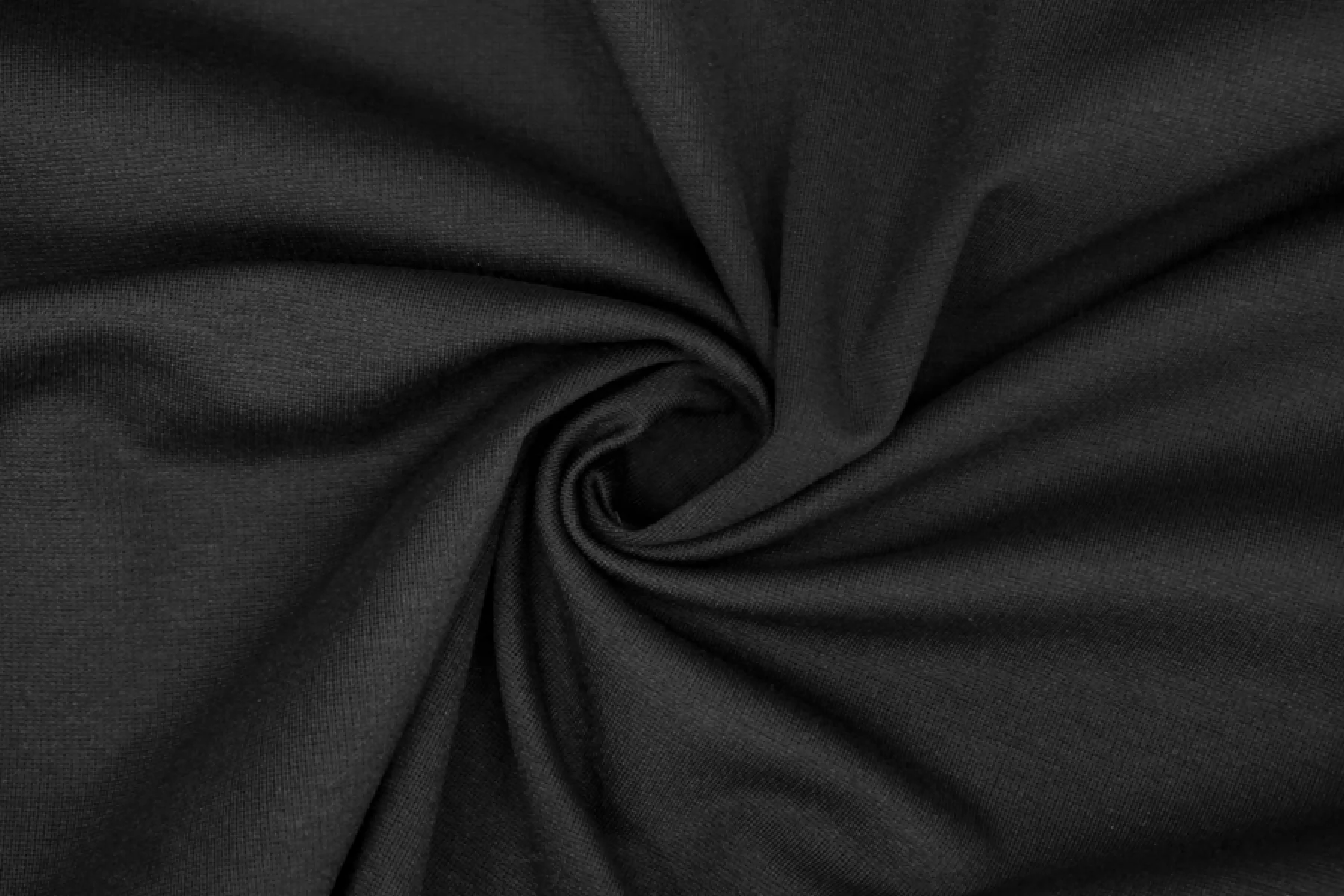 Классный вискозный джерси от бренда BALENCIAGA в классическом черном цвете. Плотный, гладкий. Немного упруго тянется за счет плетения и эластана. Слегка просвечивает силуэт при растяжении. Хорошо держит форму. Пластичный. Не мнется. Идеальный вариант на костюмы, платья, юбки. Учитывайте возможную усадку.