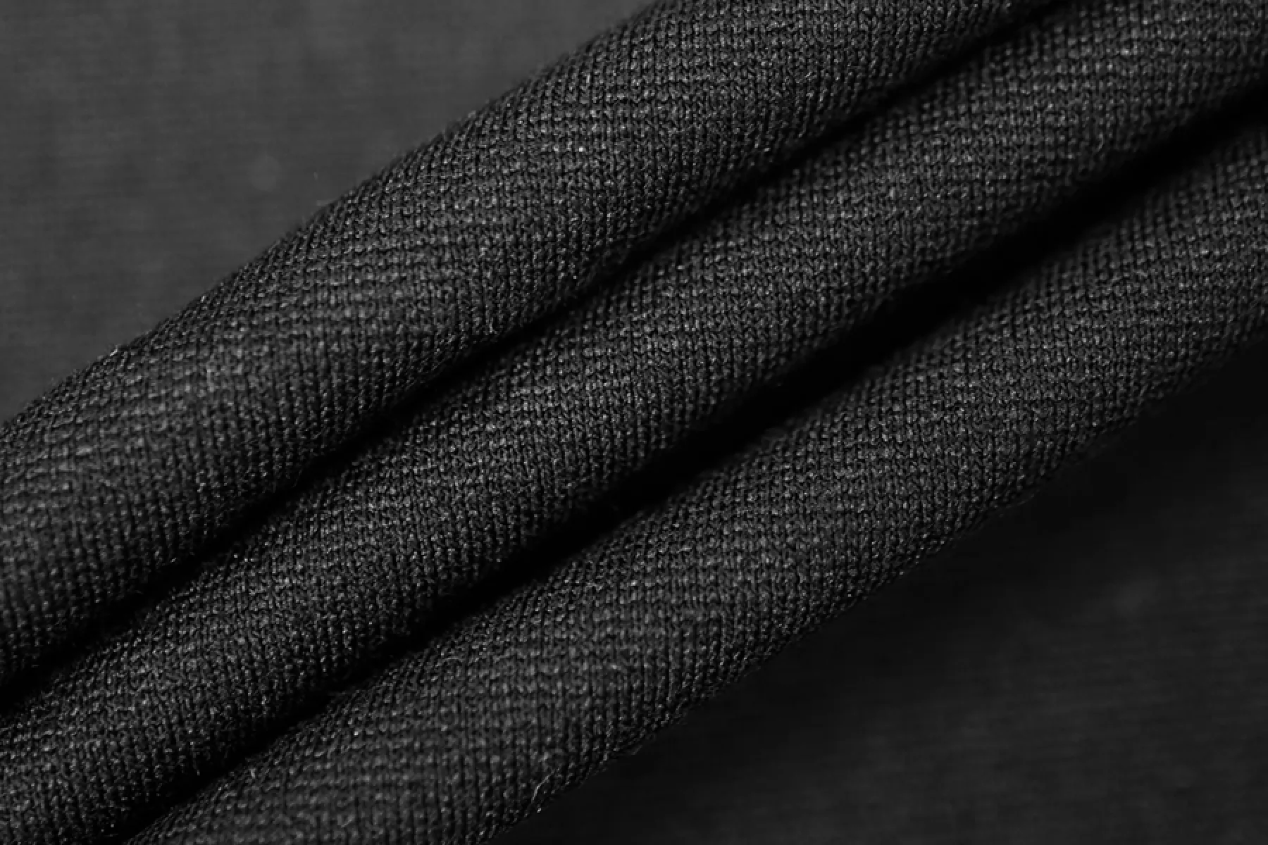 Прекрасный вискозный джерси с добавлением нейлона в черном цвете. С красивым лоском. Очень гладкий и мягкий наощупь. Хорошо тянется. Не просвечивает. Плотненький. Форму держит. Пластичный. Подойдет для пошива костюма ,платья, мягкого жакета. Учитывайте возможную усадку. Уход деликатный.