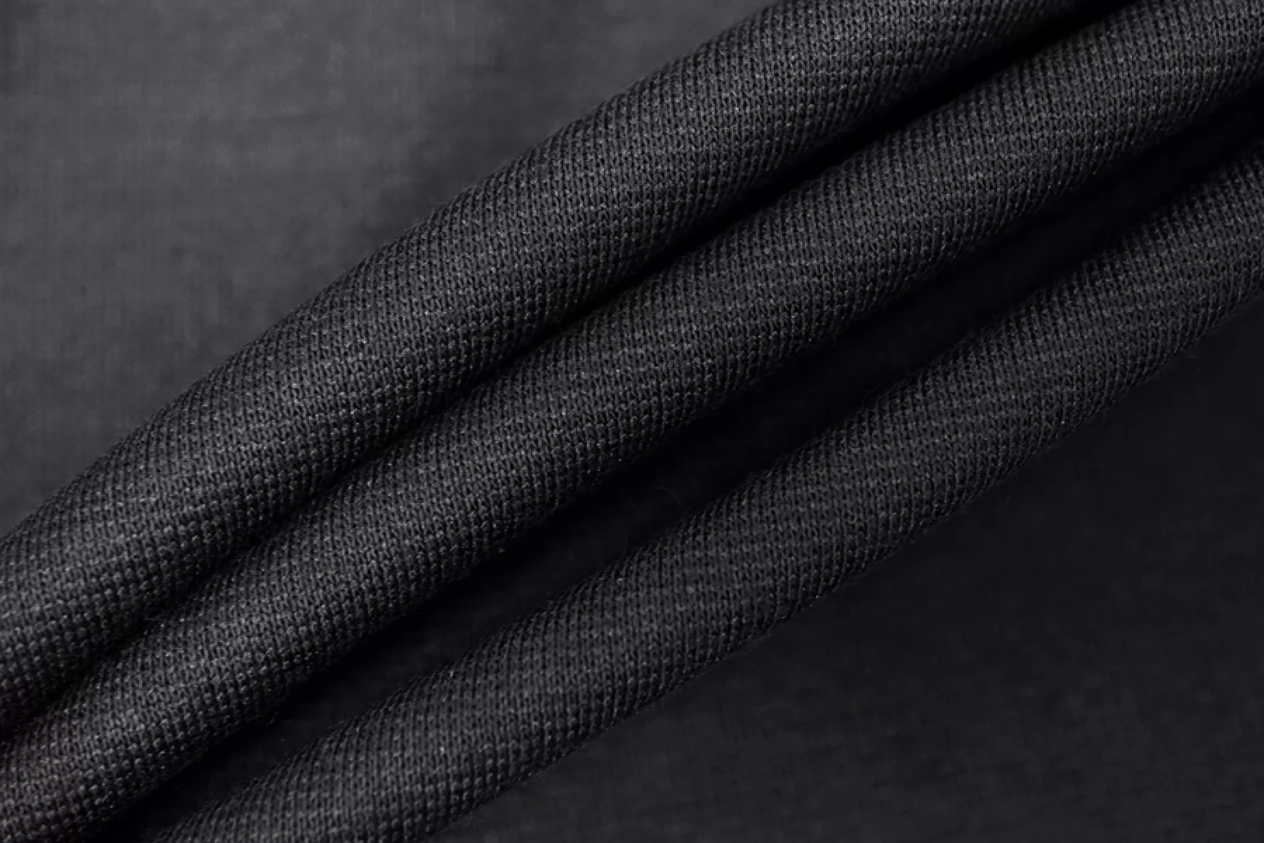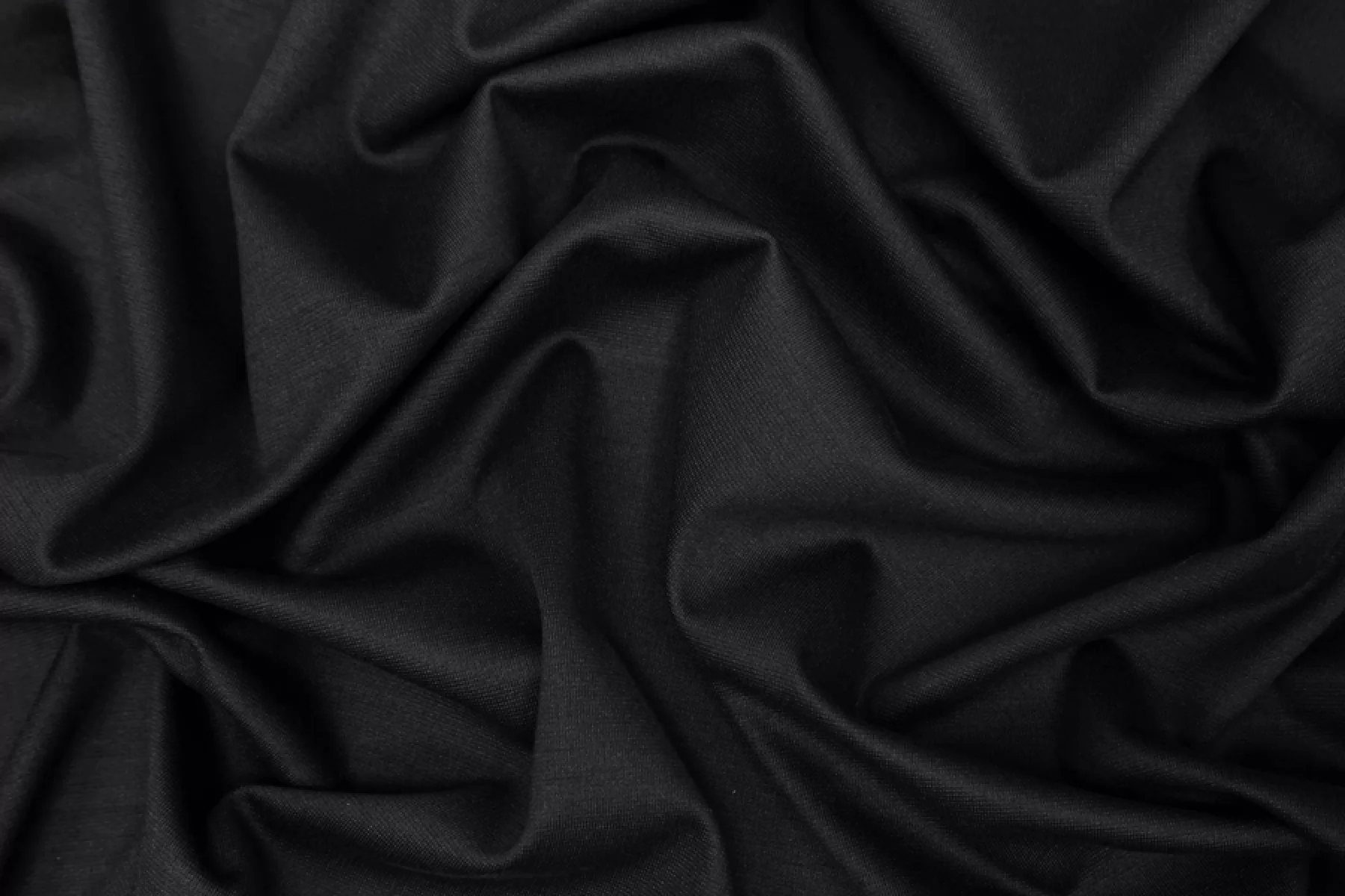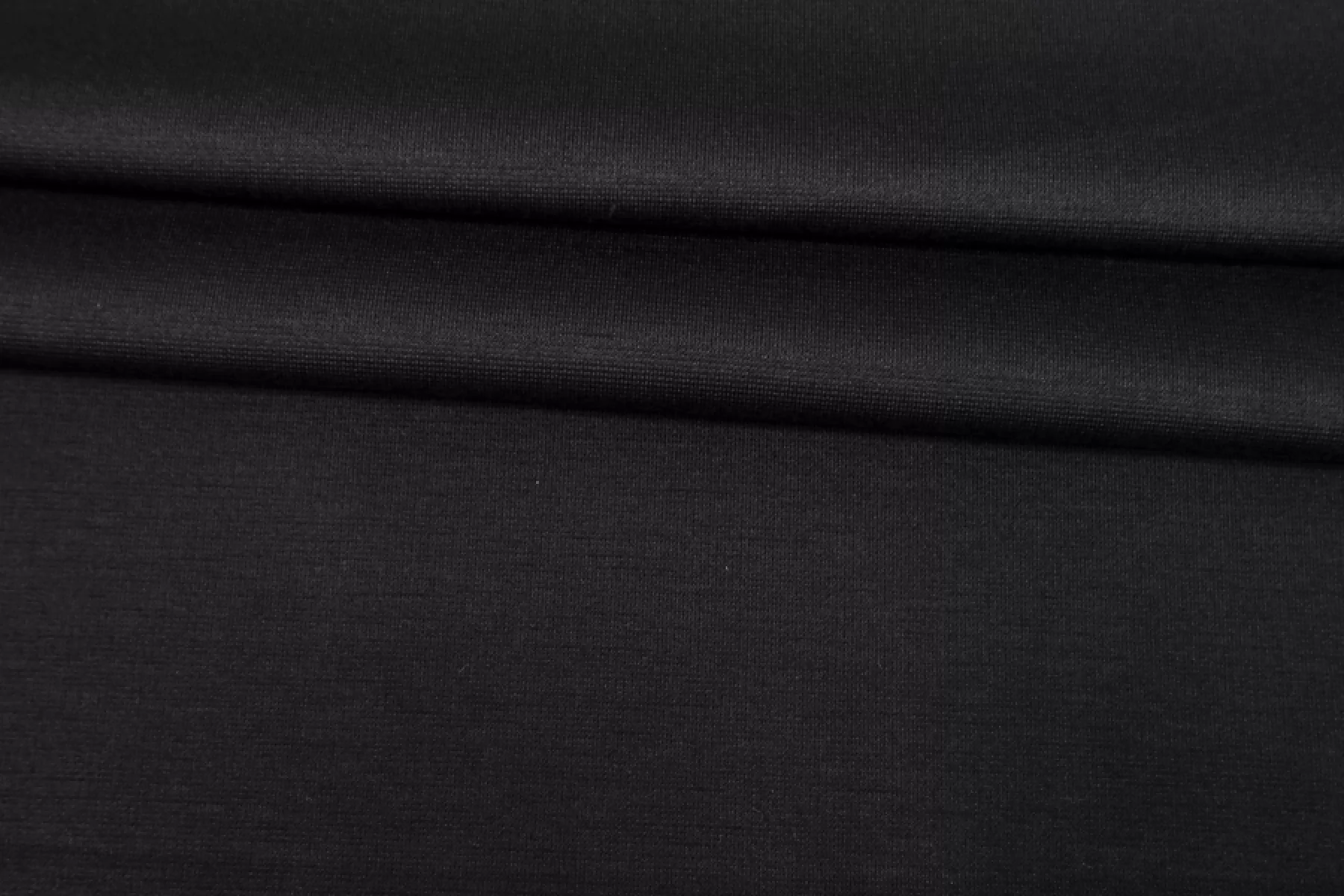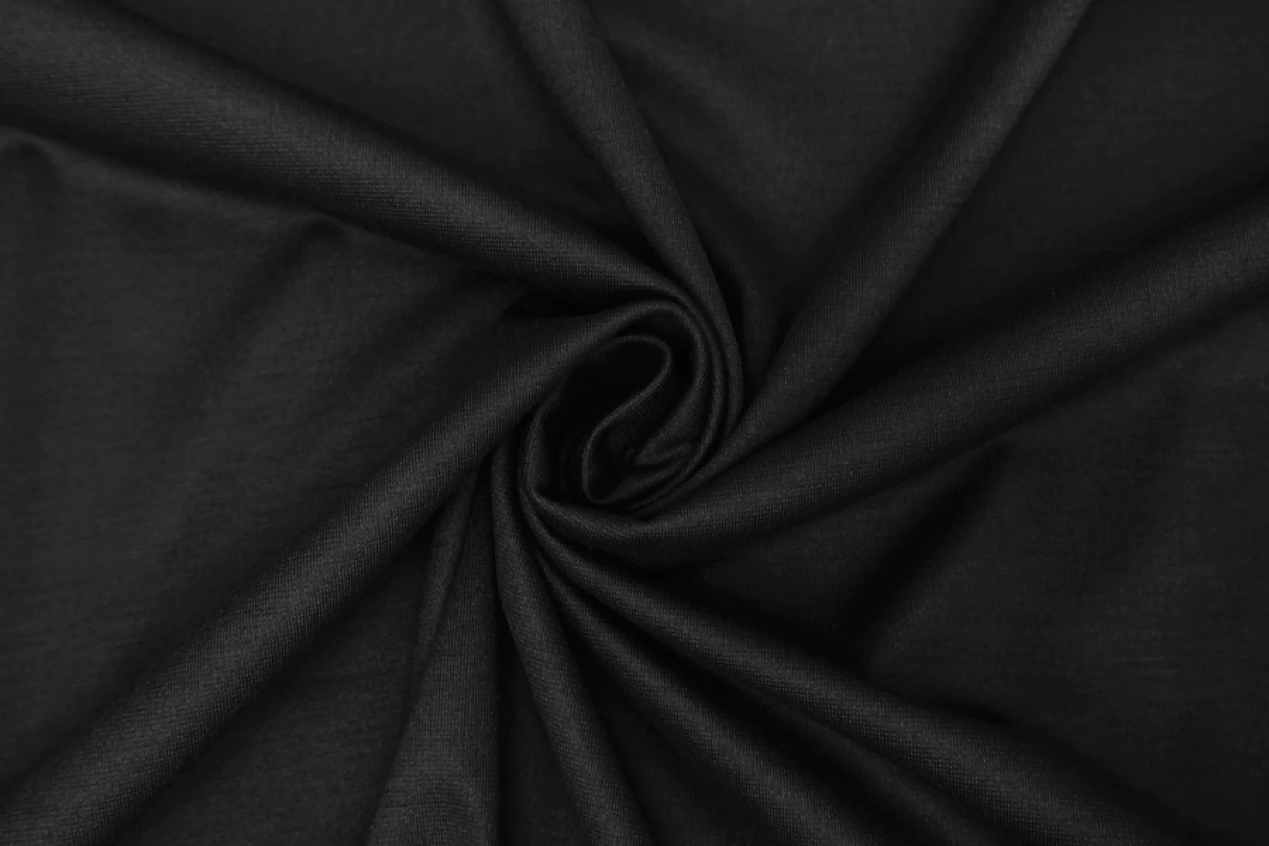 Вискозный джерси FENDI черного оттенка. Тактильно гладкий, плотный. Пластичный. Несильно сминается, но восстанавливается практически полностью. Упруго, тянется за счет плетения и эластана. Не просвечивает, но если смотреть прямо на просвет, едва заметен контур силуэта. Красив в пластике. Хорошо драпируется и немного держит форму. Подойдет на платья, кофты, юбки, брюки на резинке и не только. Обязательно учитывайте усадку 5-10%.