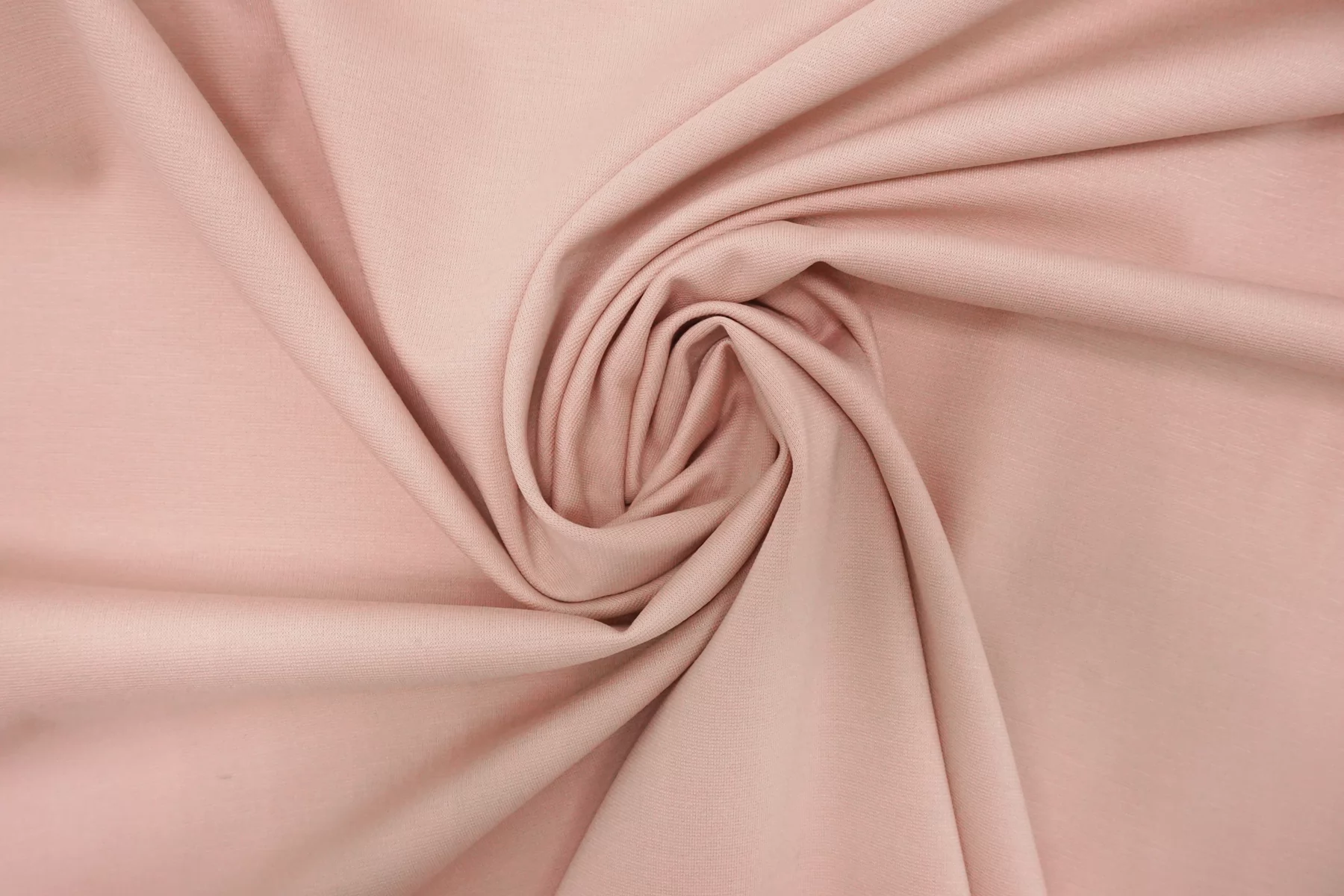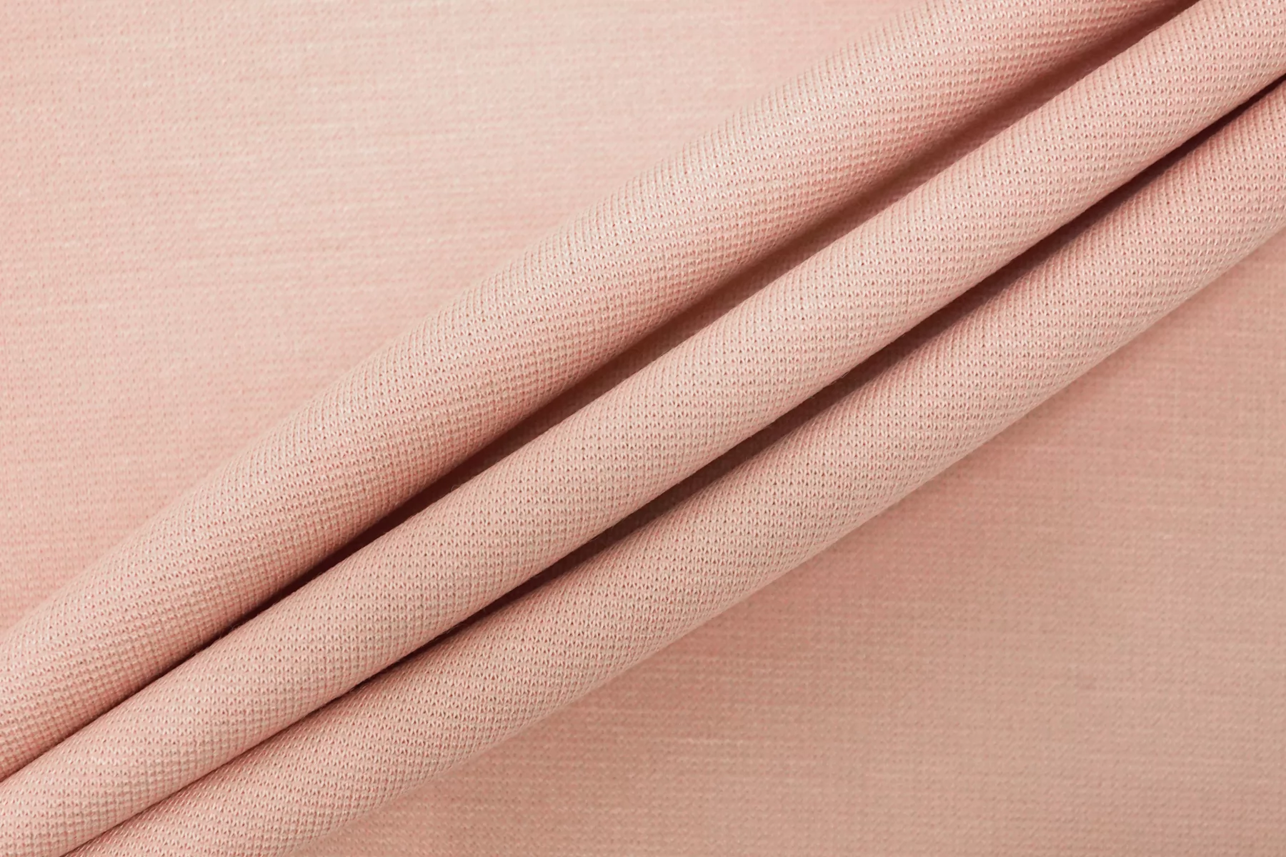 Классный вискозный джерси от Fendi, в нежном персиковом оттенке. Материал тактильно очень приятный и мягкий, тонкий, но при этом плотный и упругий. С мягким лоском. Не просвечивает. Хорошо драпируется, слегка держит форму. Добавление нейлона прибавит износостойкости, а эластан позволит создать изделие, которое идеально сядет по фигуре. Немного сминается, но восстанавливается. Отлично подойдет на платья, юбки, кардиганы и не только. Обязательно учитывайте усадку 5-10%.