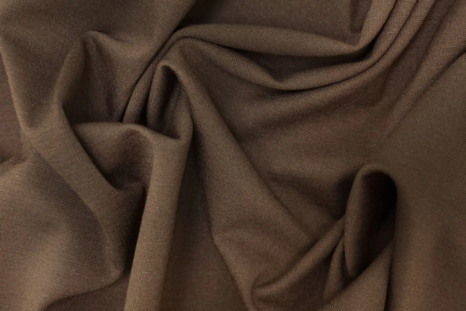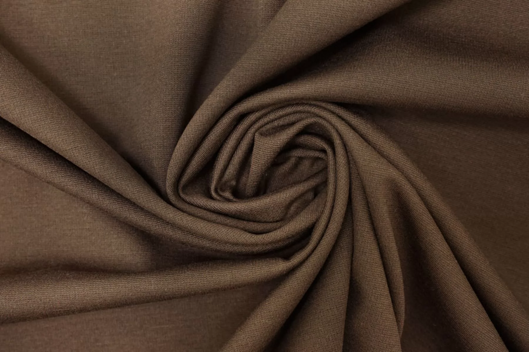 Классный тонкий вискозный трикотаж джерси, красивого приглушённого коричневого цвета. Гладкий, мягкий, тактильно очень приятный. Эластичный, упругий, пластичный, немного просвечивает при растяжении. Подойдет для пошива платья, юбки, водолазки.