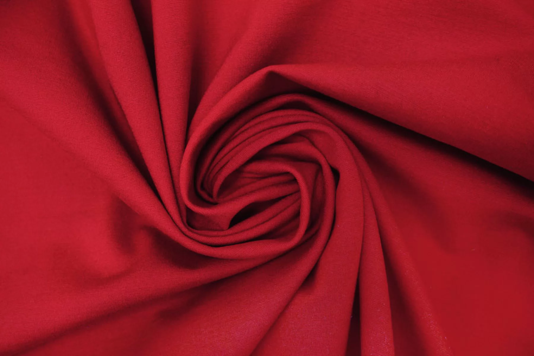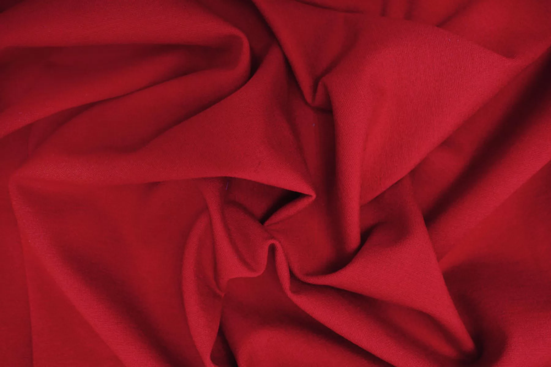 Классный тонкий вискозный трикотаж джерси, насыщенного красного цвета. Гладкий, мягкий, тактильно очень приятный. Эластичный, упругий, пластичный, немного просвечивает при растяжении. Подойдет для пошива платья, юбки, водолазки.