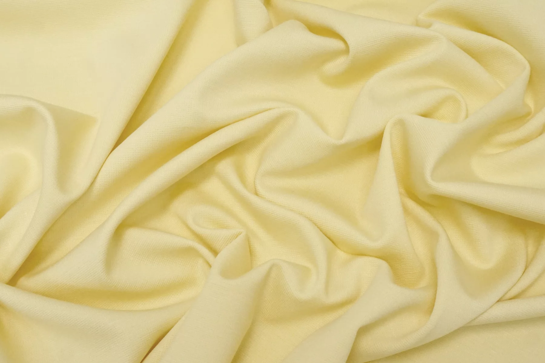 Классный вискозный джерси от бренда Monnalisa, в популярном оттенке жёлтого: сливочное масло. Материал тактильно очень приятный и мягкий, тонкий, но при этом плотный и упругий. С мягким лоском. Не просвечивает. Хорошо драпируется, форму держит минимально. Добавление нейлона прибавит износостойкости, а эластан позволит создать изделие, которое идеально сядет по фигуре. Немного сминается, частично восстанавливается. Отлично подойдет на платья, юбки, кардиганы и не только. Обязательно учитывайте усадку 5-10%.