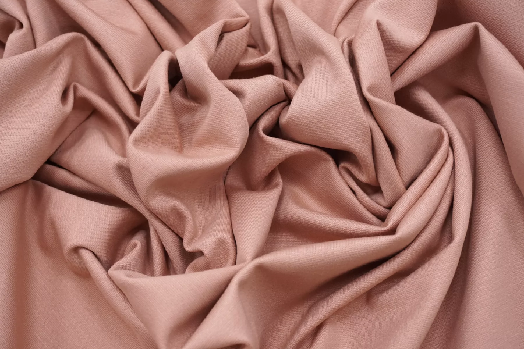Трикотаж-джерси вискозный в приглушенно-персиковом цвете. Эластичный, пластичный, плотный, не просвечивает. Подойдет для пошива платья, юбки, топа, кофты или кардигана.