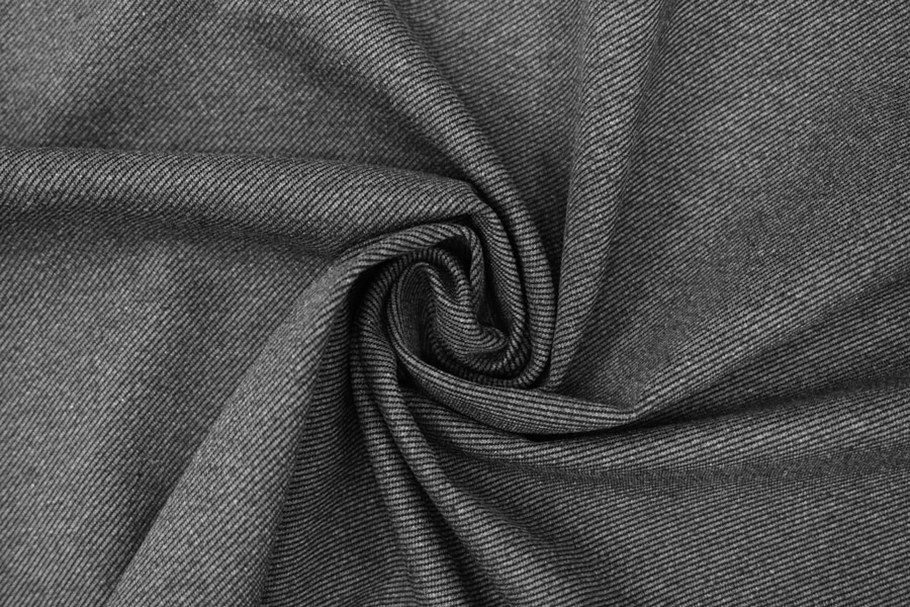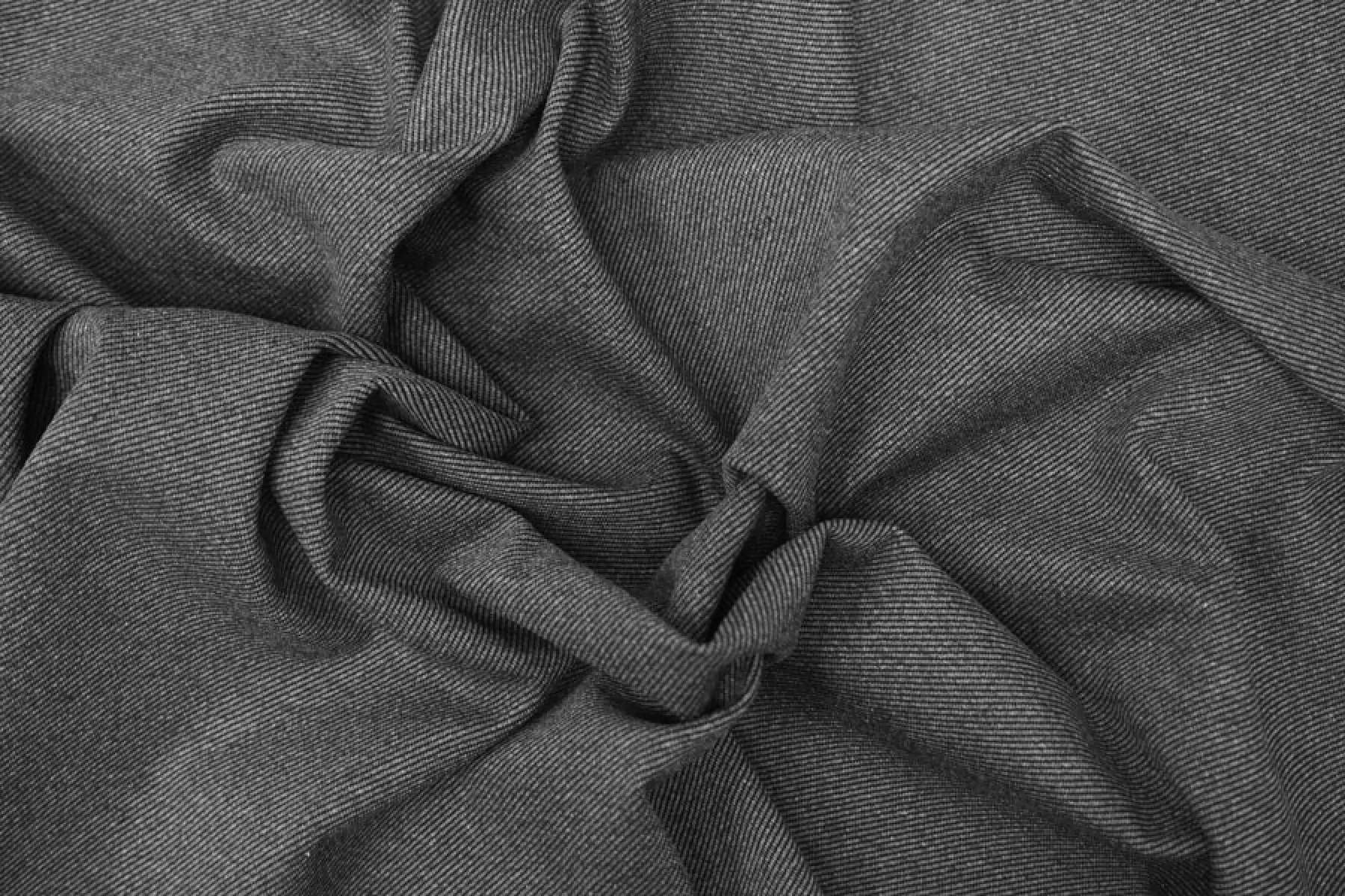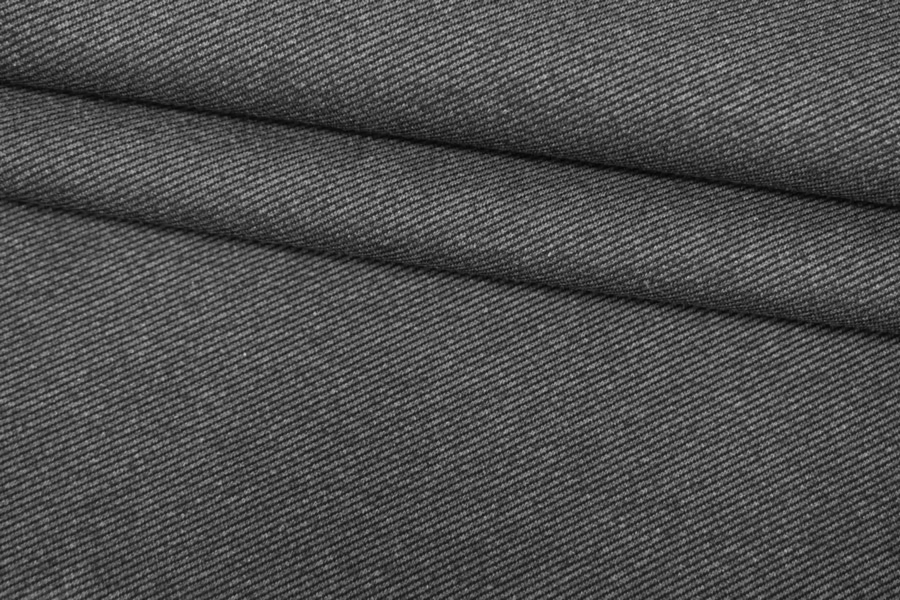Классный хлопковый плотный джерси в диагональ темно-серого цвета. Жестковатый наощупь, чувствуется фактурность плетения. Формодержащий, плотный. С красивым легким лоском. Хорошо тянется. Не просвечивает. Подойдет для пошива костюма ,платья, жакета. Учитывайте возможную усадку. Уход деликатный.