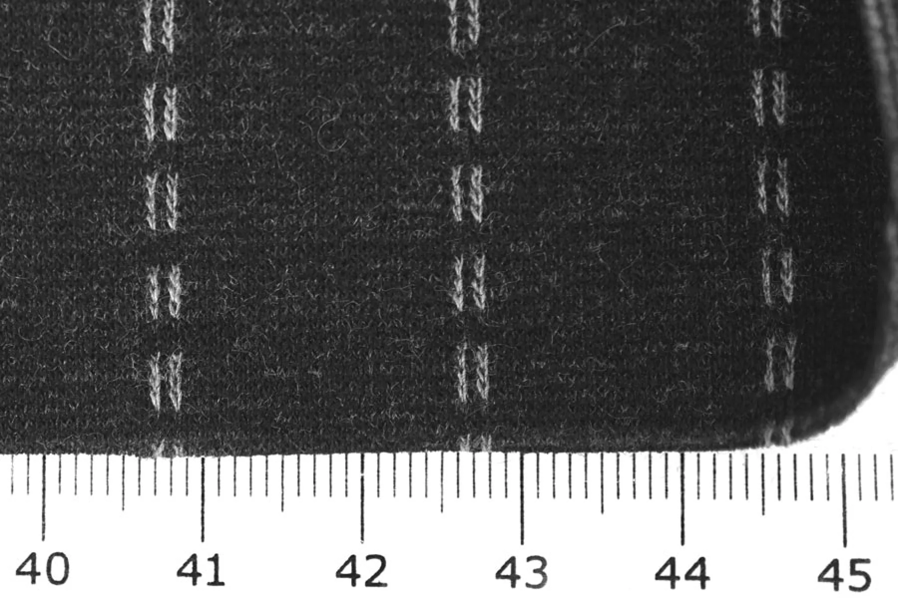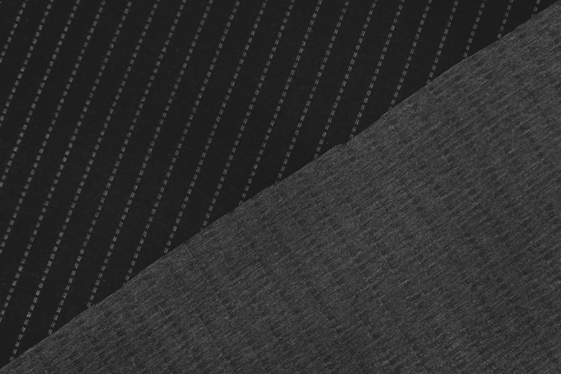 Классный вискозный трикотаж джерси с добавлением шерсти темно серого о ттенка в широкую полоску. Приятный и мягкий, суховатый наощупь, чувствуется, что шерсть. Не колется. Не толстый. Хорошо тянется, не мнется. Форму держит. Подойдет для пошива платья, лонгслива, юбки. Учитывайте возможную усадку. Уход деликатный.