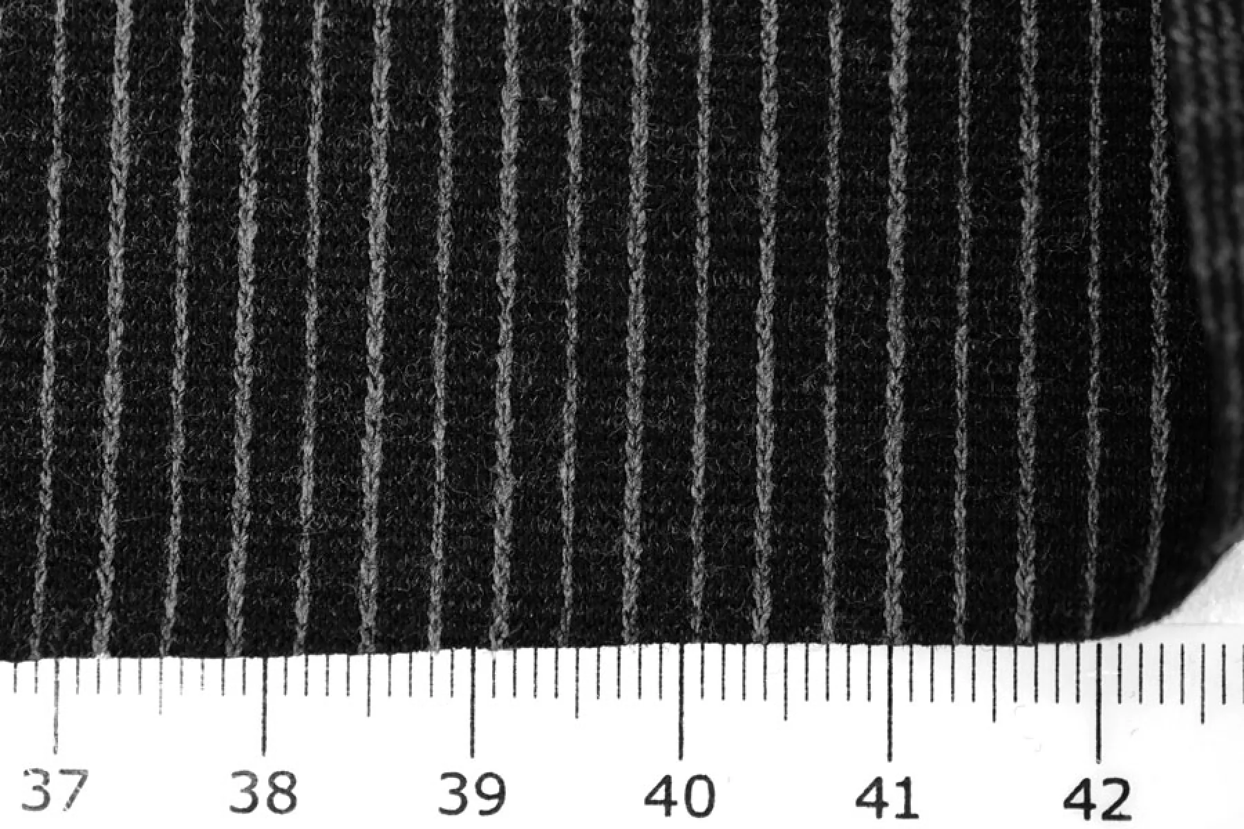 Классный вискозный трикотаж джерси с добавлением шерсти качества virgin темно серого оттенка в узкую полоску. Приятный и мягкий, суховатый наощупь, чувствуется, что шерсть. Не колется. Не толстый. Хорошо тянется, не мнется. Форму держит. Подойдет для пошива платья, лонгслива, юбки. Учитывайте возможную усадку. Уход деликатный.
