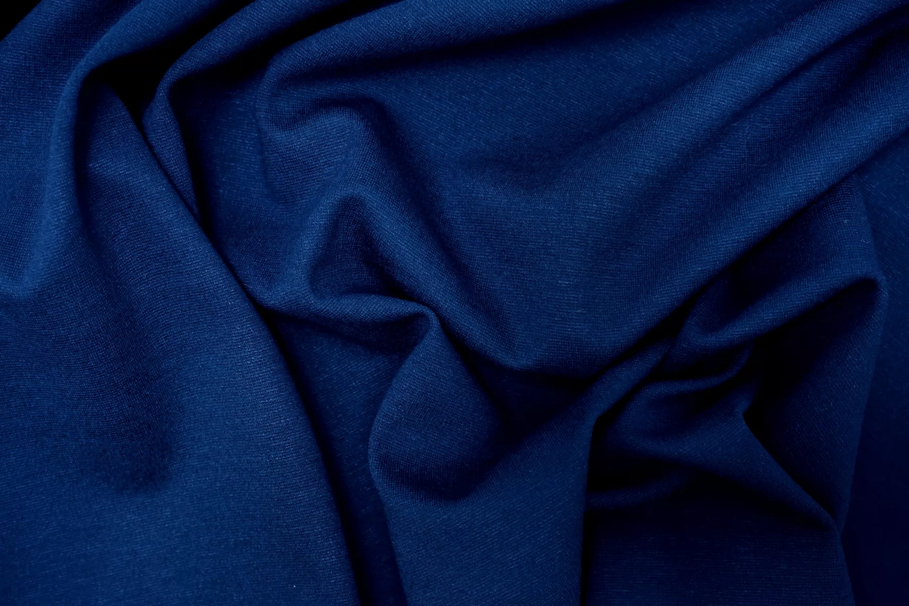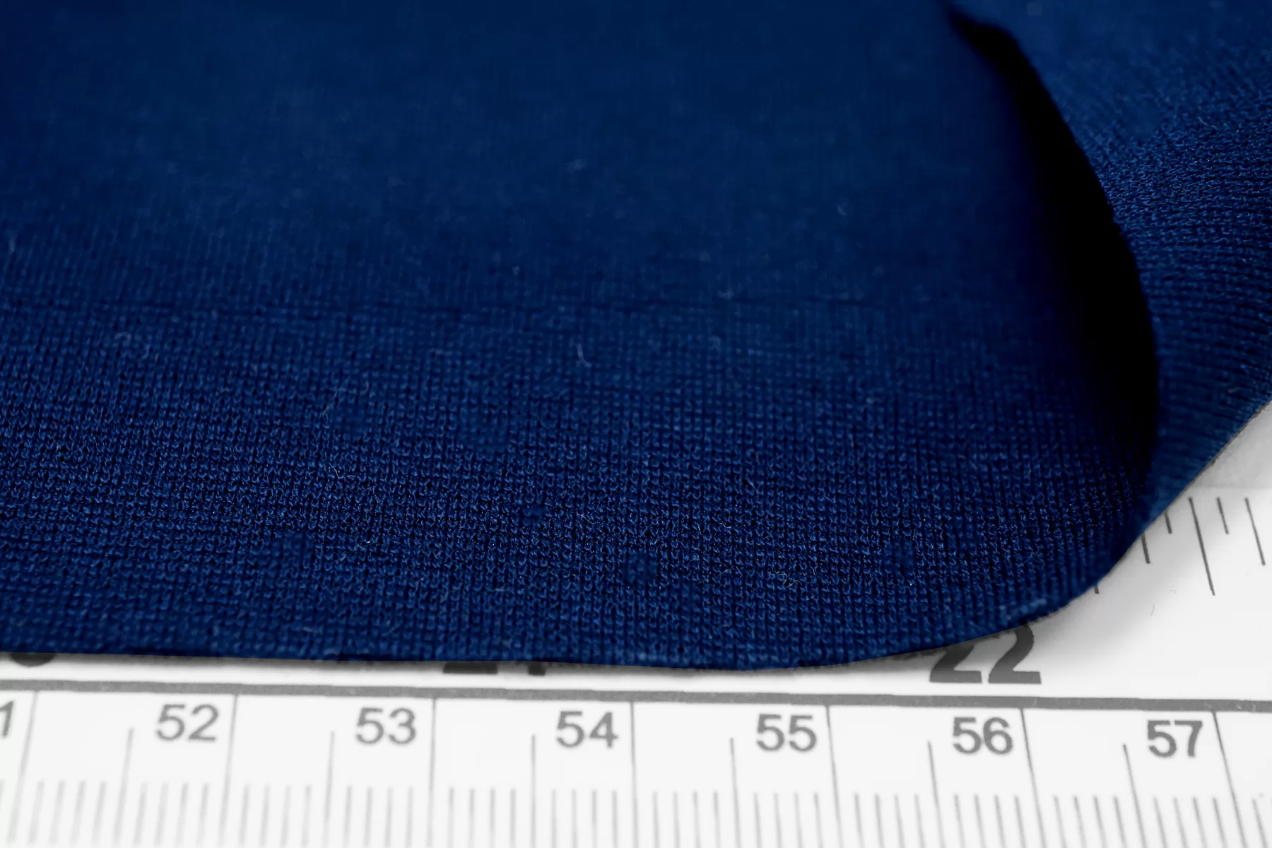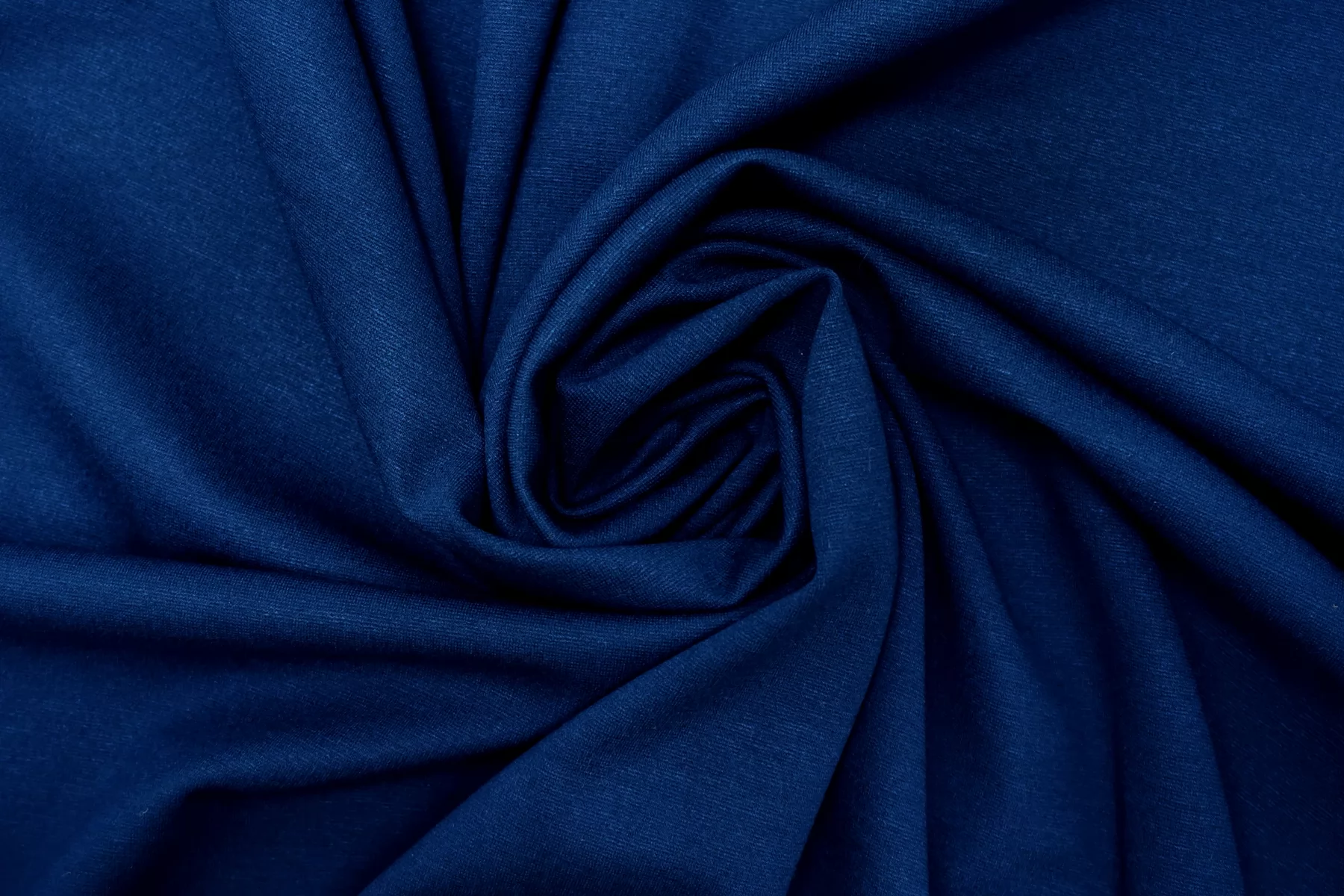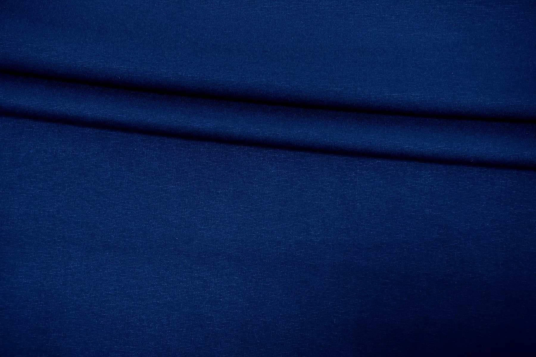 ВНИМАНИЕ!! Присутствуют горизонтальные полосы см. фото. Классный вискозный джерси в красивом, насыщенном тёмно-синем оттенке. Материал тактильно очень приятный и мягкий, тонкий, но при этом плотный и упругий. Не просвечивает. Хорошо драпируется, слегка держит форму. Добавление нейлона прибавит износостойкости, а эластан позволит создать изделие, которое идеально сядет по фигуре. Немного сминается, но восстанавливается. Отлично подойдет на платья, юбки, кардиганы и не только. Обязательно учитывайте усадку 5-10%.