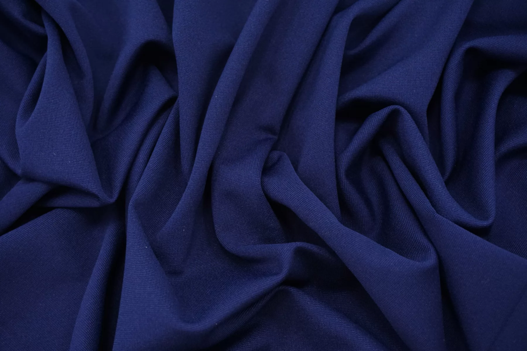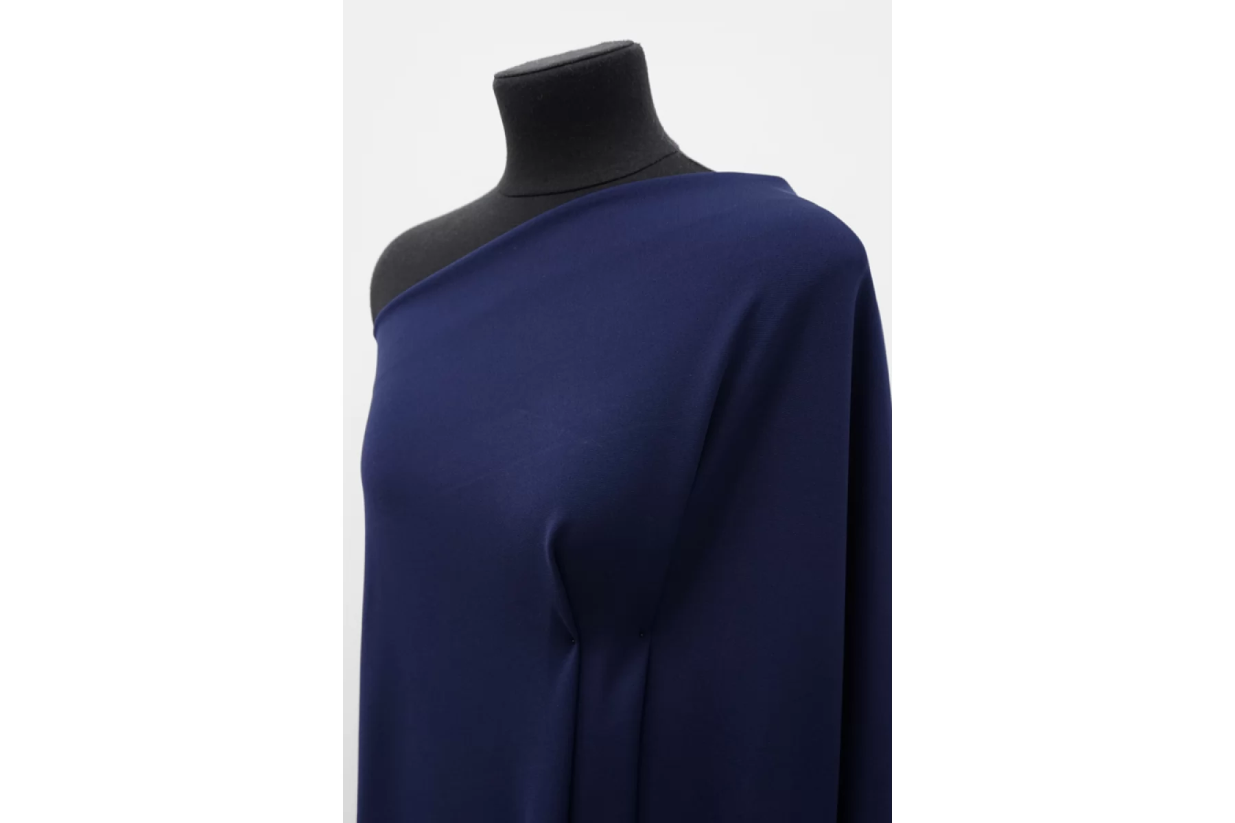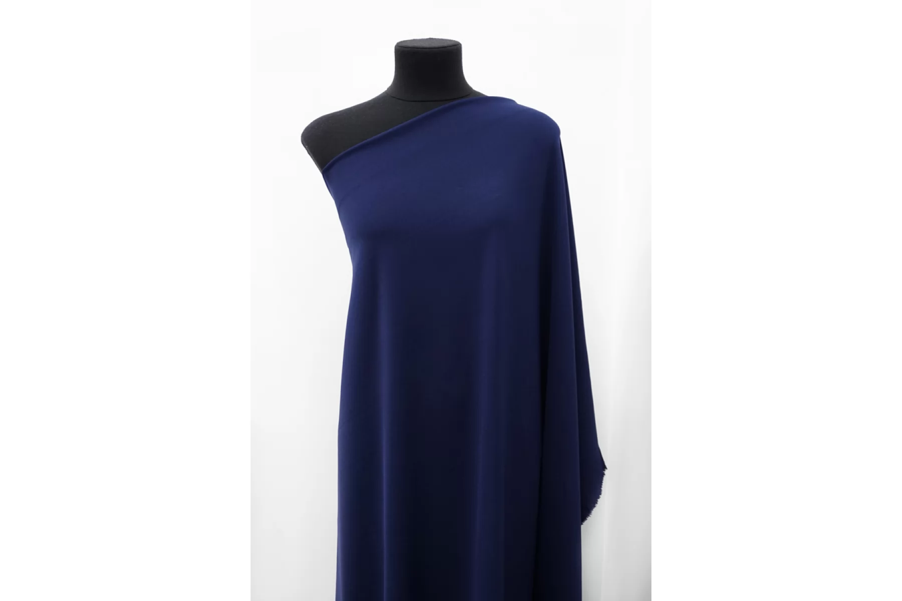Трикотаж-джерси холодный вискозный от Love Moschino в темно-синем цвете. Эластичный, пластичный, достаточно плотный, не просвечивает. Подойдет для пошива платья, юбки, топа, кофты или кардигана.