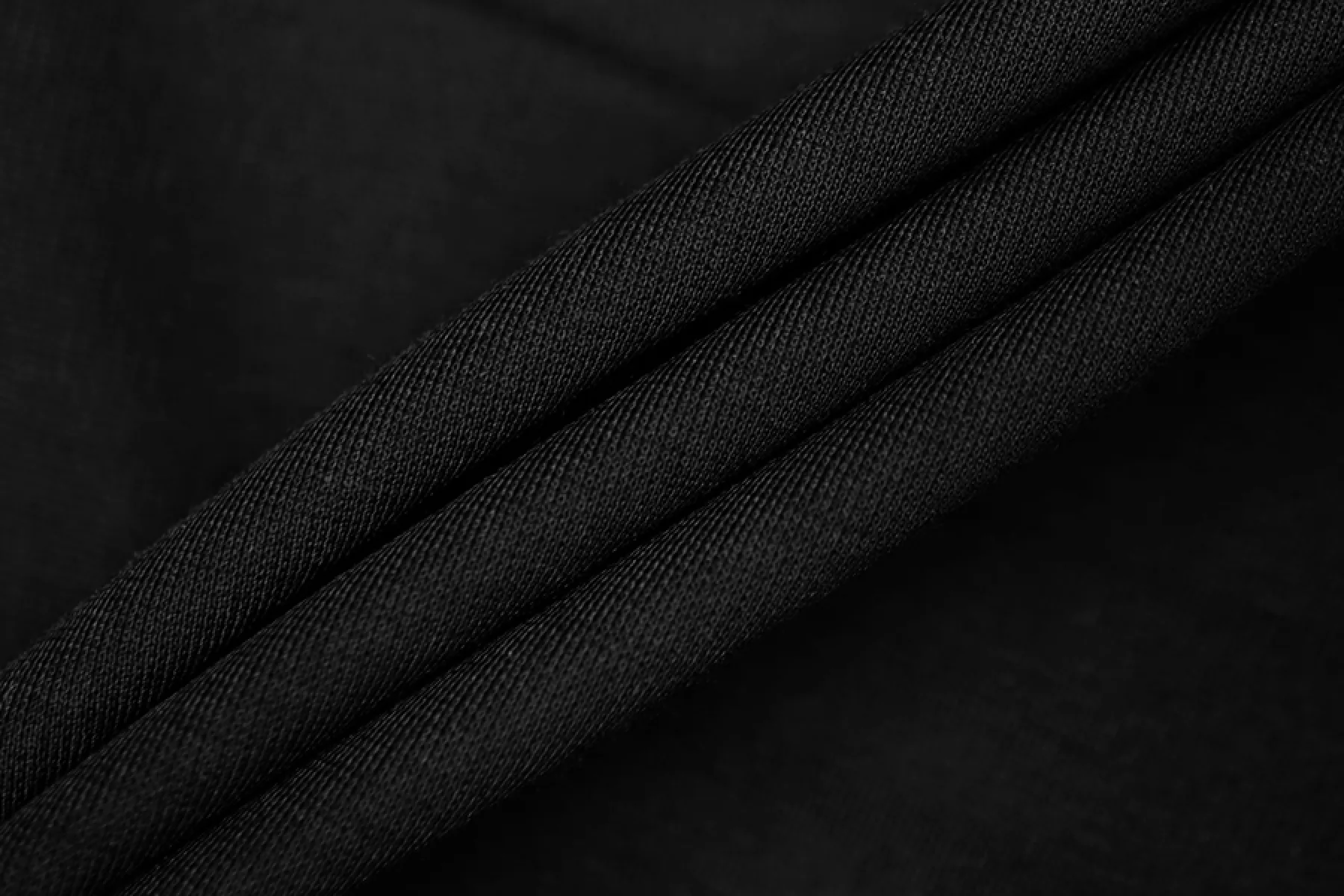 Классный тонкий вискозный трикотаж джерси в классическом черном цвете. Гладкий, мягкий, тактильно очень приятный. Эластичный, упругий, пластичный, просвечивает при растяжении. Подойдет для пошива платья, юбки, водолазки.