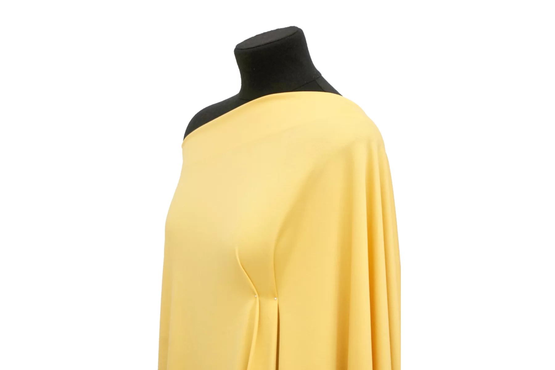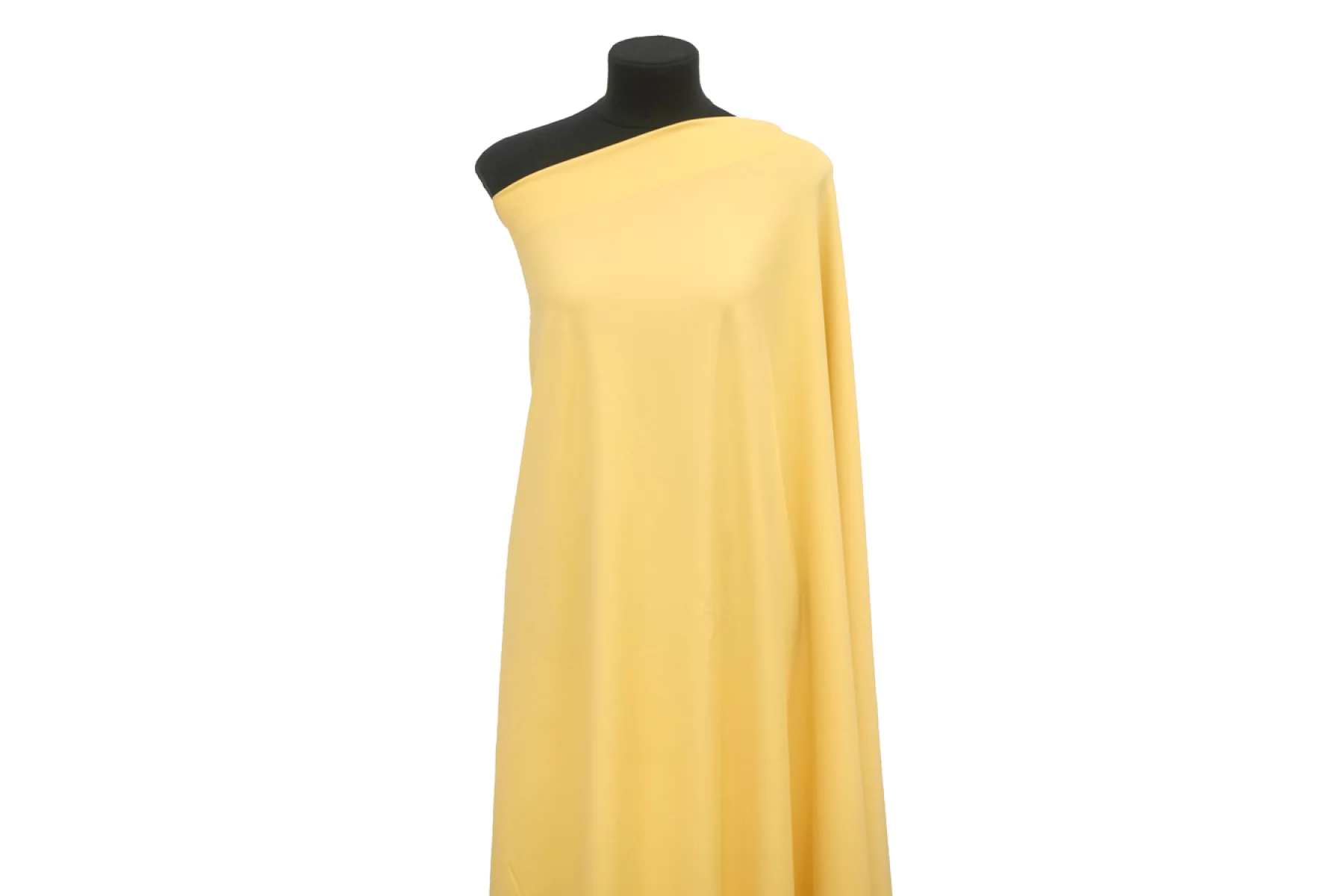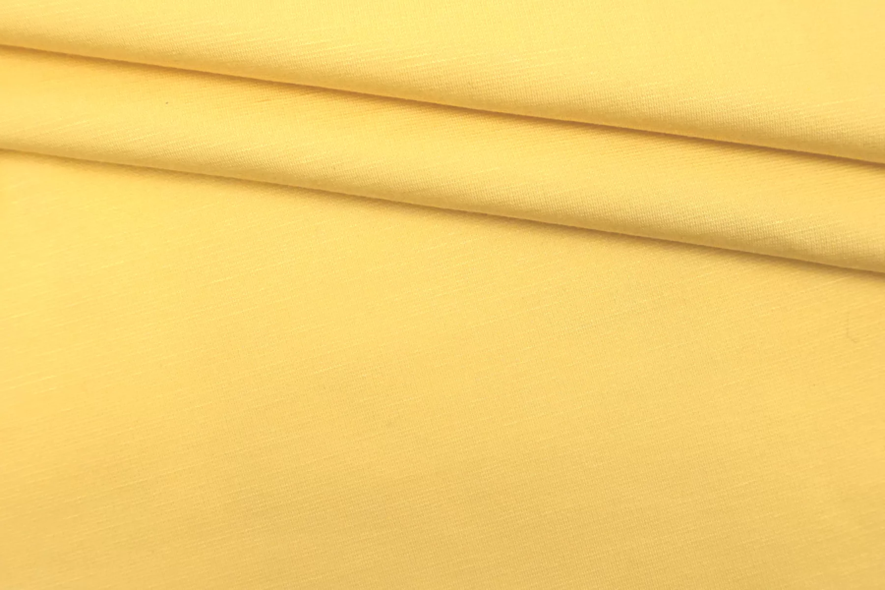 Классный вискозный джерси приятного желтого оттенка. Материал тактильно очень приятный и мягкий, тонкий, но при этом плотный и упругий. Не просвечивает. Хорошо драпируется, слегка держит форму. Обладает красивым легким лоском. Добавление полиэстера прибавит износостойкости, а эластан позволит создать изделие, которое идеально сядет по фигуре. Сминается, но восстанавливается. Отлично подойдет на платья, юбки, кардиганы и не только. Обязательно учитывайте усадку 5-10%.