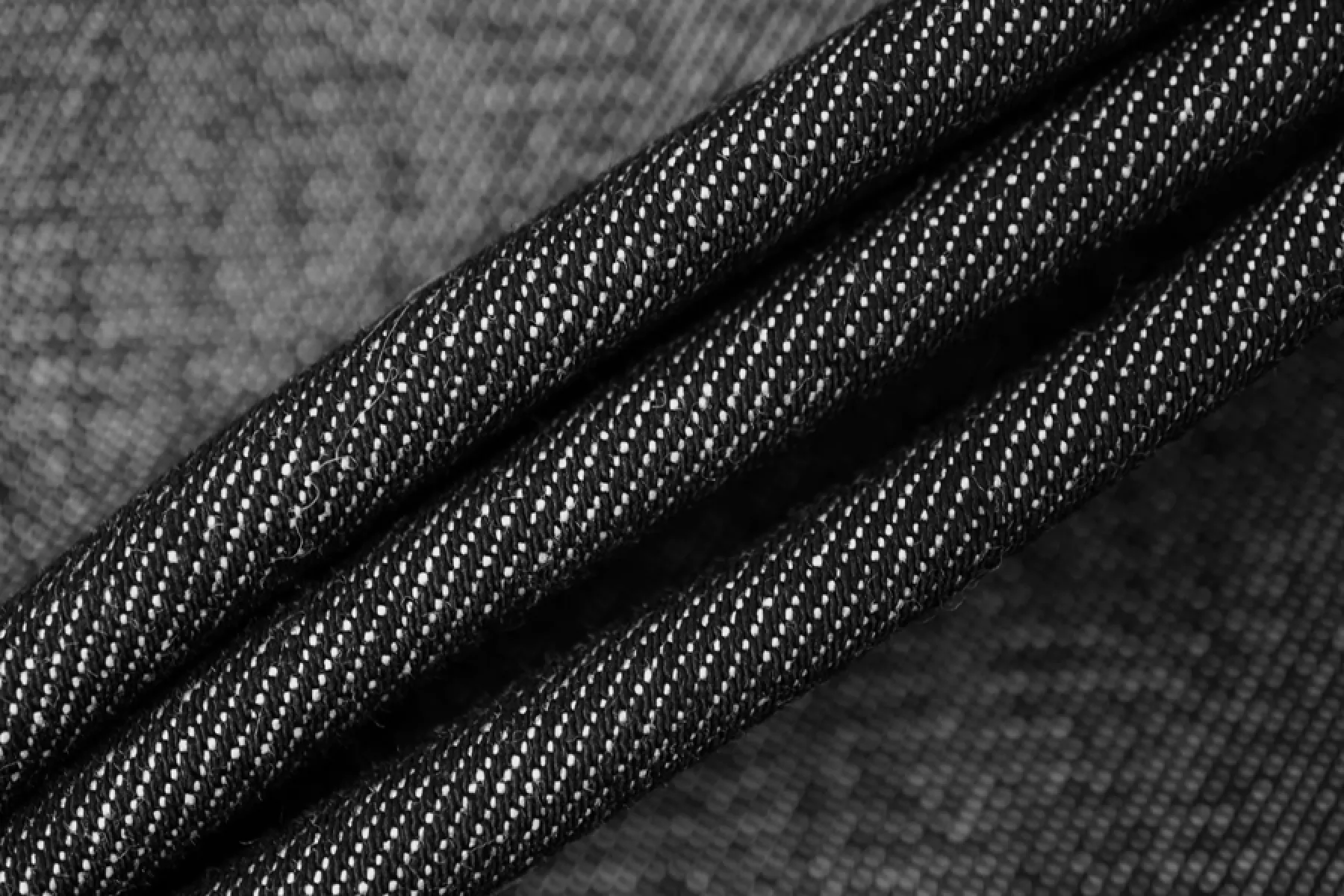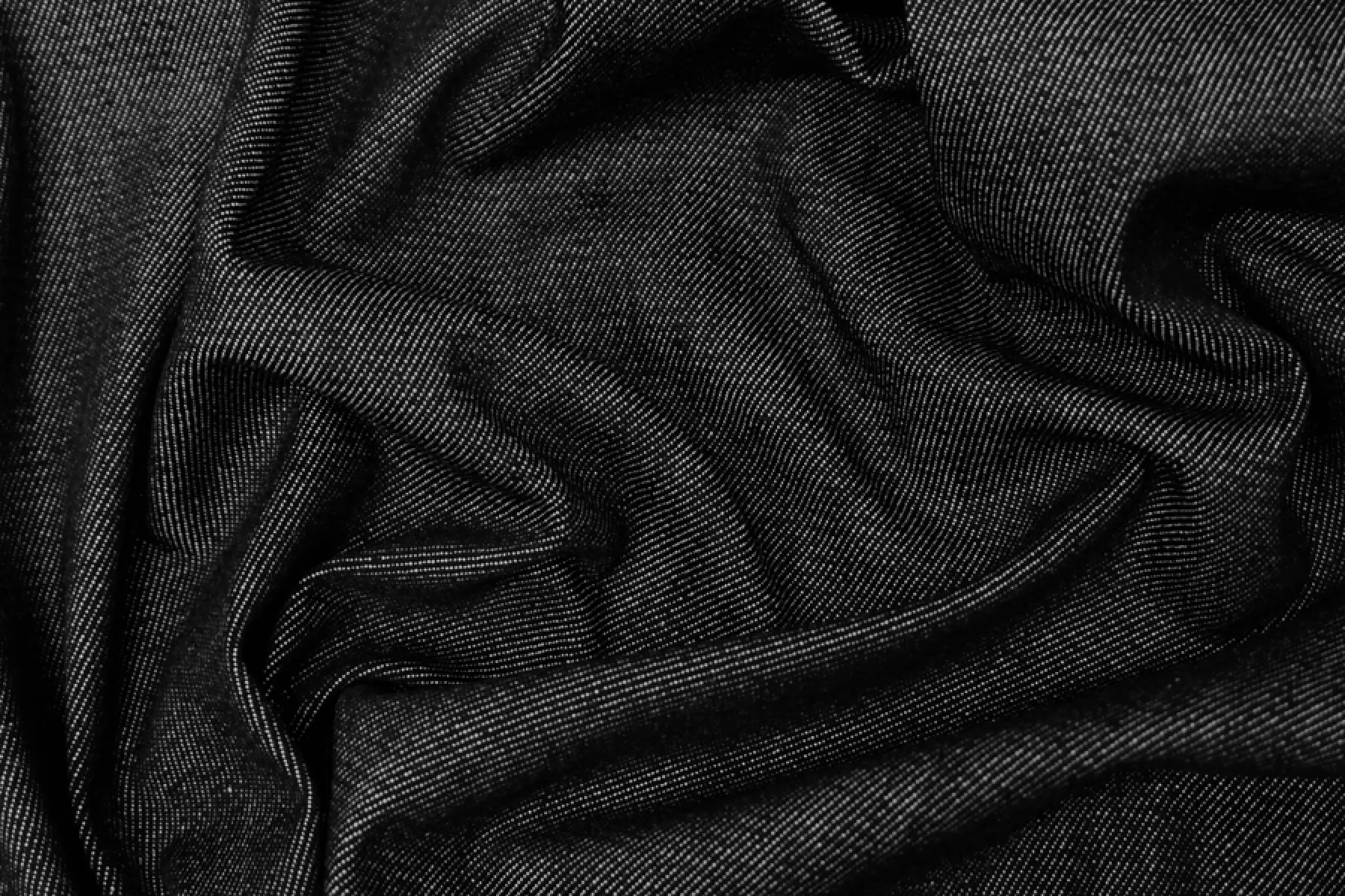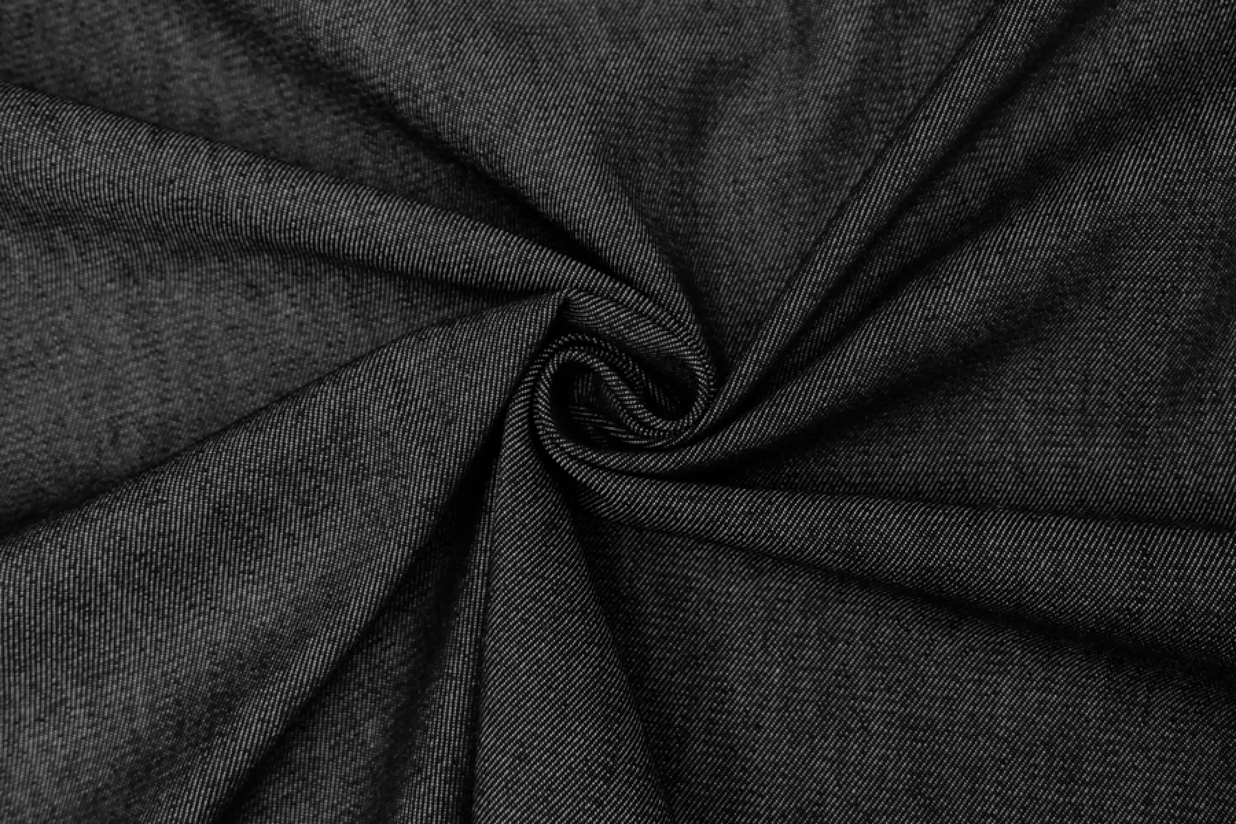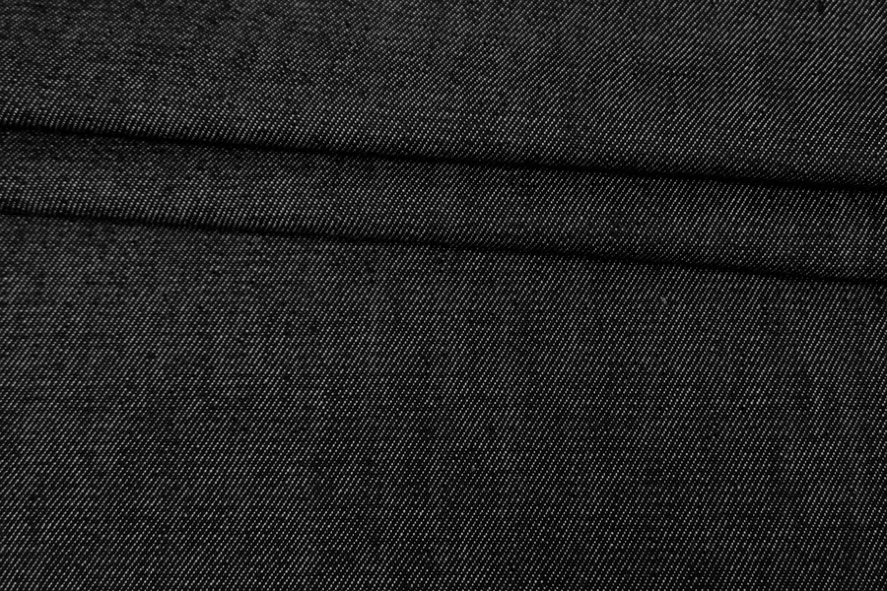 Хлопковая итальянская джинса диагонального переплетения черного цвета с переплетением белых нитей. Материал плотный, жесткий, чувствуется фактура наощупь. Хорошо тянется. Немного пластичный и держит форму. Не просвечивает. Сминается, но восстанавливаются. Отличный вариант на куртки, жакеты, брюки. Учитывайте усадку.