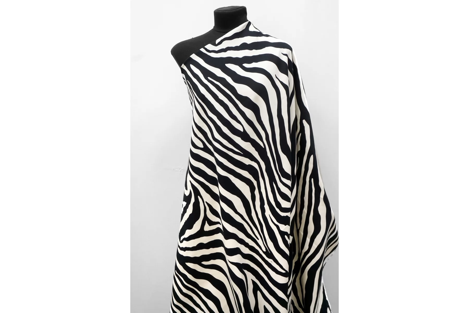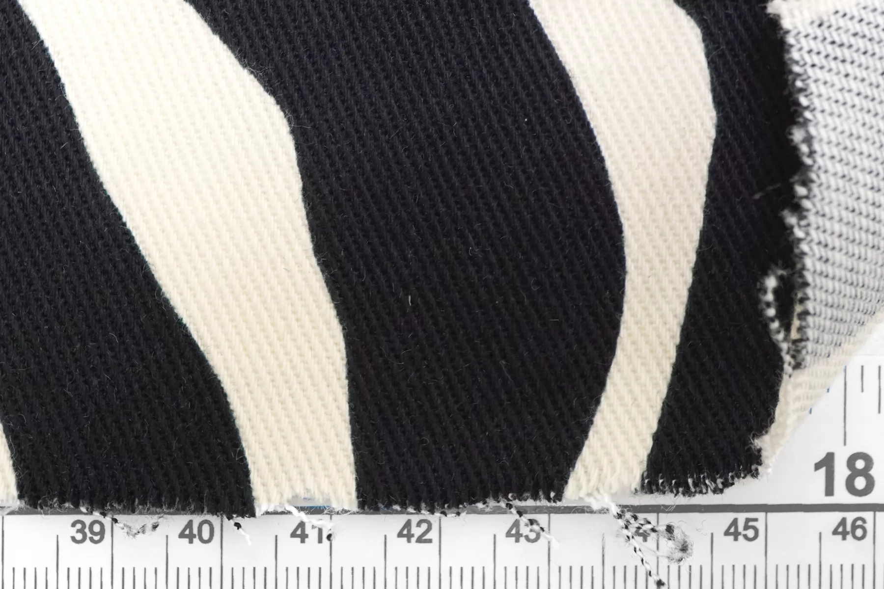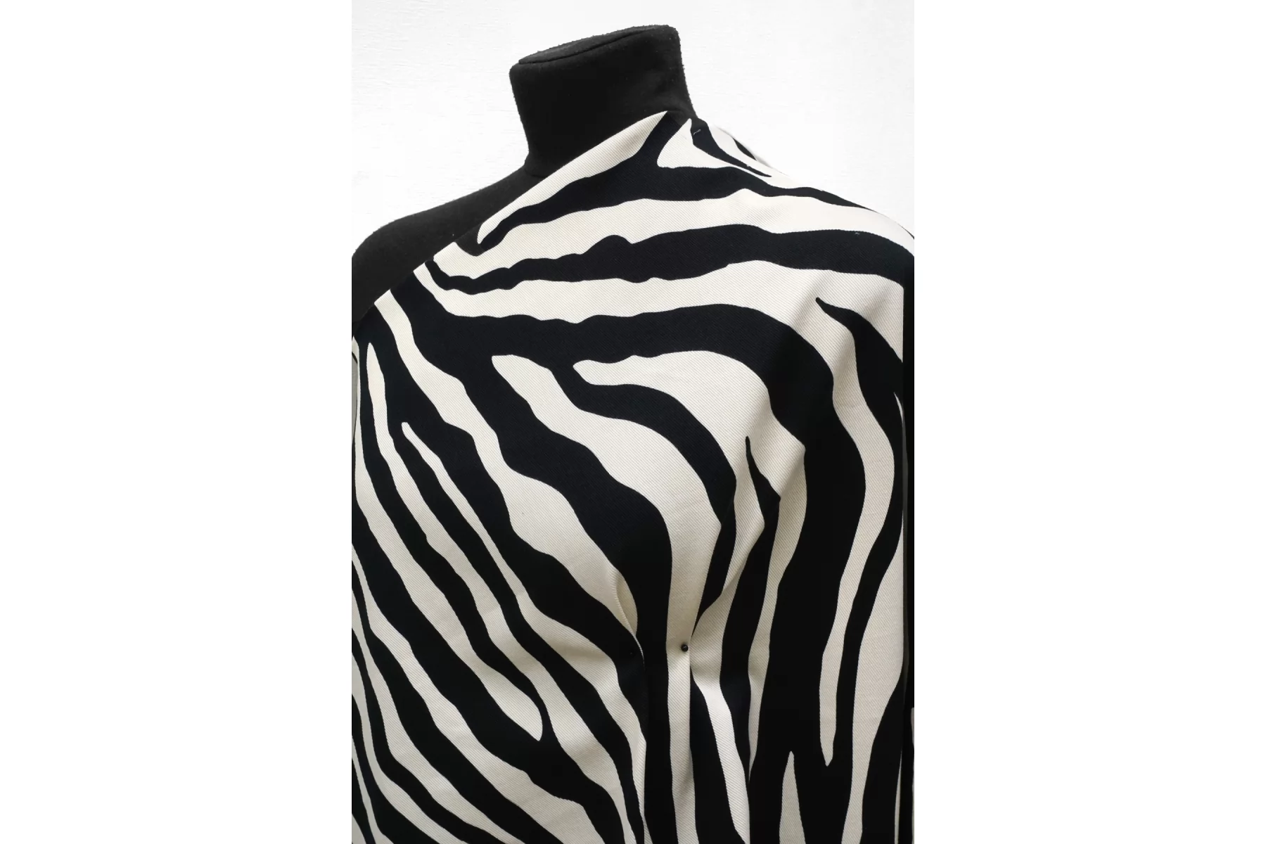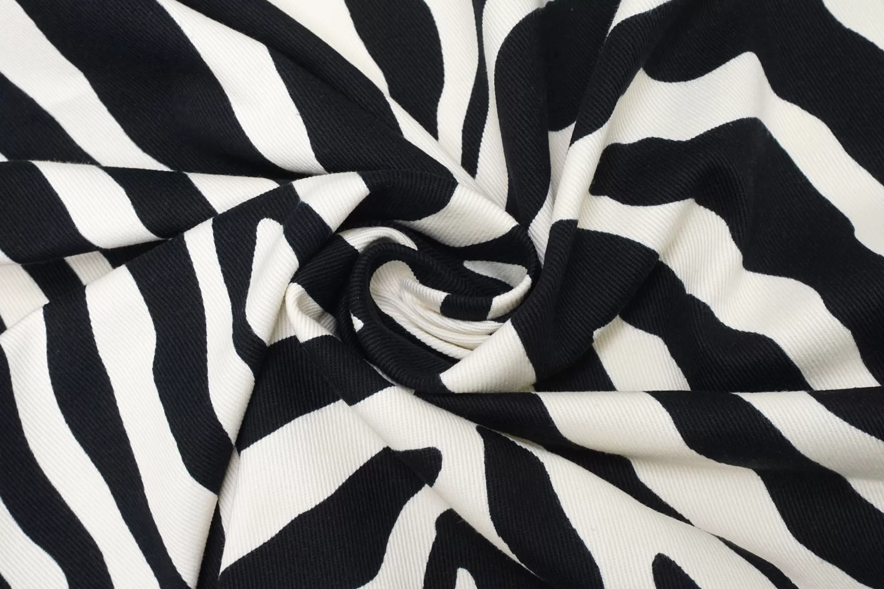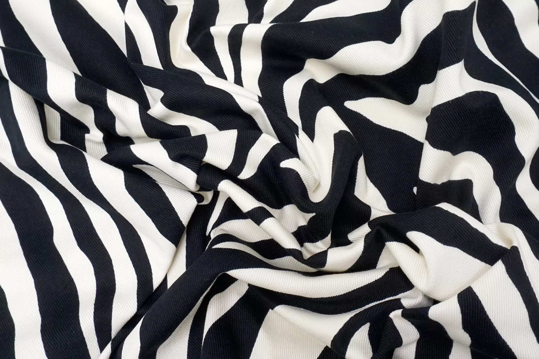 Хлопковая джинса диагонального плетения от бренда Max Mara, с принтом в виде полосок зебры, сочетание черного и белого цвета (с легким молочным подтоном). Пластичная, средней плотности, фактура плетения слегка ощущается. Тянется, не просвечивает. Прекрасно держит форму. Отлично подойдет на пошив жакета, бомбера, куртки, юбки или шорт.