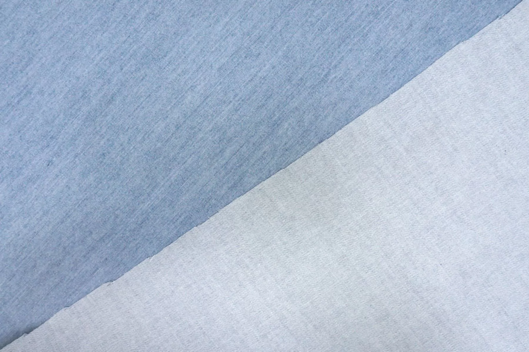 Хлопковая вареная джинса в голубом цвете (с белыми нитями в плетении). Мягкая и приятная, довольно плотная. Слегка тянется за счет небольшого содержания эластана. Не просвечивает. Неплохо держит форму. Немного сминается. Отлично подойдет на пошив куртки, шорт, платья, джинс или юбки.