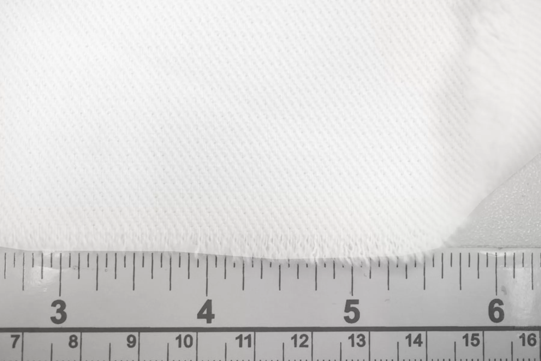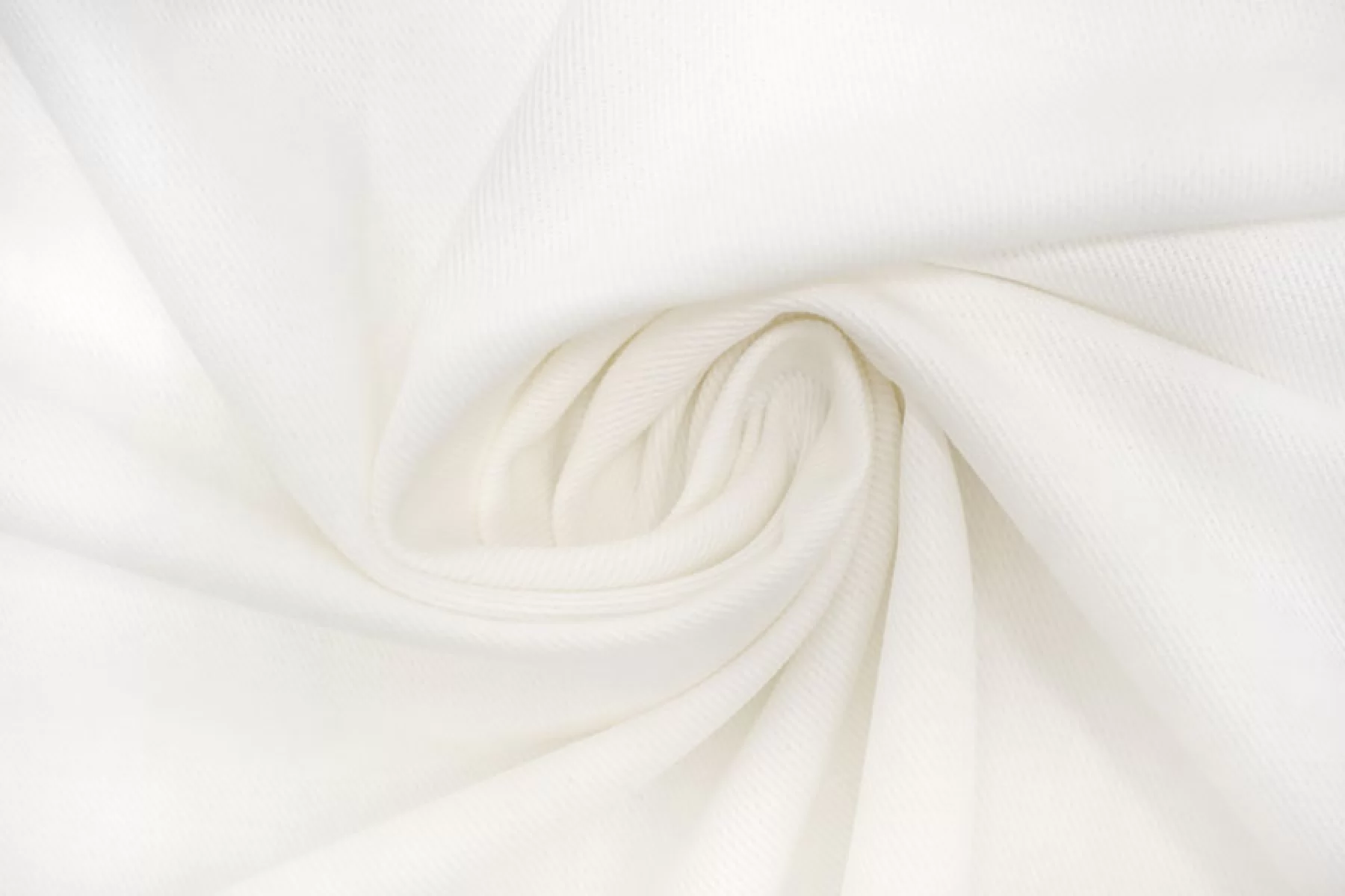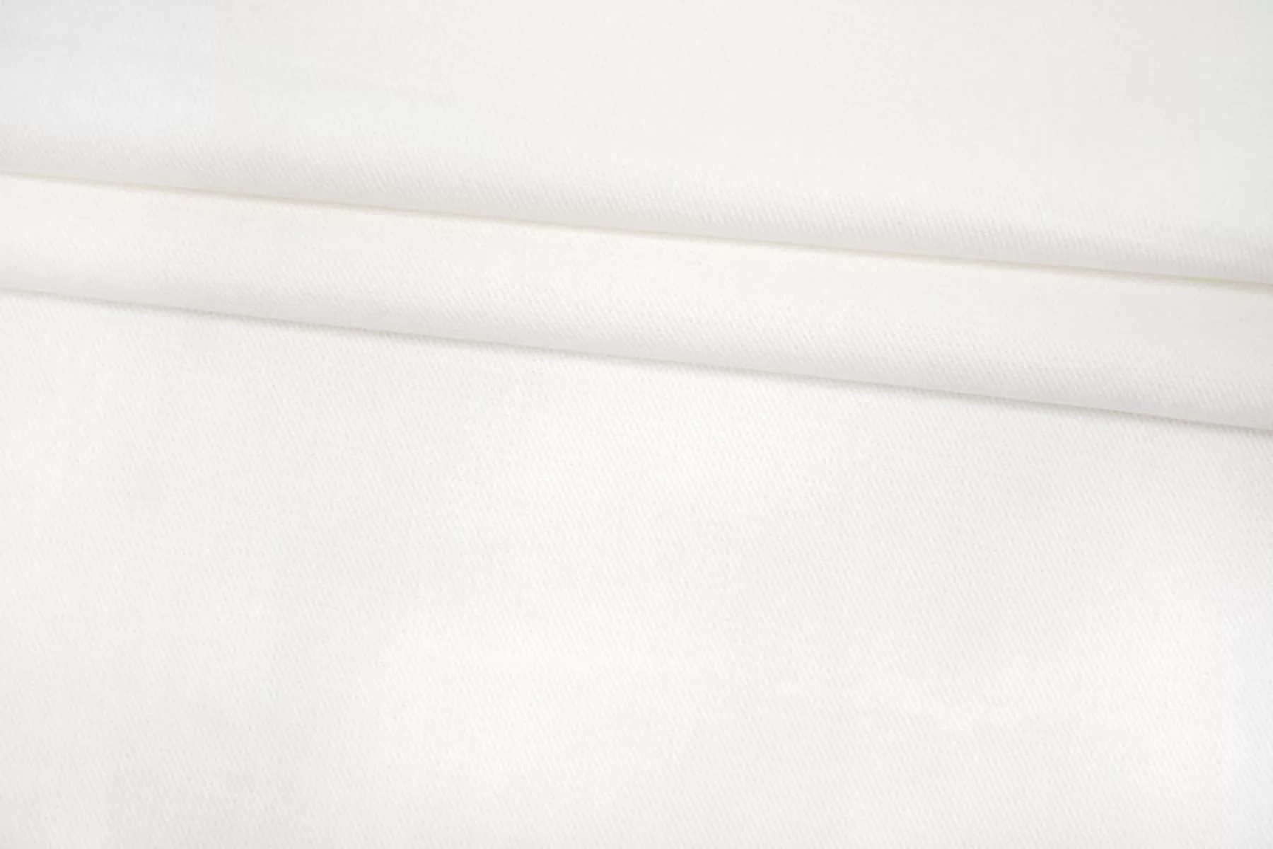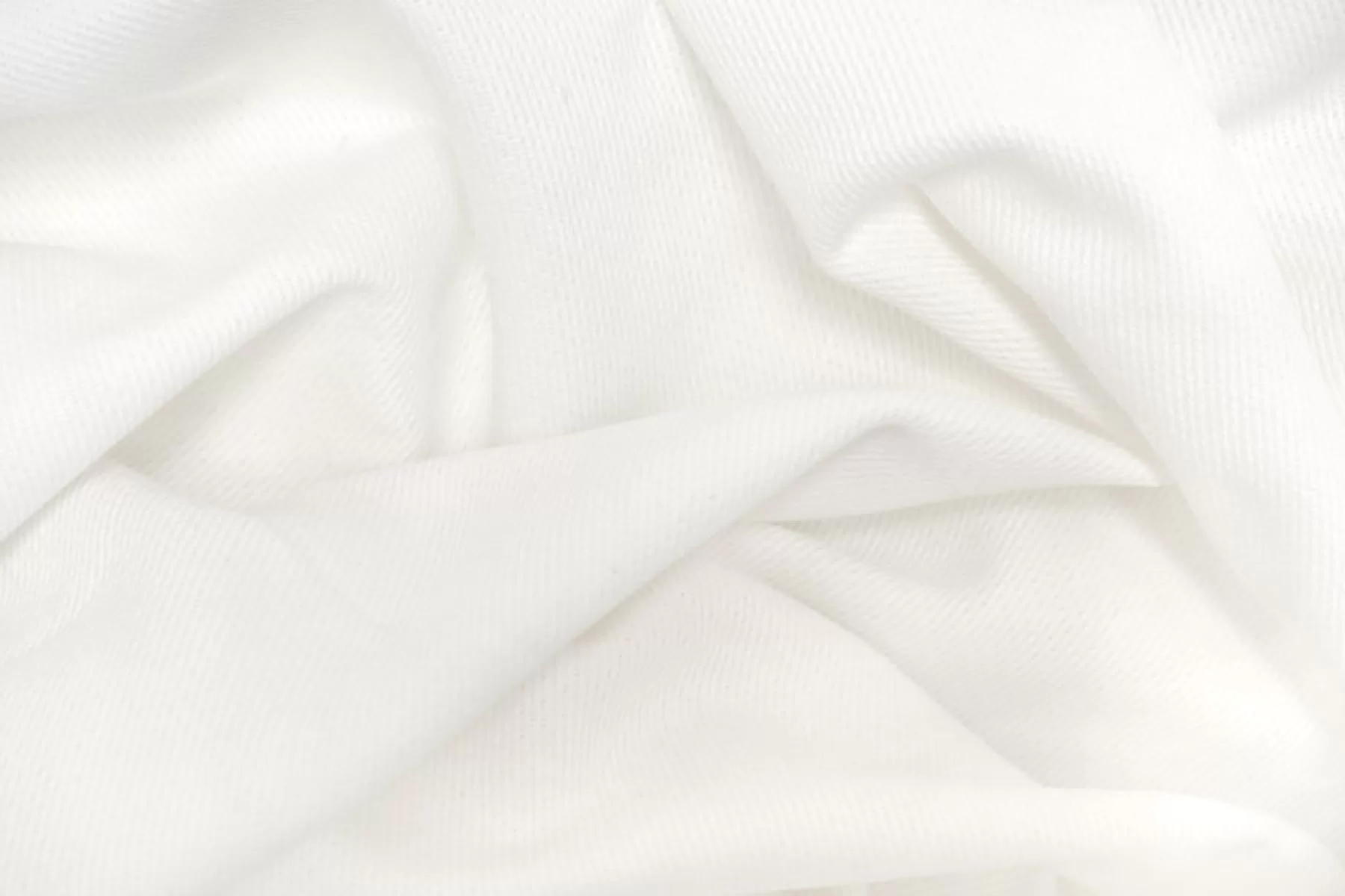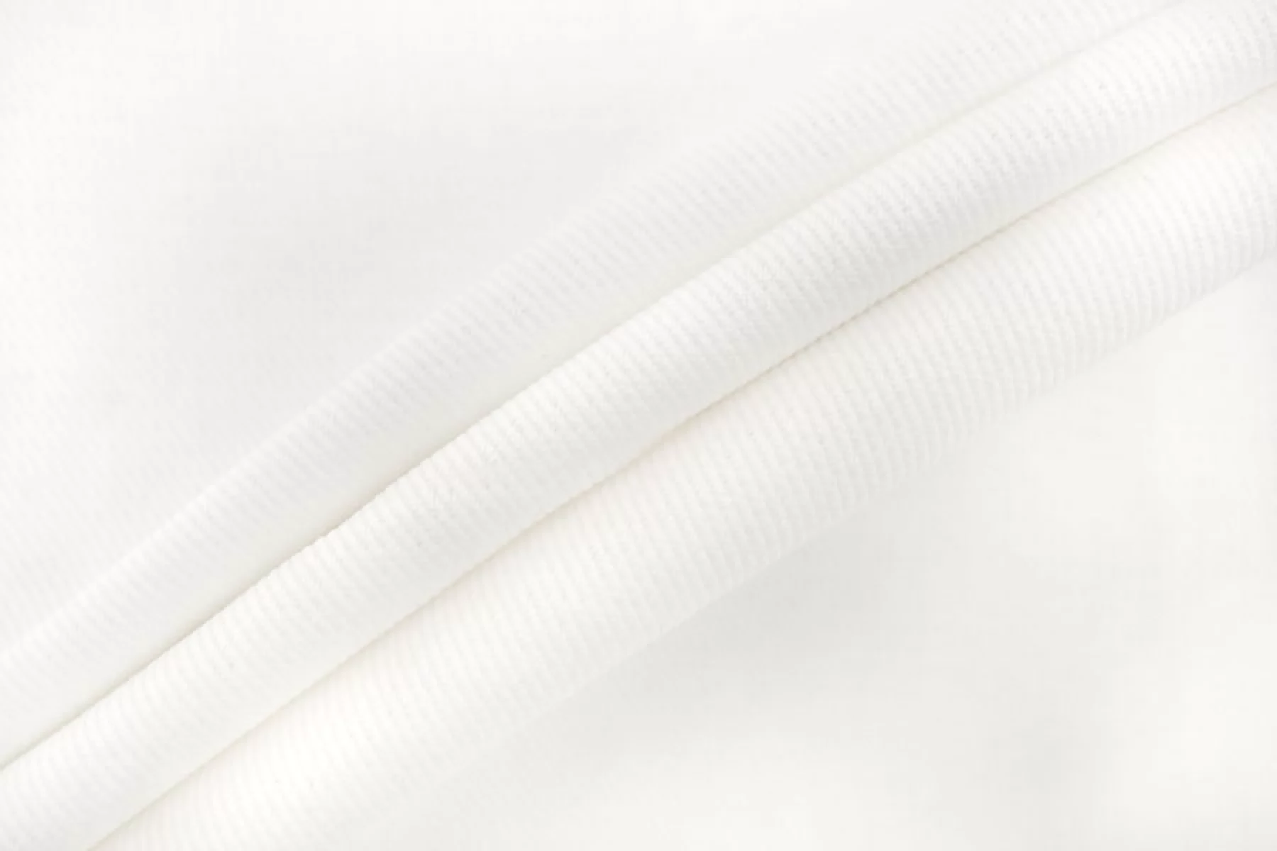 Прекрасная хлопковая джинса тёплого белого цвета. Тактильно приятная и мягкая с изнанки, на лице ощущается фактурный рубчик. Плотная, но пластичная. Форму держит. Не тянется. Мнется умеренно. Не просвечивает. Отлично подойдет на платья, куртки, юбки и брюки. Учитывайте, что не тянется.
