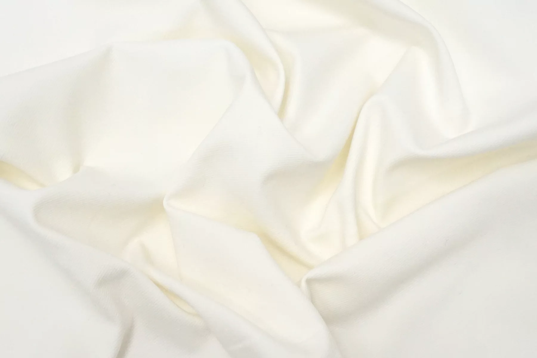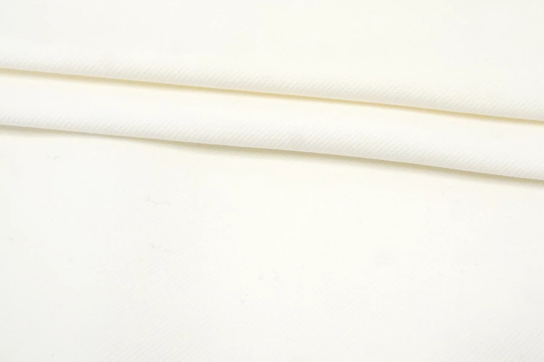 Хлопковая джинса молочного цвета. Плетение диагональное, но не классическое. Тактильно приятная, довольно плотная. Тянется. Минимально просвечивает силуэт тёмного. Неплохо держит форму. Немного сминается. Отлично подойдет на пошив куртки, шорт, платья, джинс или юбки.